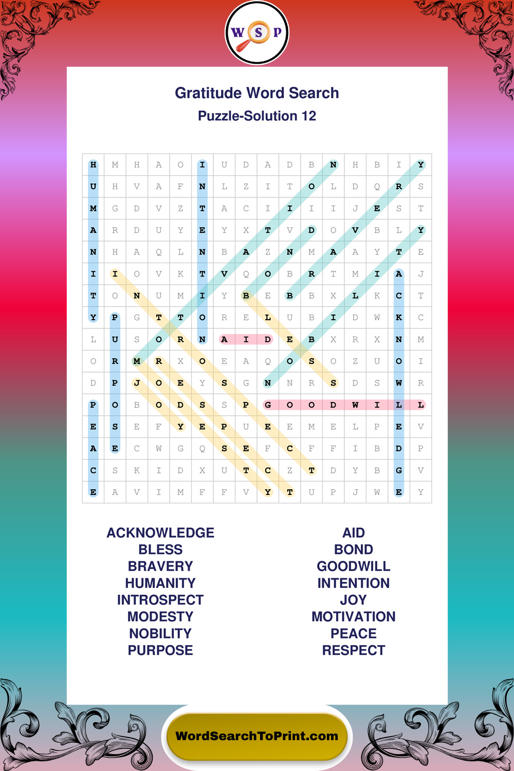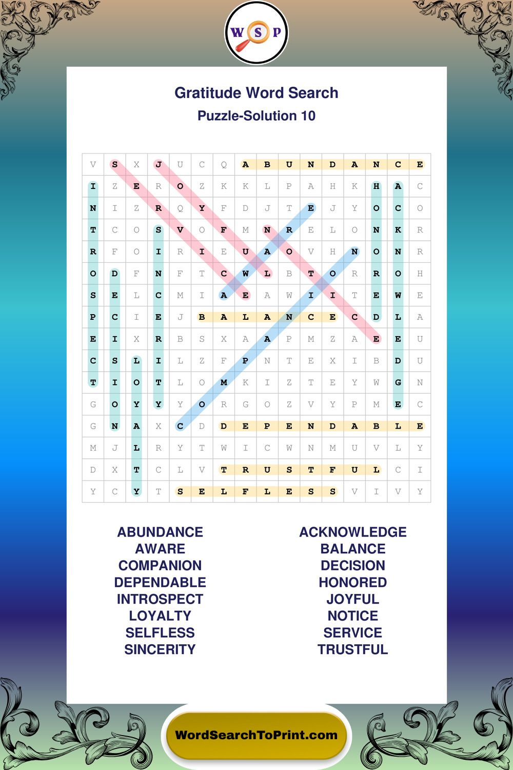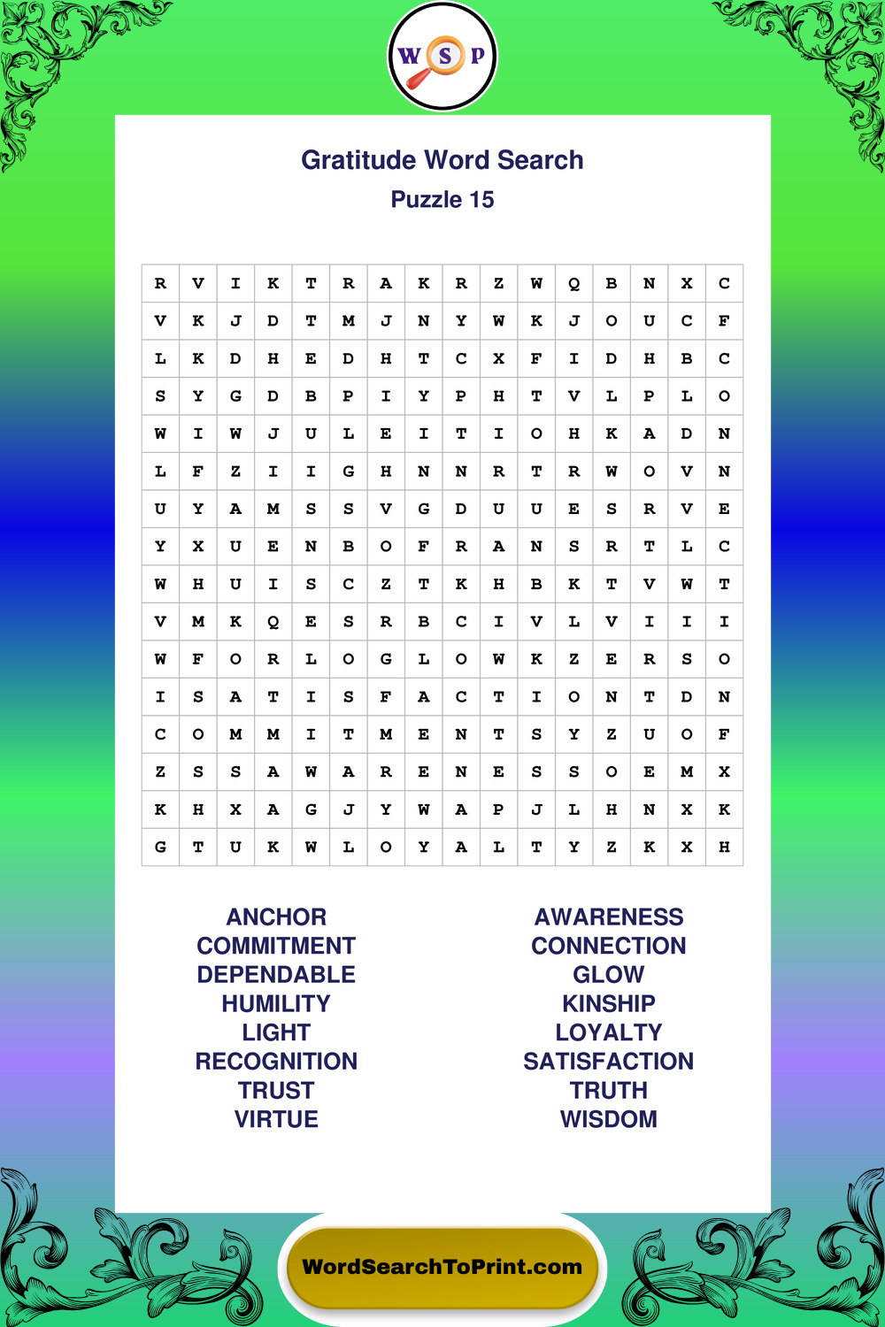 Printable Gratitude Wordsearch Puzzles