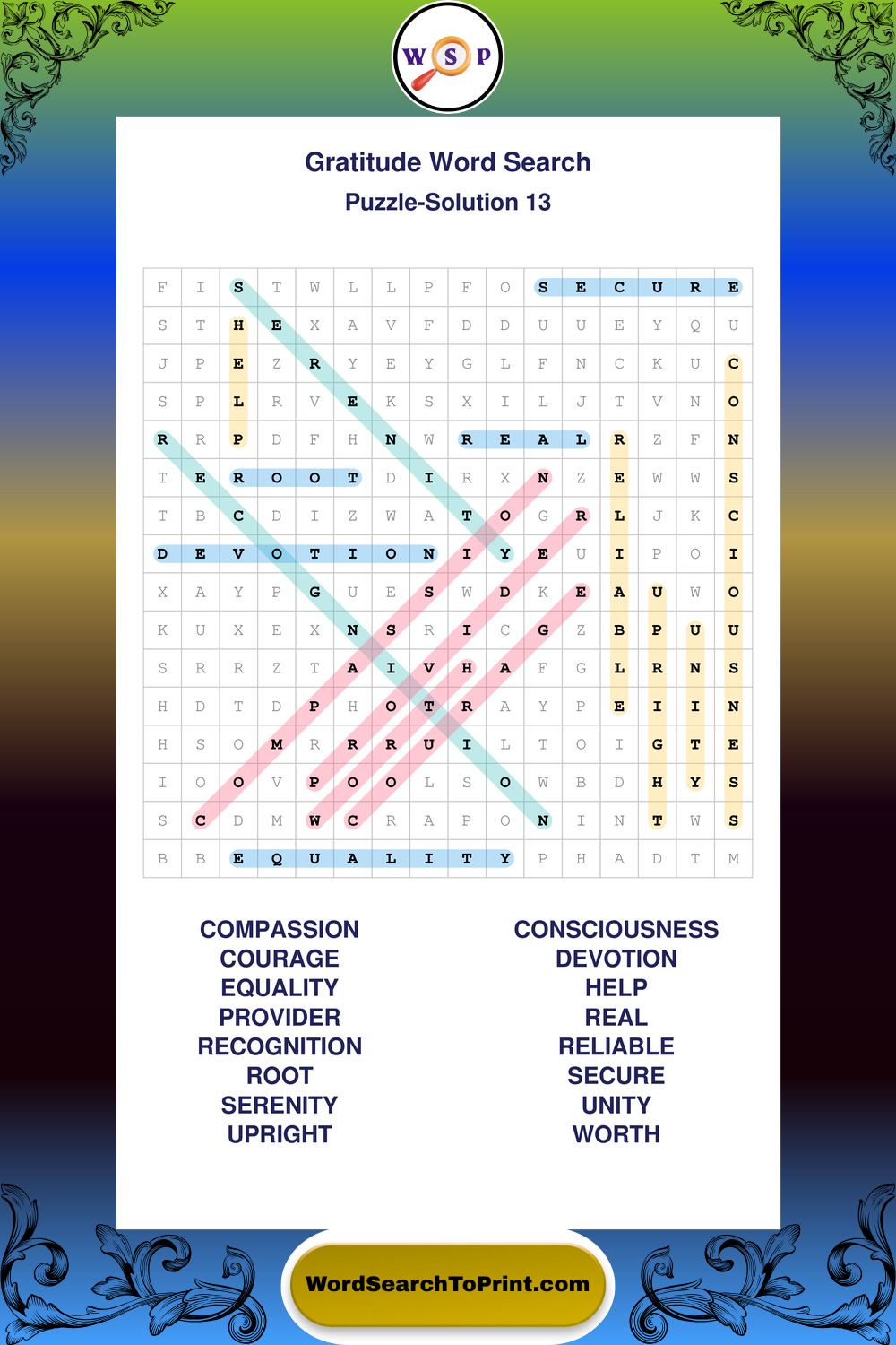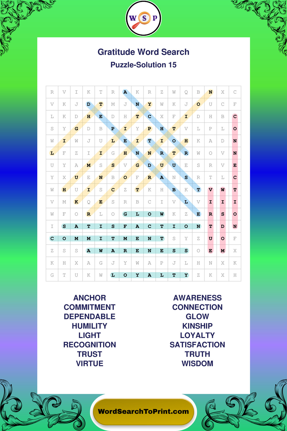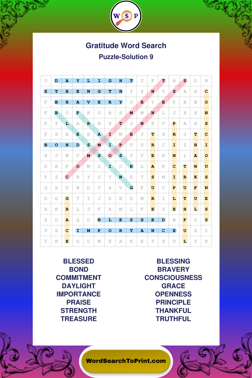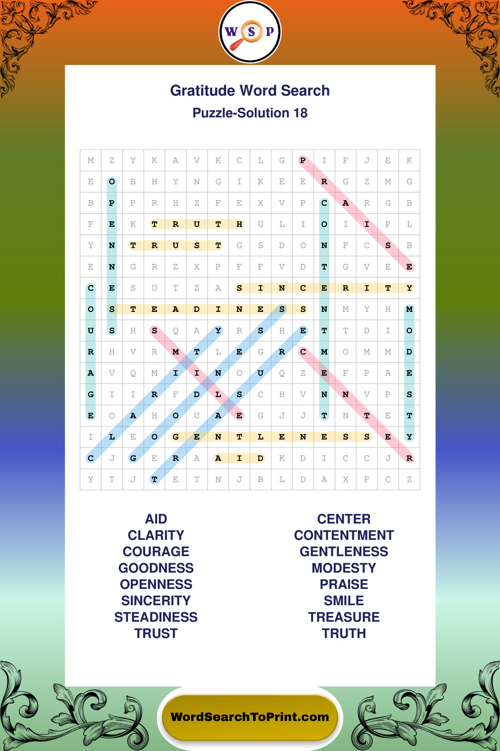 Browse our free large print Gratitude wordsearches below. All puzzles are printable and include solutions.