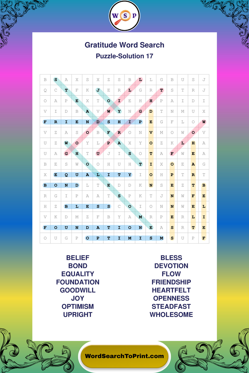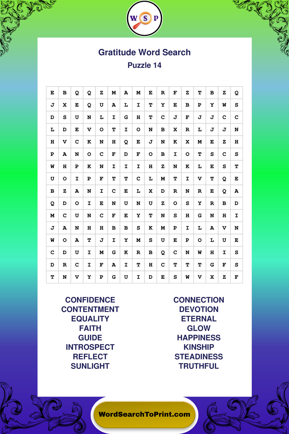 These puzzles highlight positive thinking, emotional awareness, mindfulness, and wellbeing concepts. They offer a structured and engaging way to explore this topic while strengthening concentration and vocabulary recognition. You may also enjoy our Peace word search puzzles.