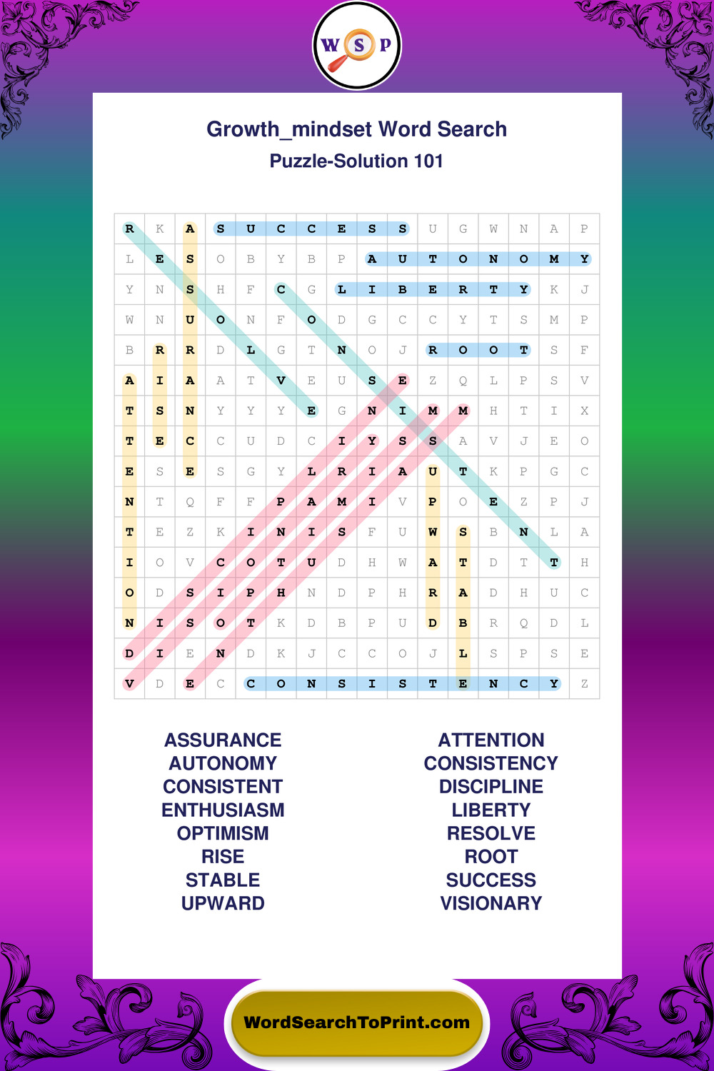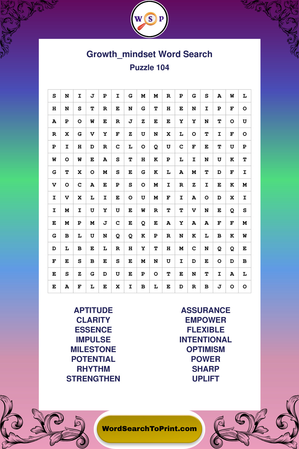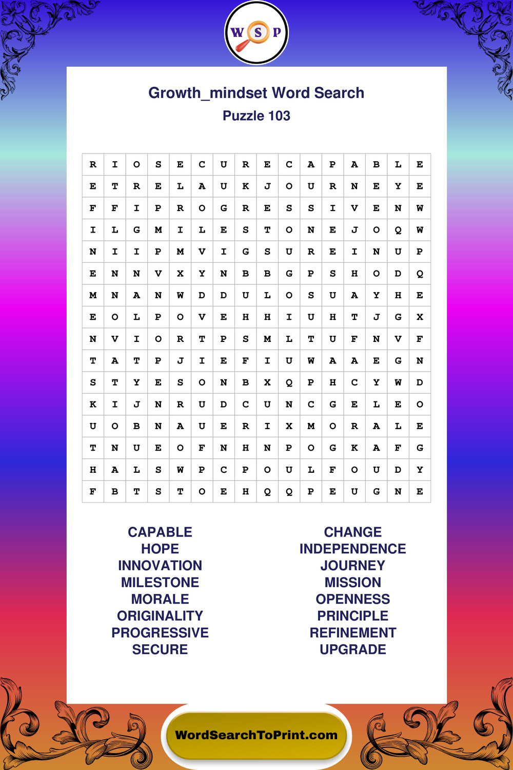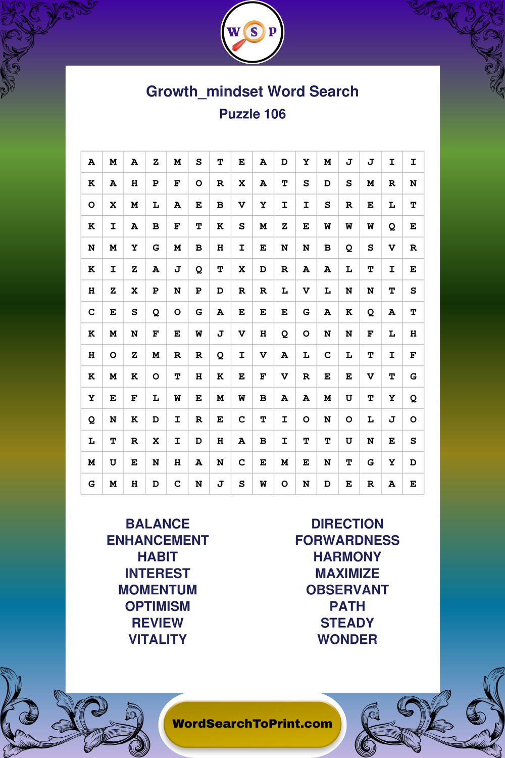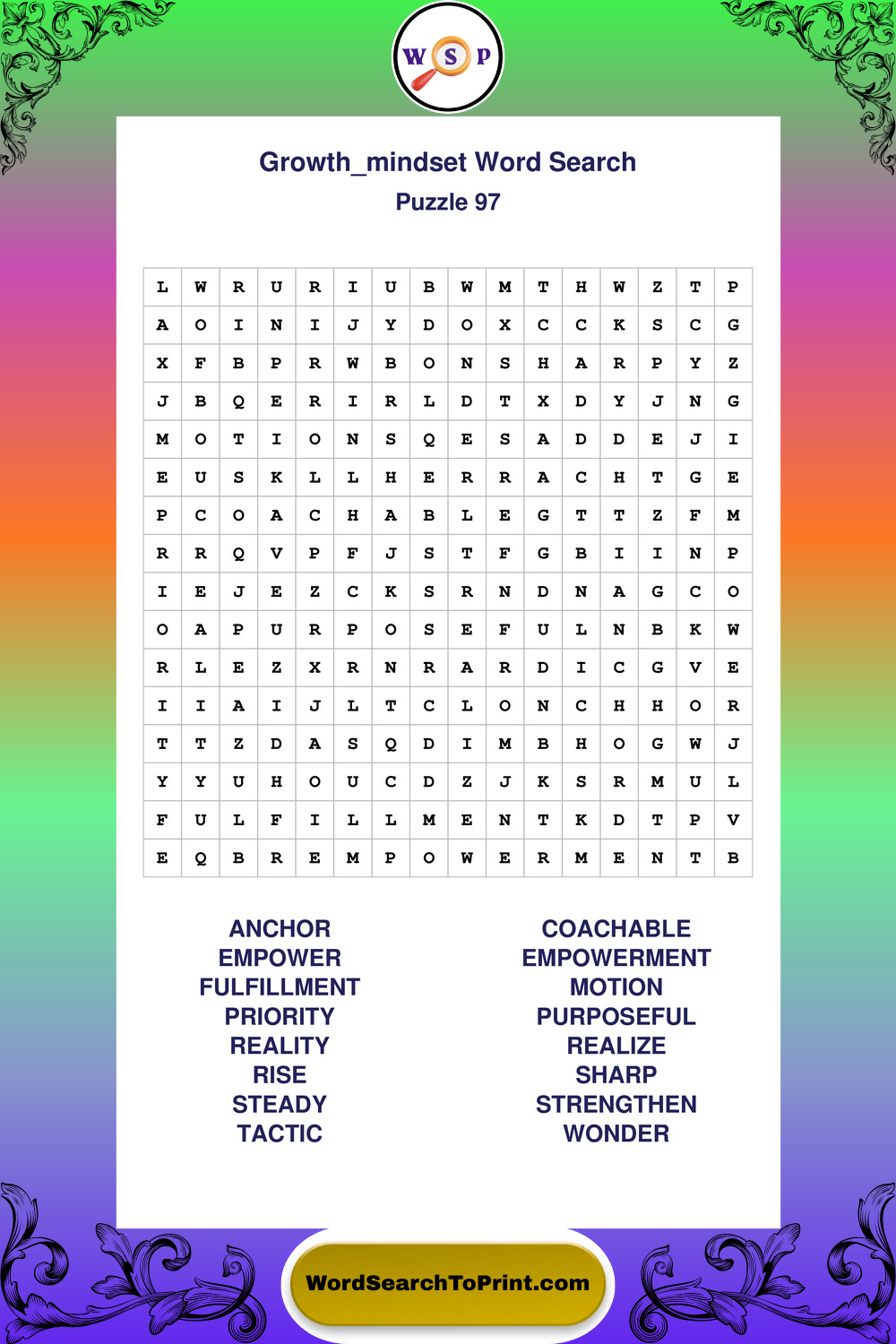 Discover large print Growth Mindset wordsearches designed to support relaxed thinking and comfortable reading.