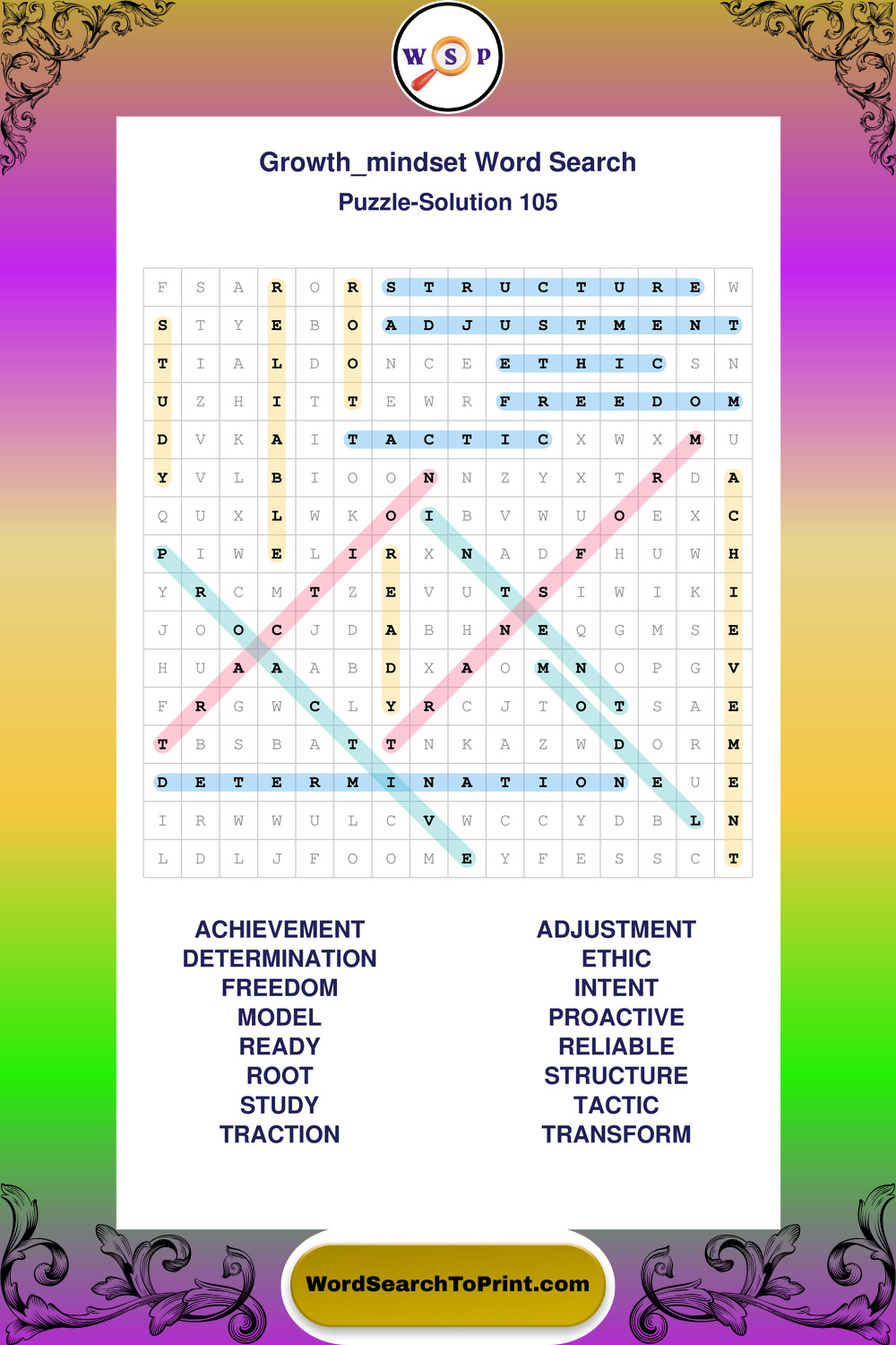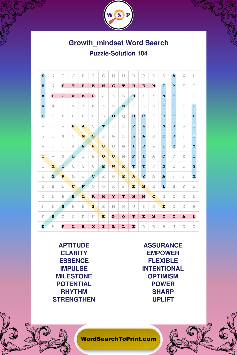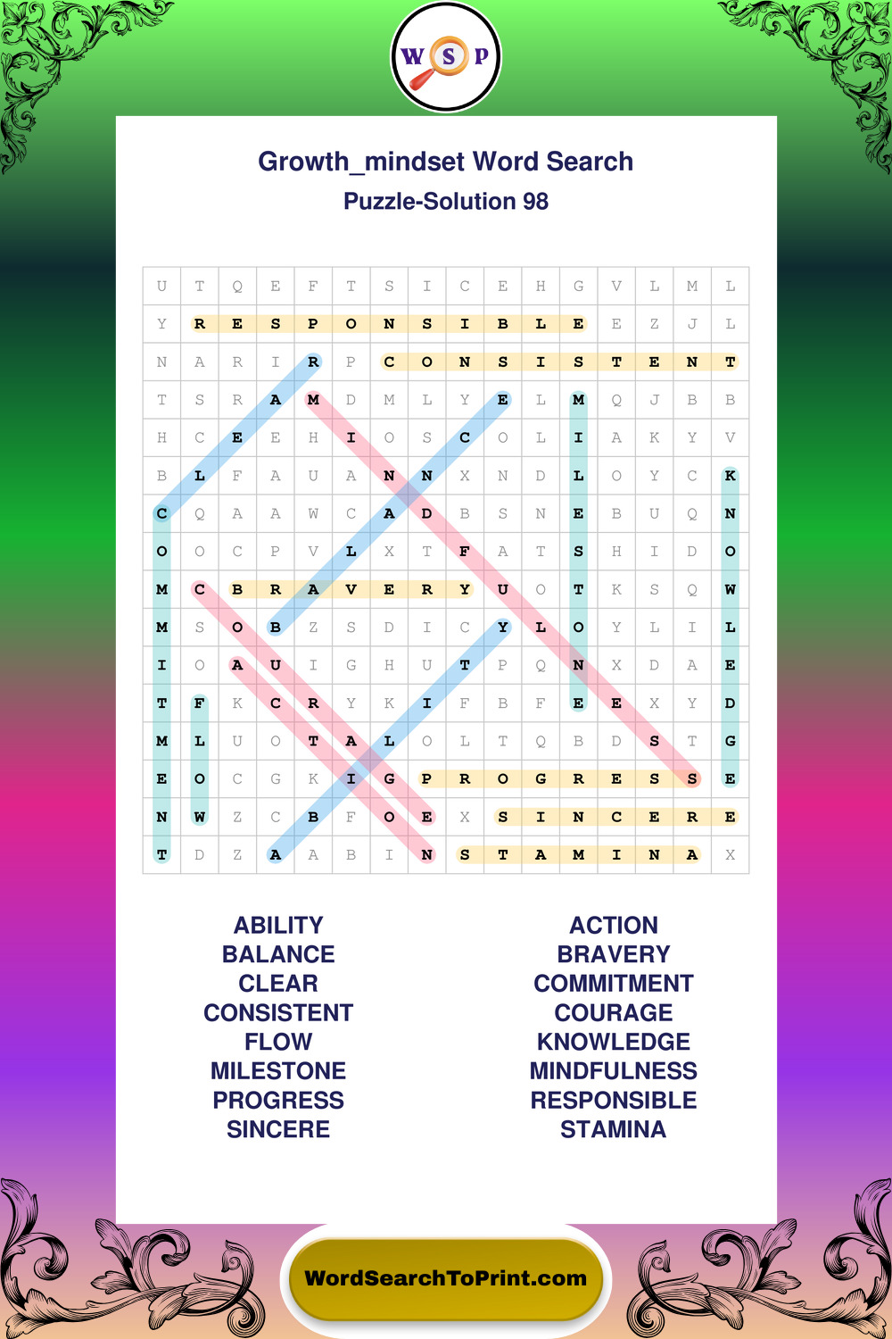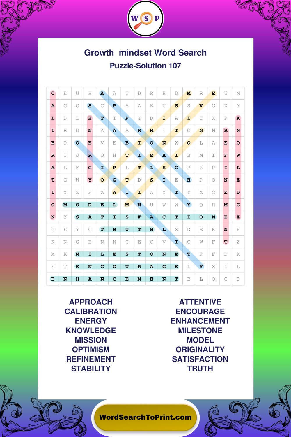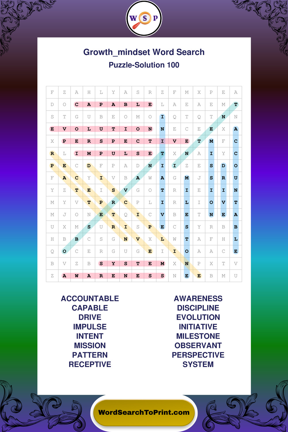 Discover large print Growth Mindset wordsearches designed to support relaxed thinking and comfortable reading.