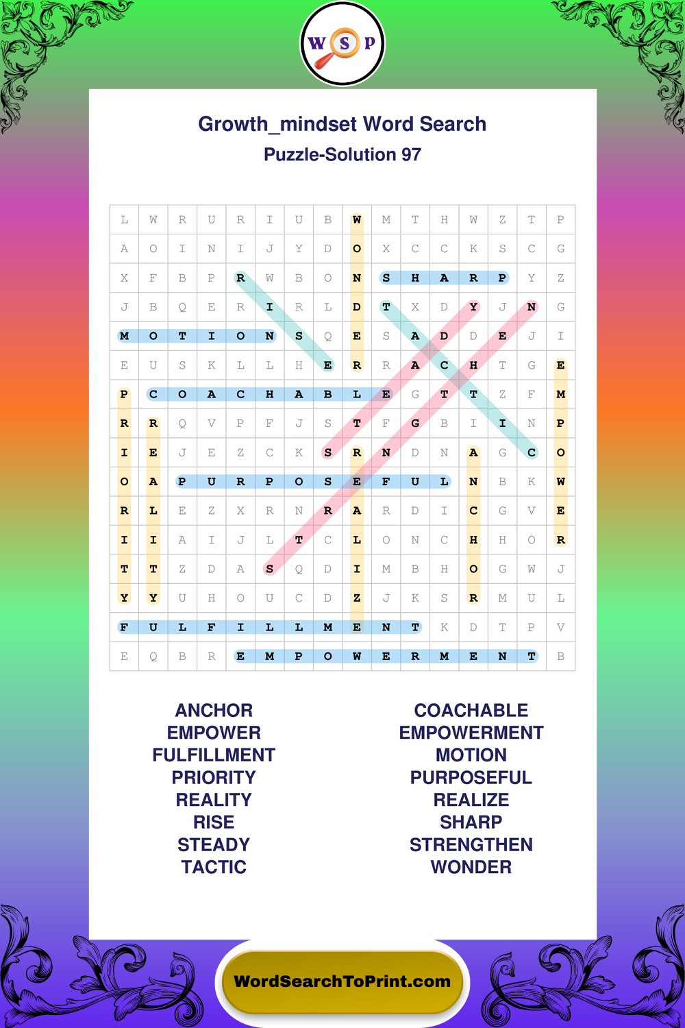 These puzzles focus on motivation, goal setting, life lessons, inspiration, and personal development concepts. These puzzles make it enjoyable to explore this theme while improving focus and reinforcing key terms. You may also enjoy our Wisdom word search puzzles and Life Lessons word search puzzles.