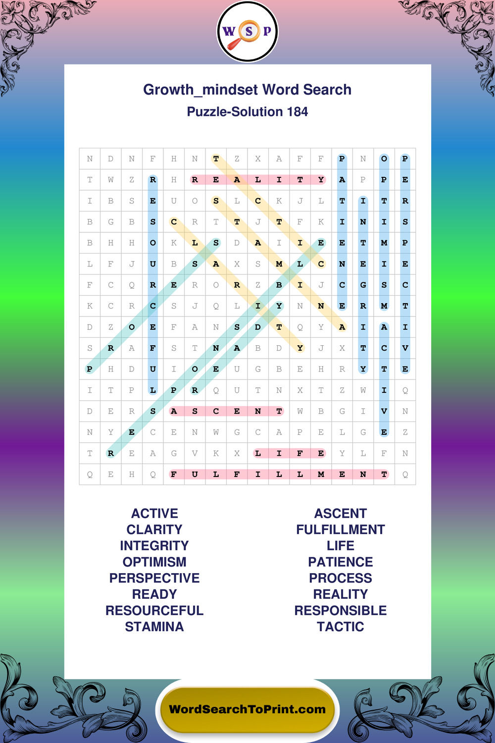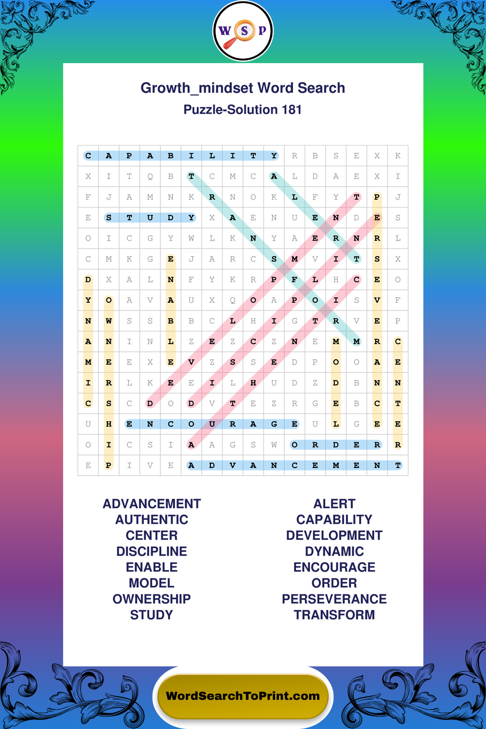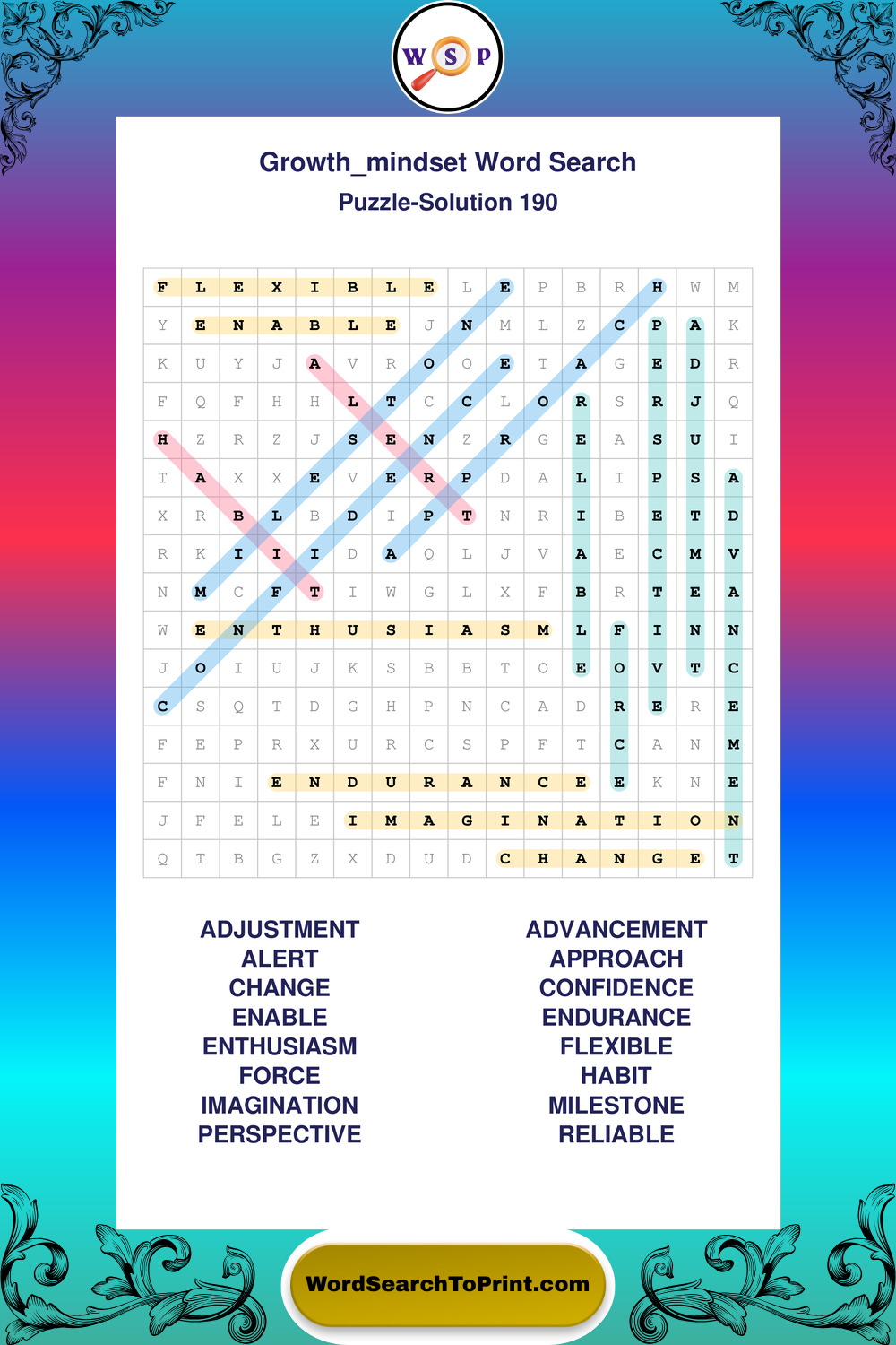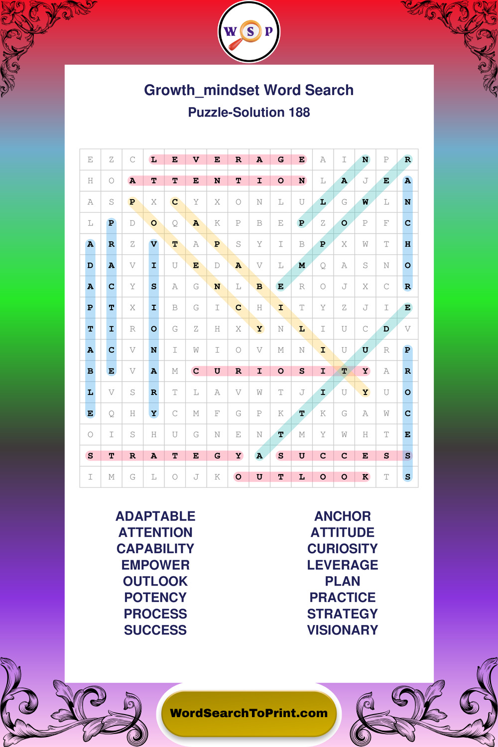 Discover large print Growth Mindset wordsearches designed to support relaxed thinking and comfortable reading.