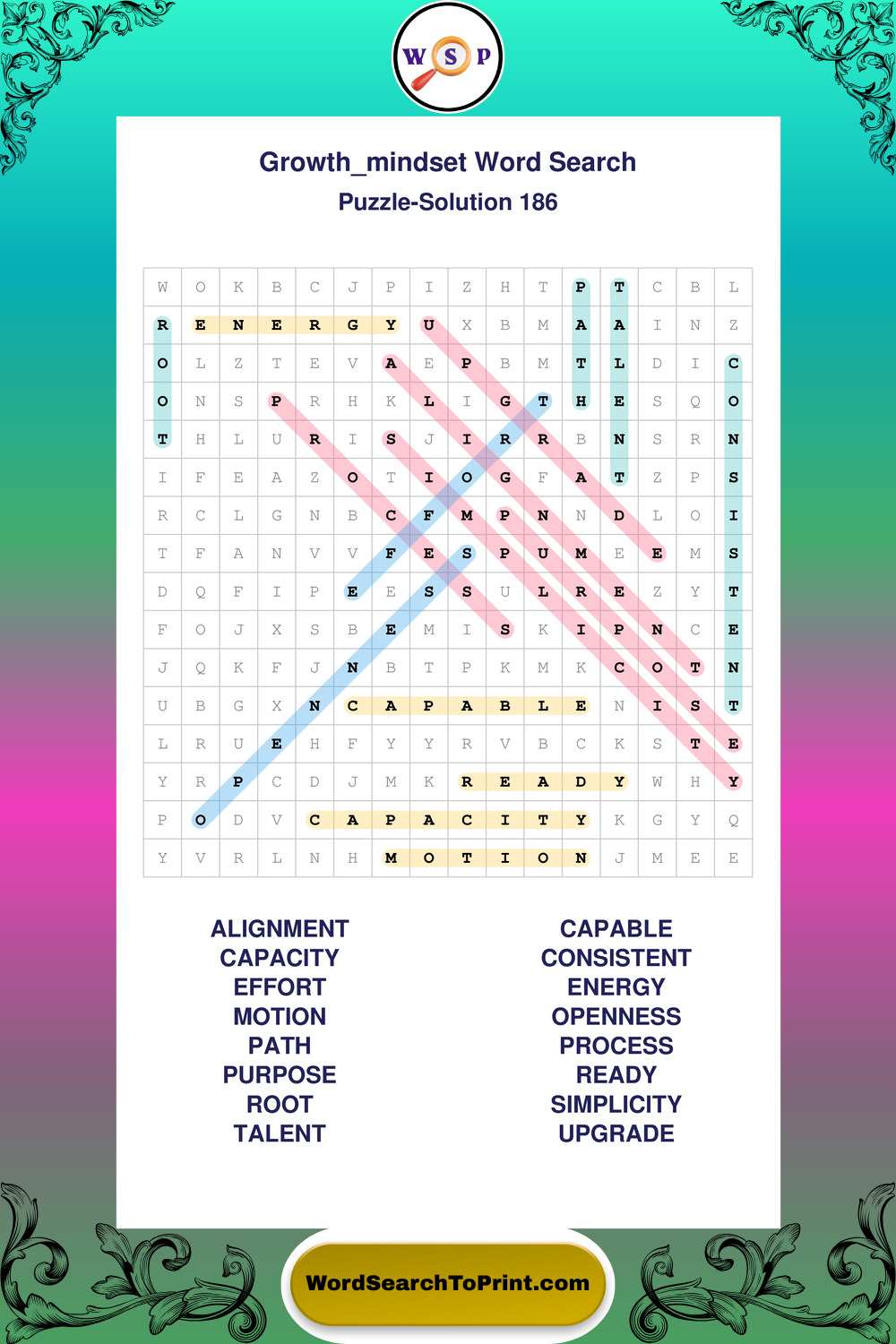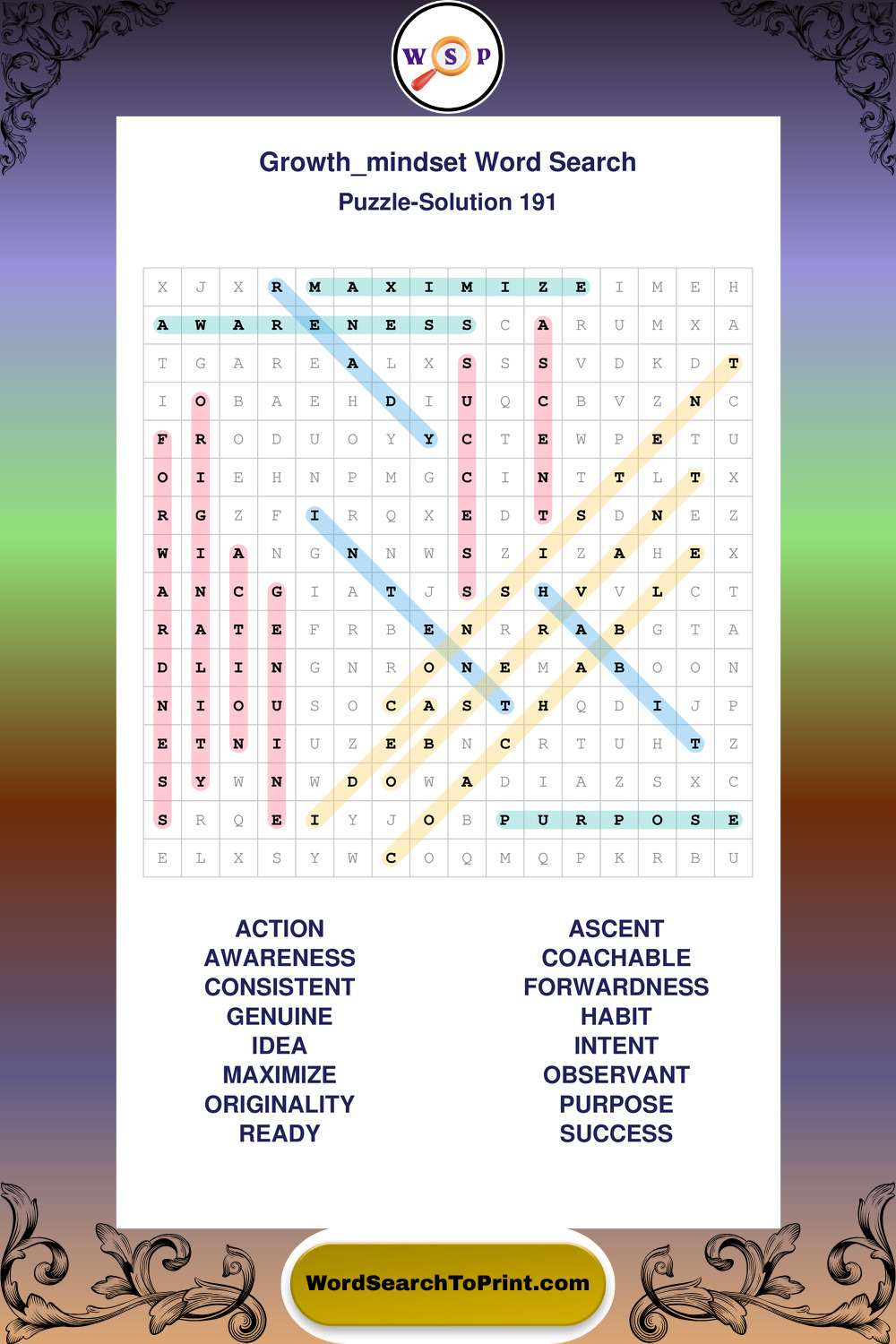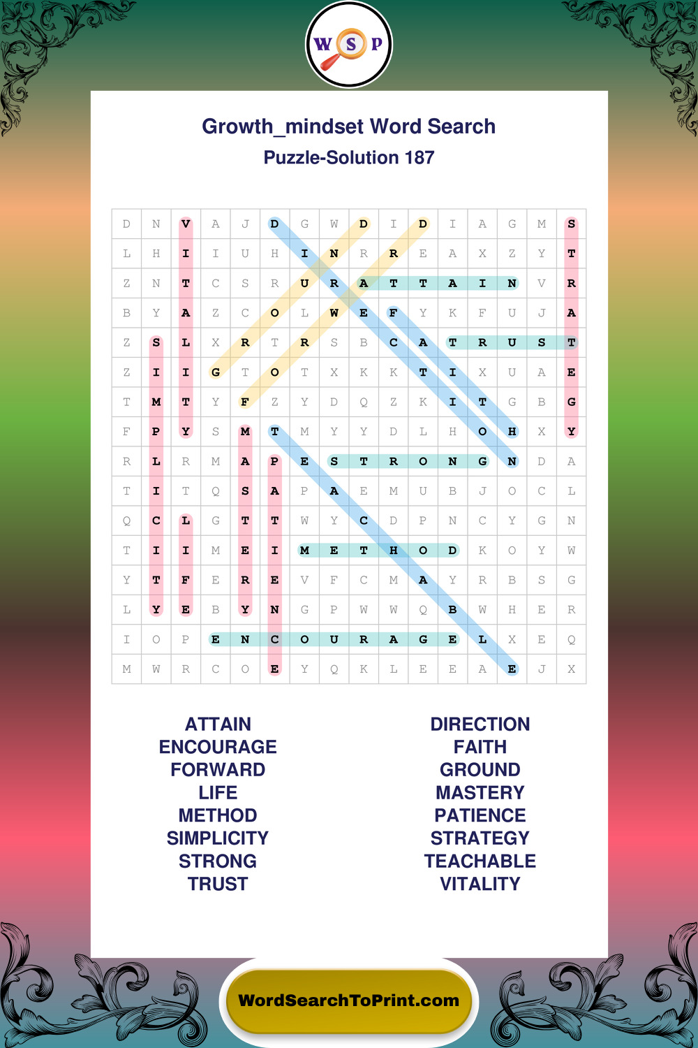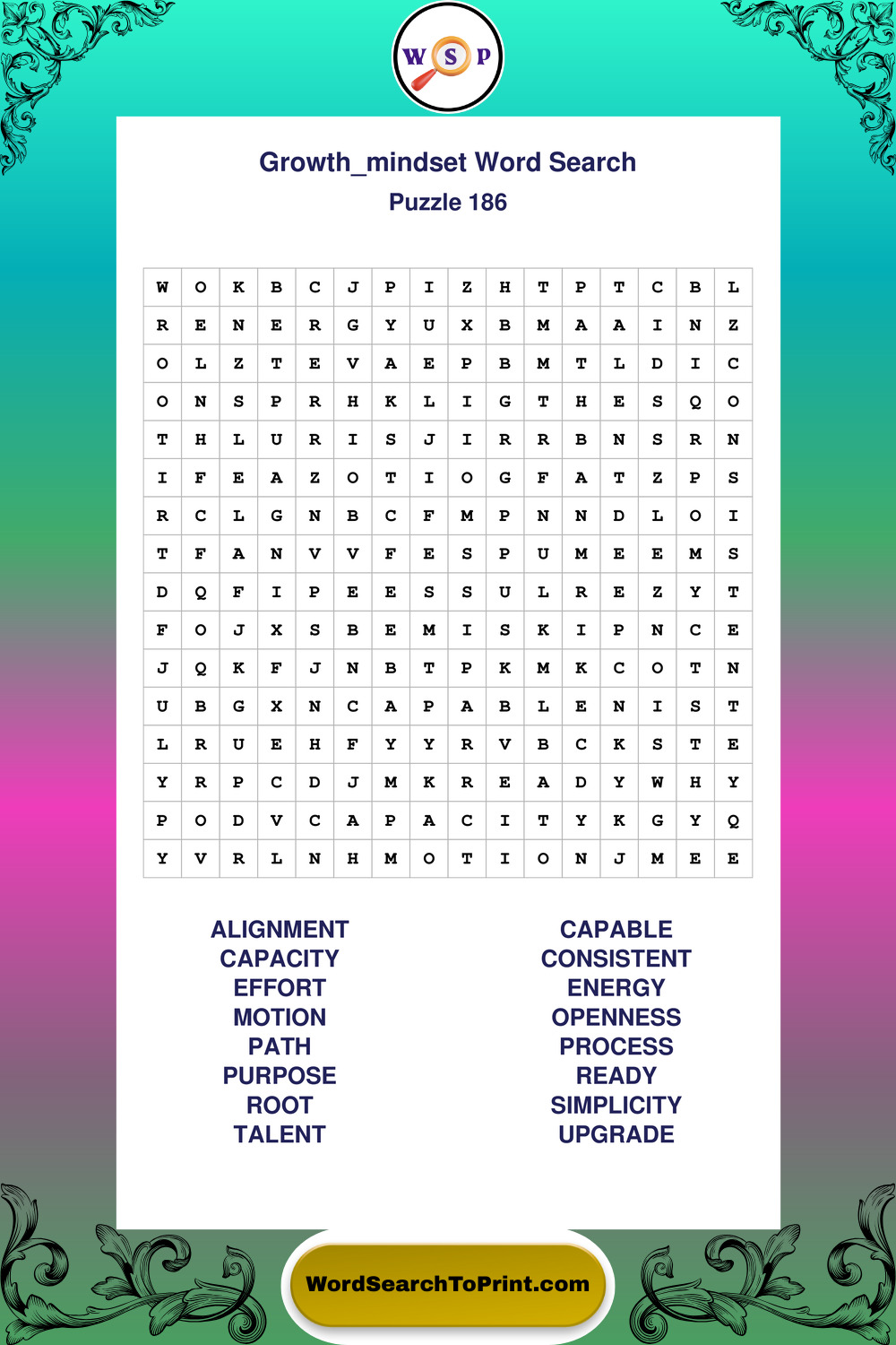 These puzzles focus on motivation, goal setting, life lessons, inspiration, and personal development concepts. These puzzles make it enjoyable to explore this theme while improving focus and reinforcing key terms. You may also enjoy our Wisdom word search puzzles and Life Lessons word search puzzles.