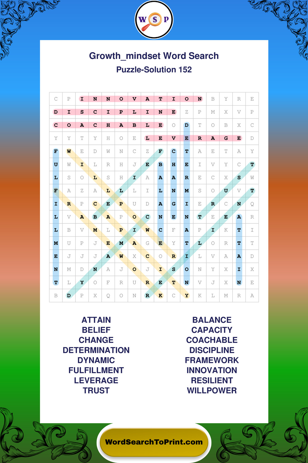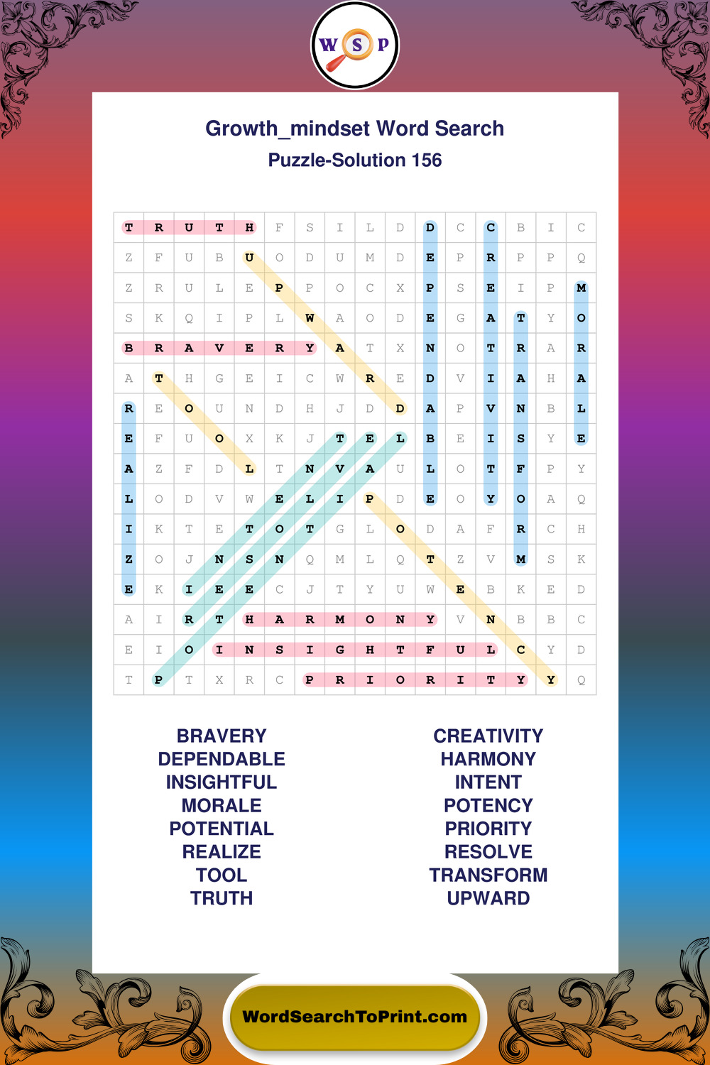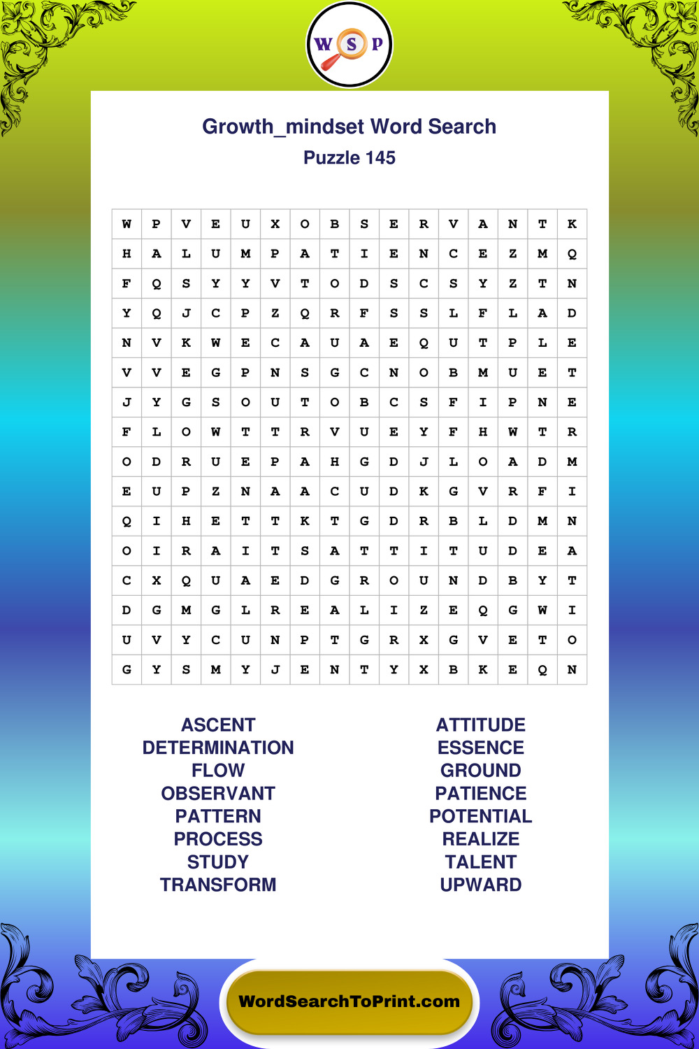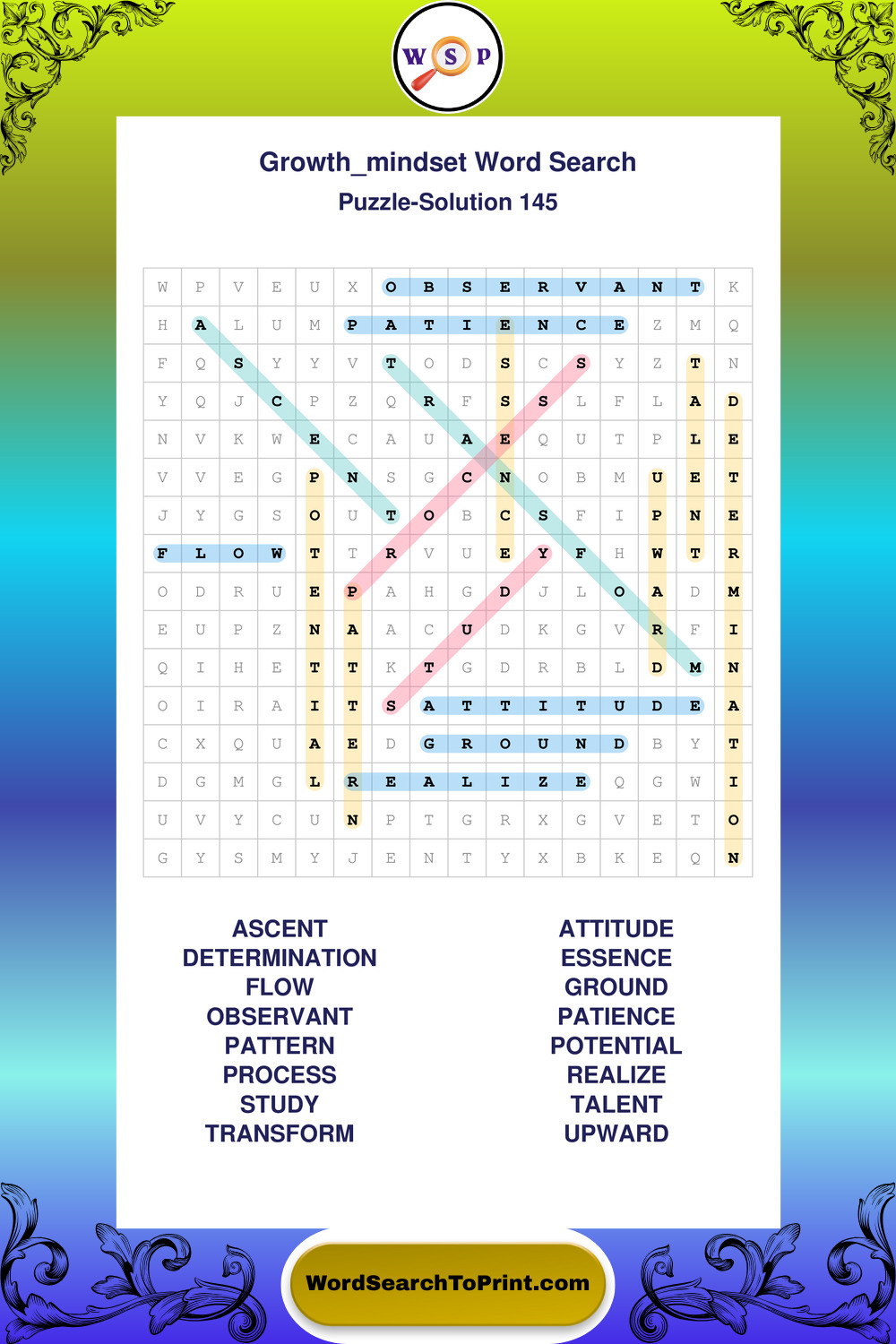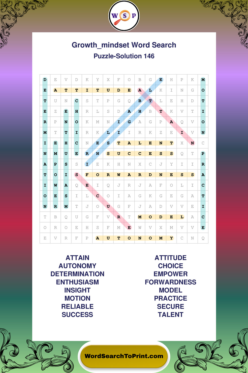 These puzzles focus on motivation, goal setting, life lessons, inspiration, and personal development concepts. These puzzles make it enjoyable to explore this theme while improving focus and reinforcing key terms. You may also enjoy our Wisdom word search puzzles and Life Lessons word search puzzles.