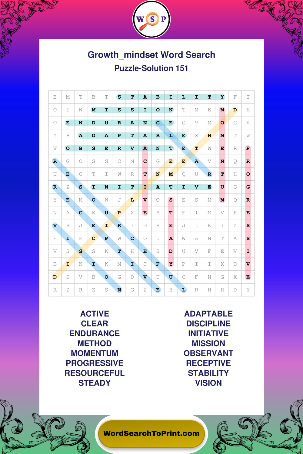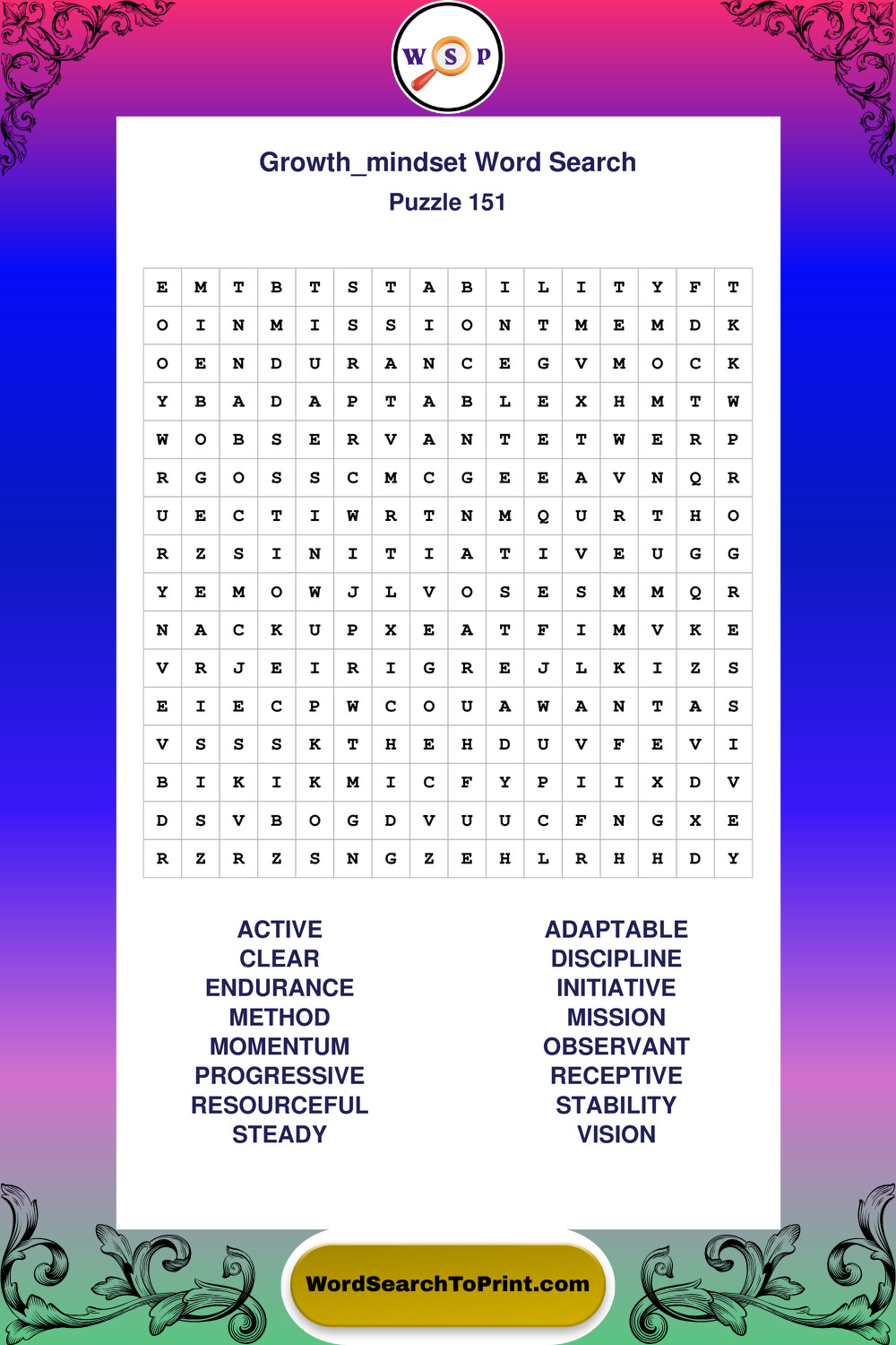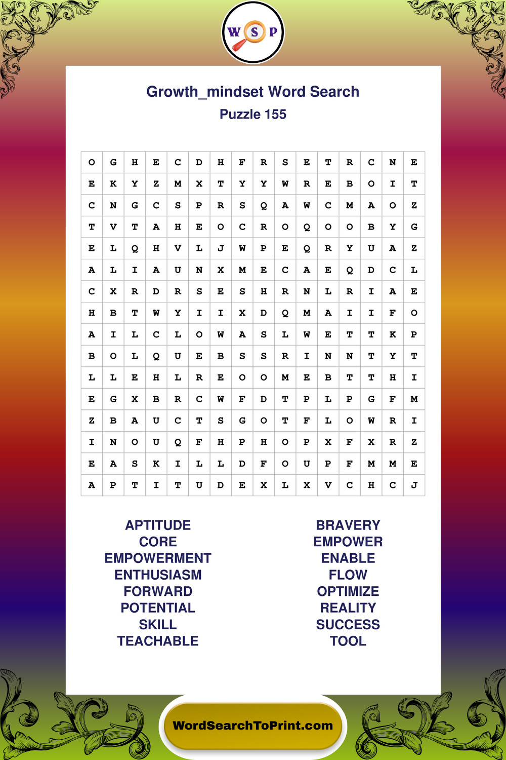Printable Growth Mindset Wordsearch Puzzles