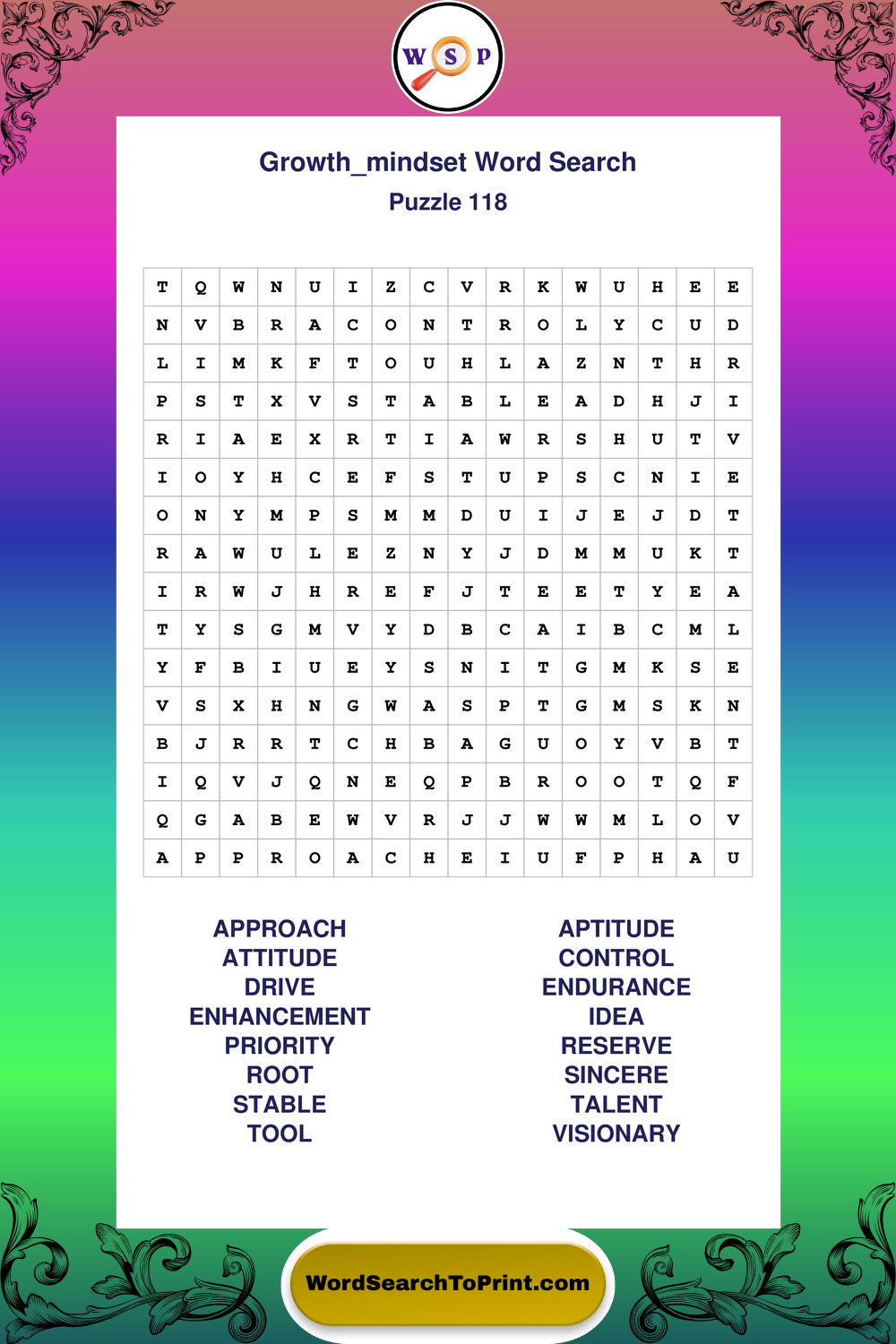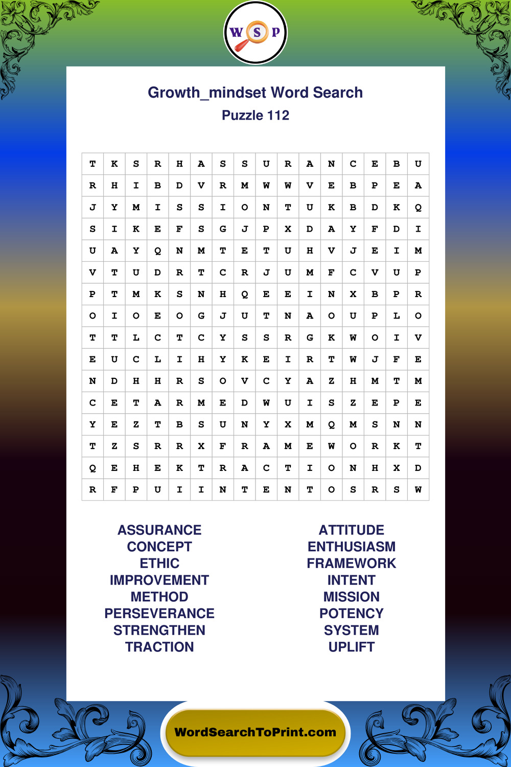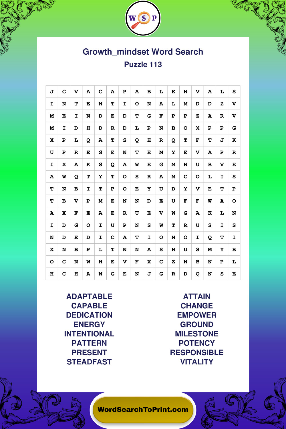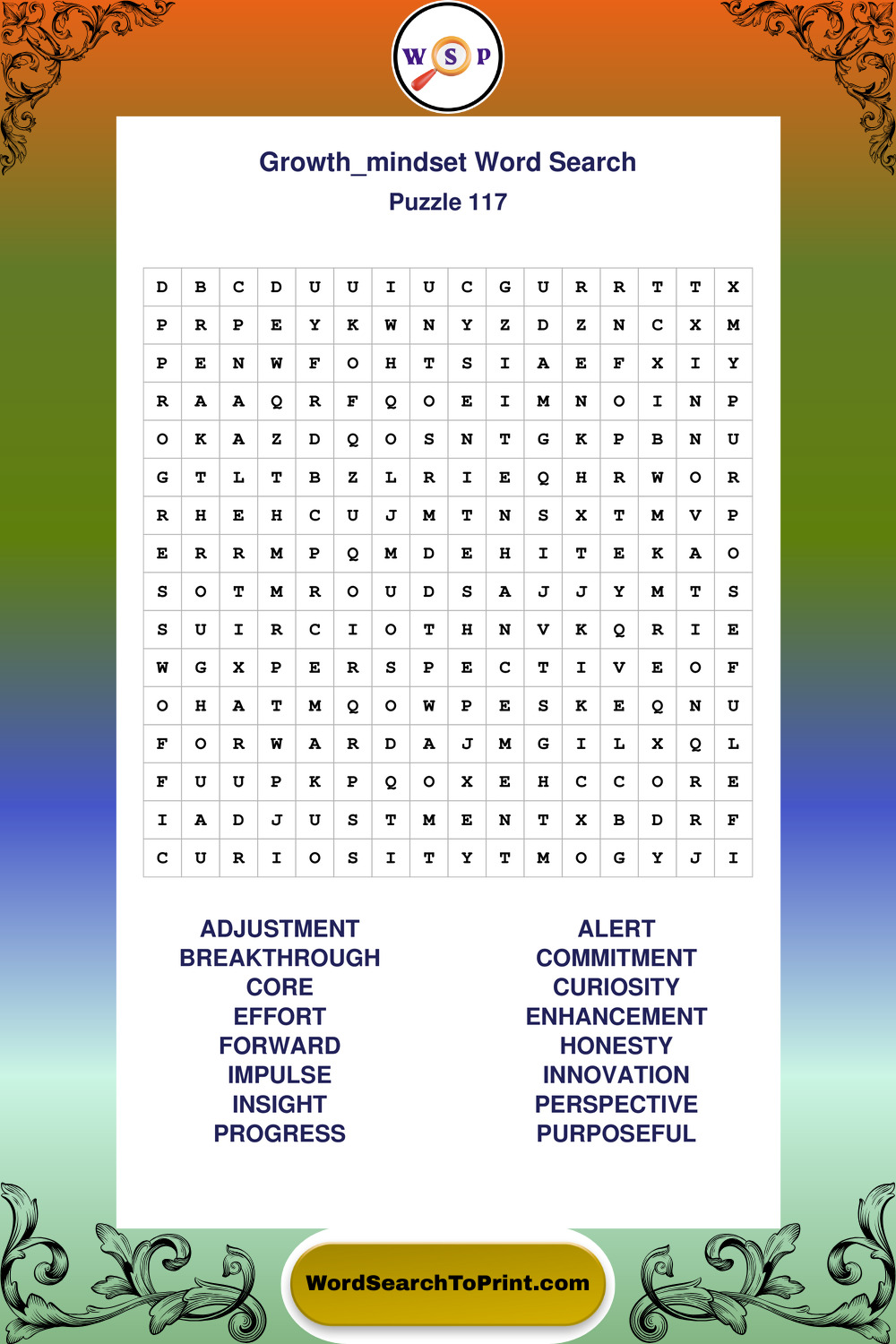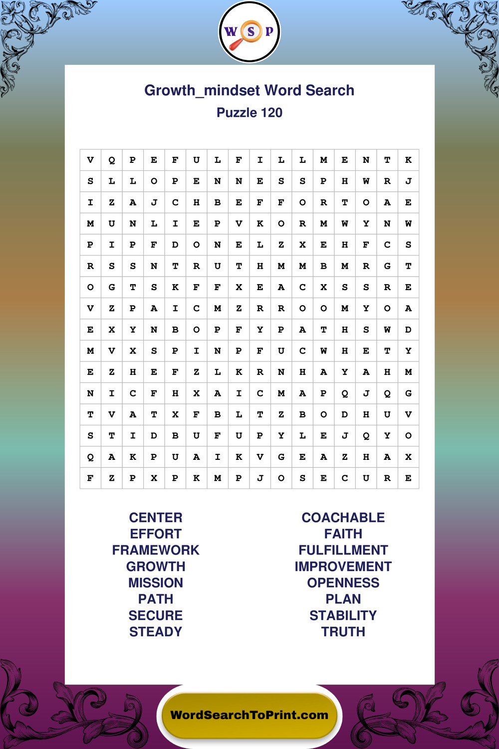 Discover large print Growth Mindset wordsearches designed to support relaxed thinking and comfortable reading.