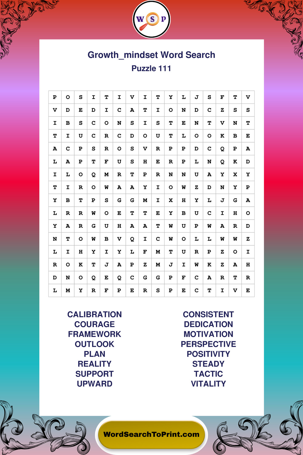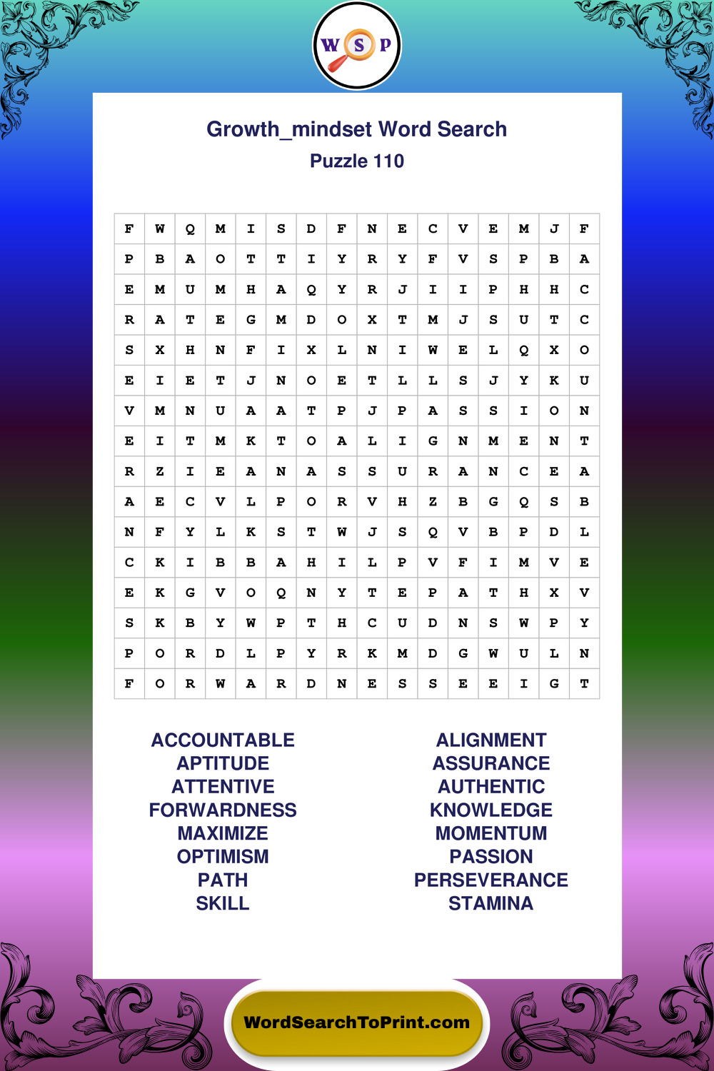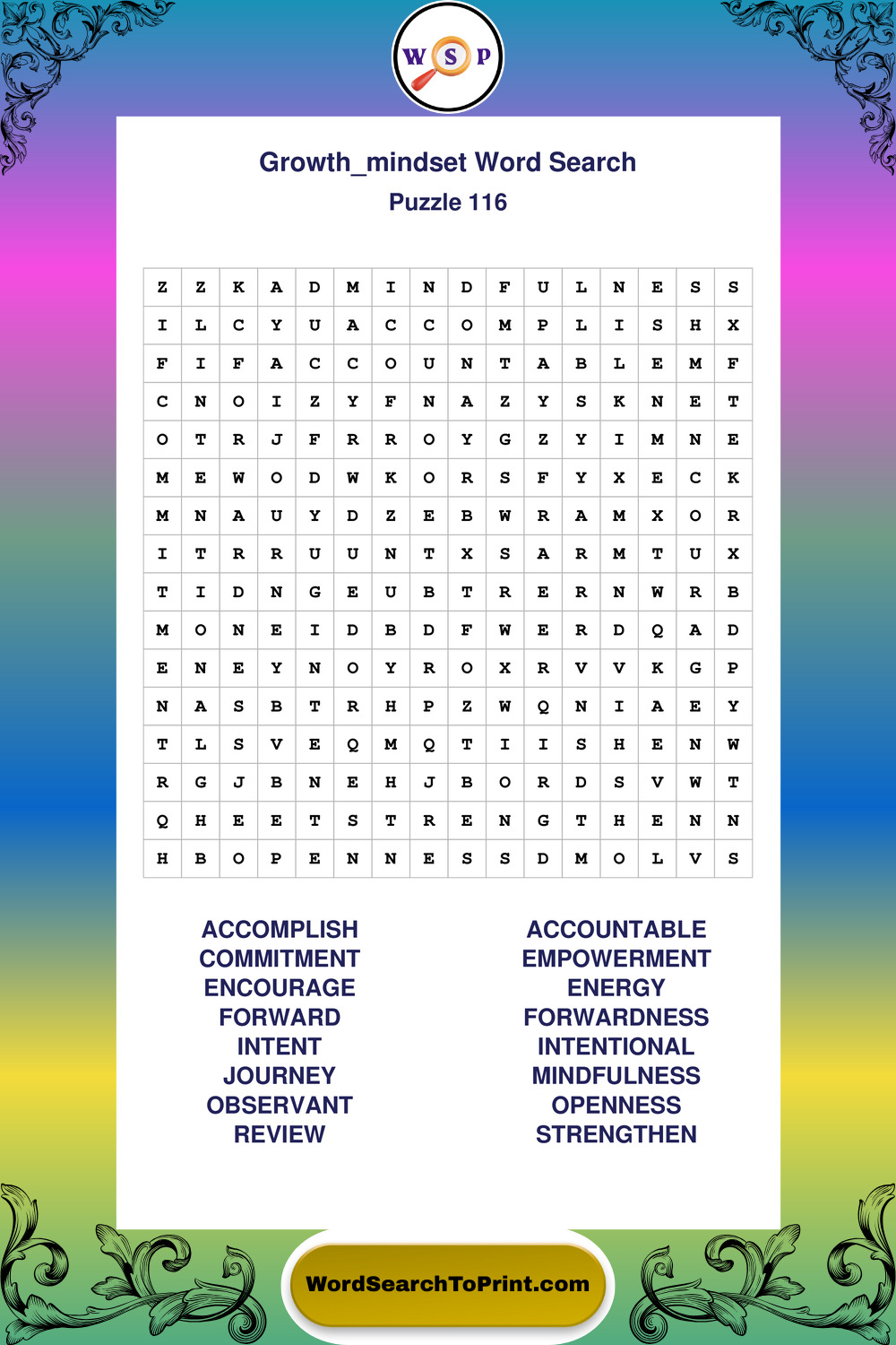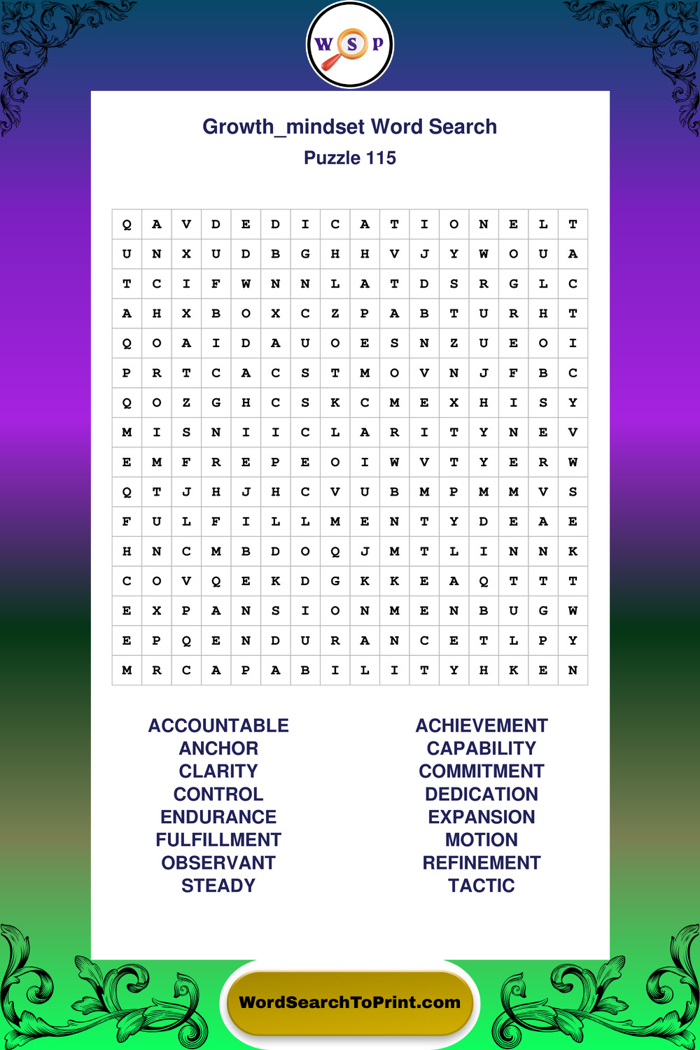 Discover large print Growth Mindset wordsearches designed to support relaxed thinking and comfortable reading.
