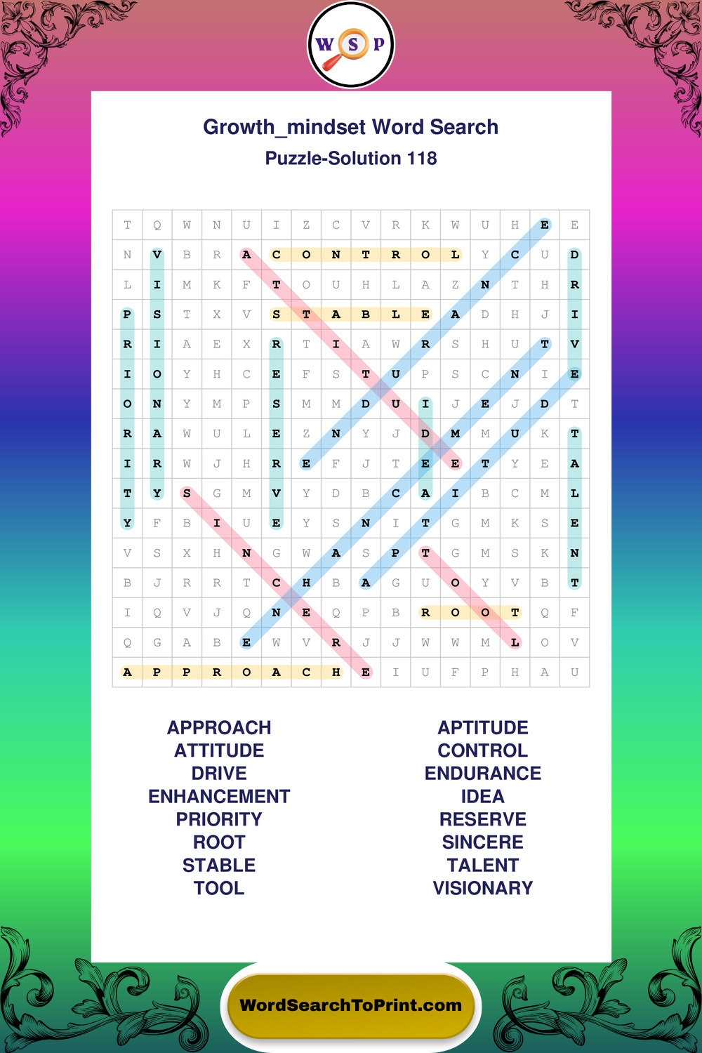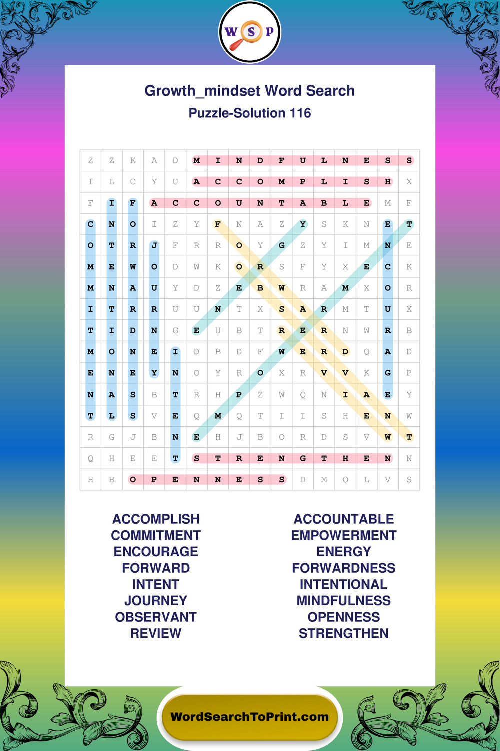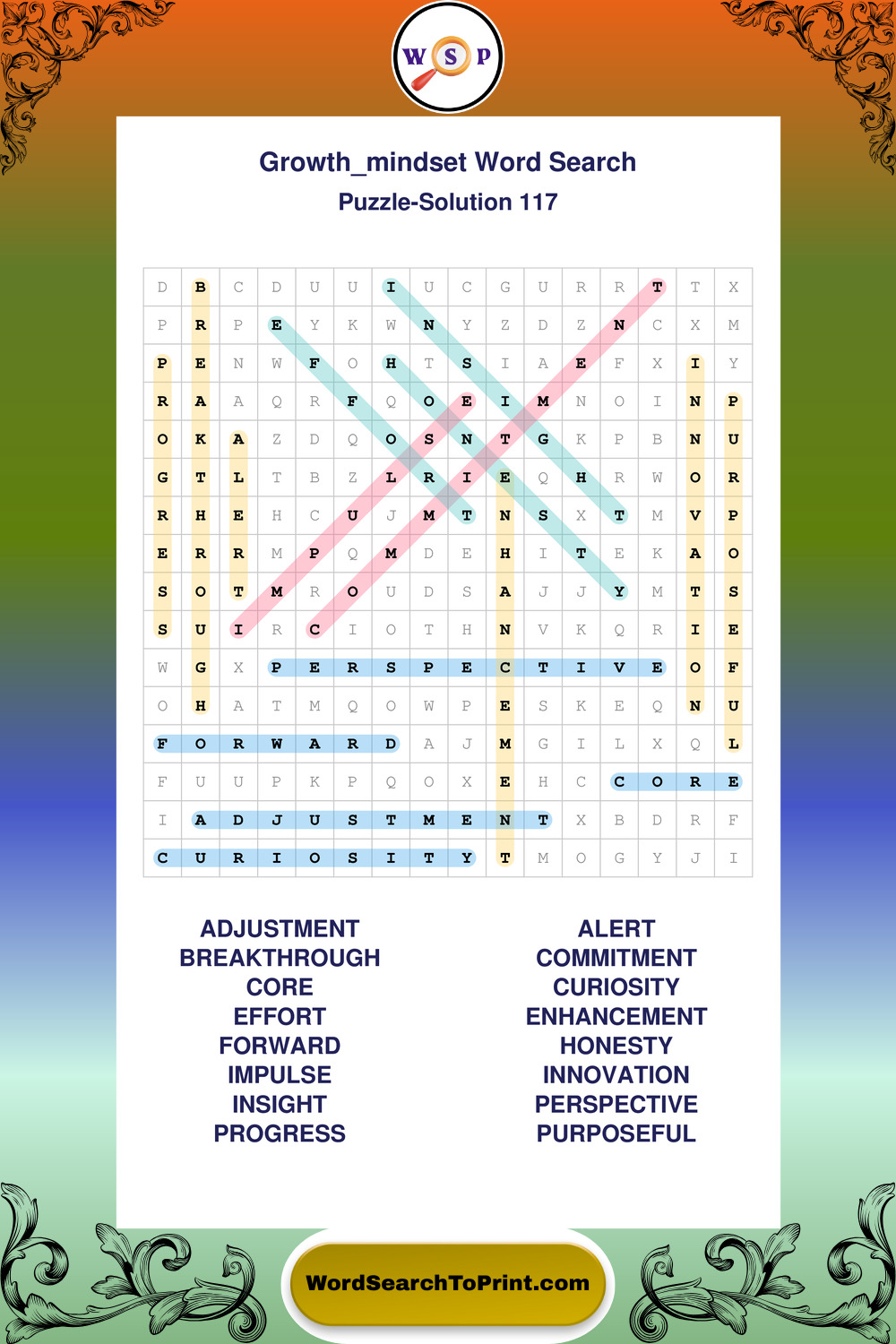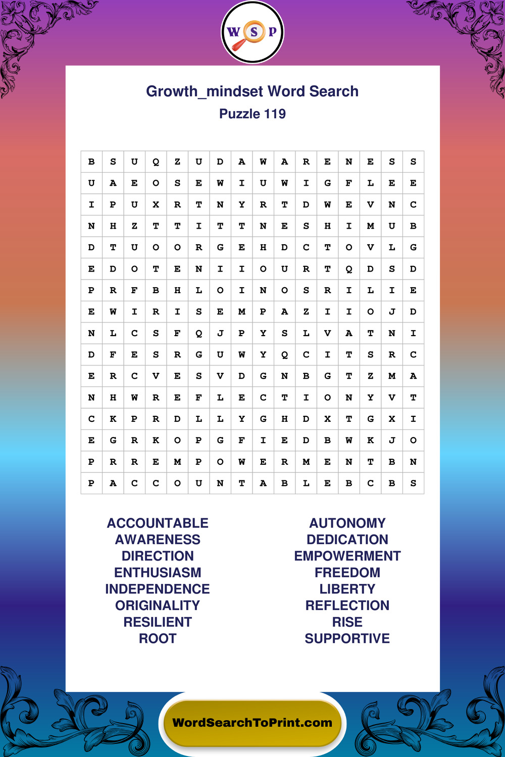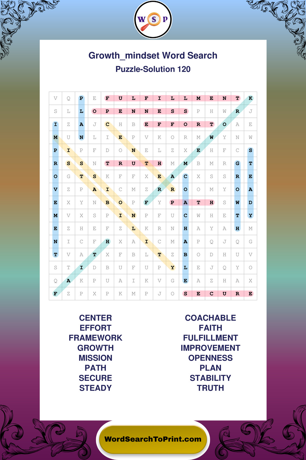 Discover large print Growth Mindset wordsearches designed to support relaxed thinking and comfortable reading.