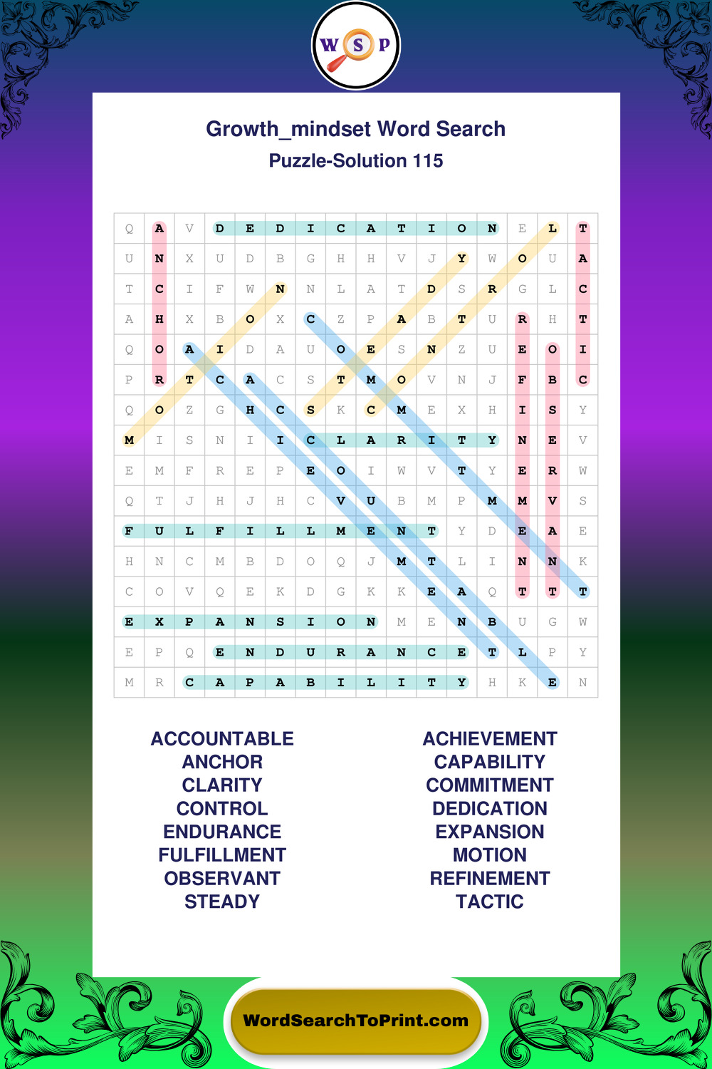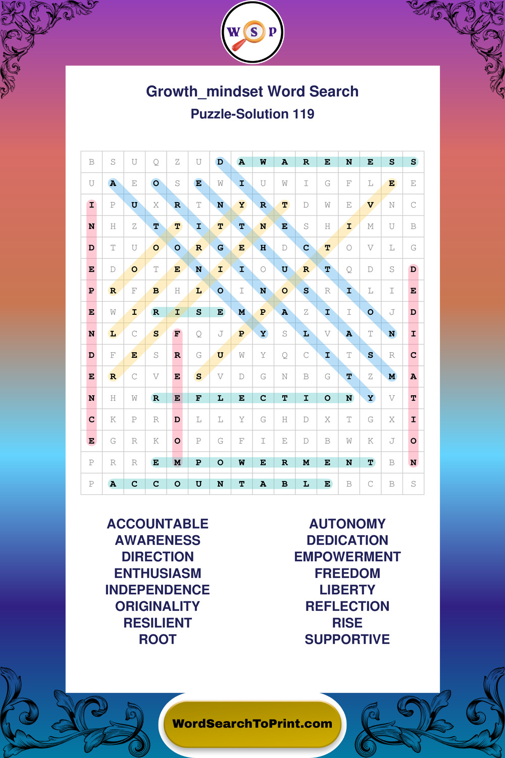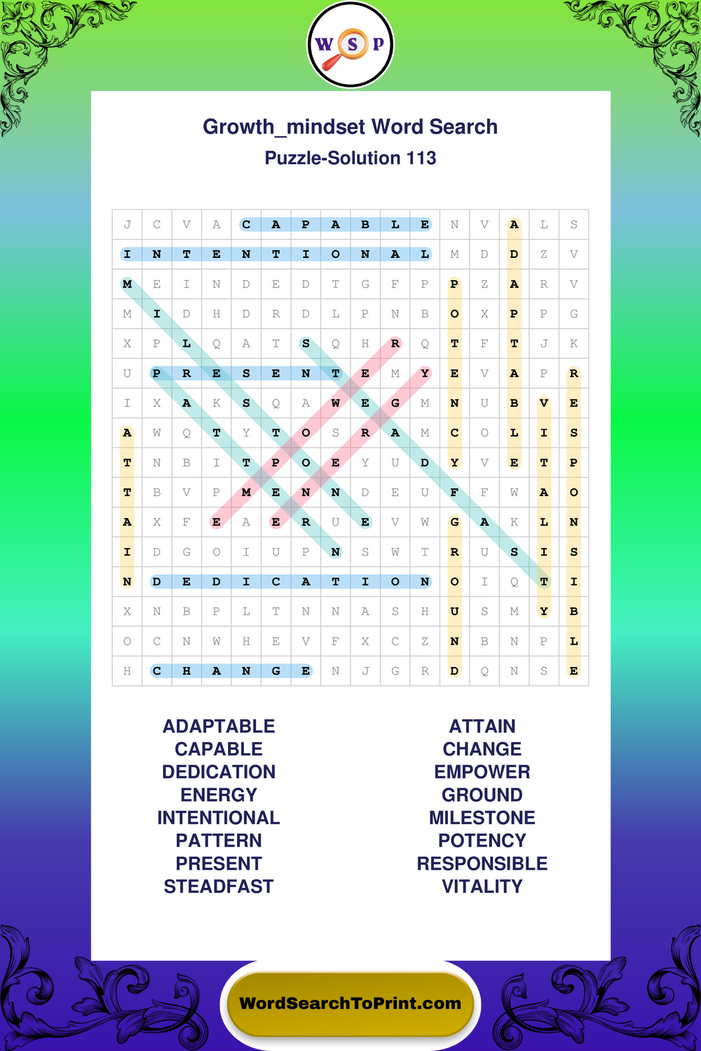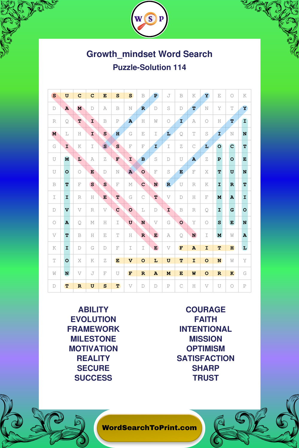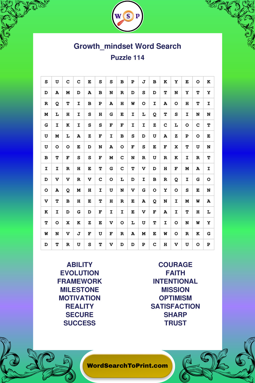 These puzzles focus on motivation, goal setting, life lessons, inspiration, and personal development concepts. These puzzles make it enjoyable to explore this theme while improving focus and reinforcing key terms. You may also enjoy our Wisdom word search puzzles and Life Lessons word search puzzles.