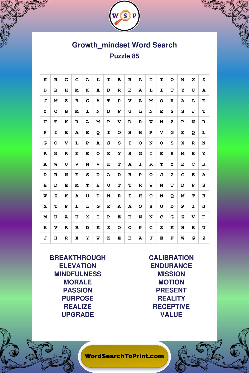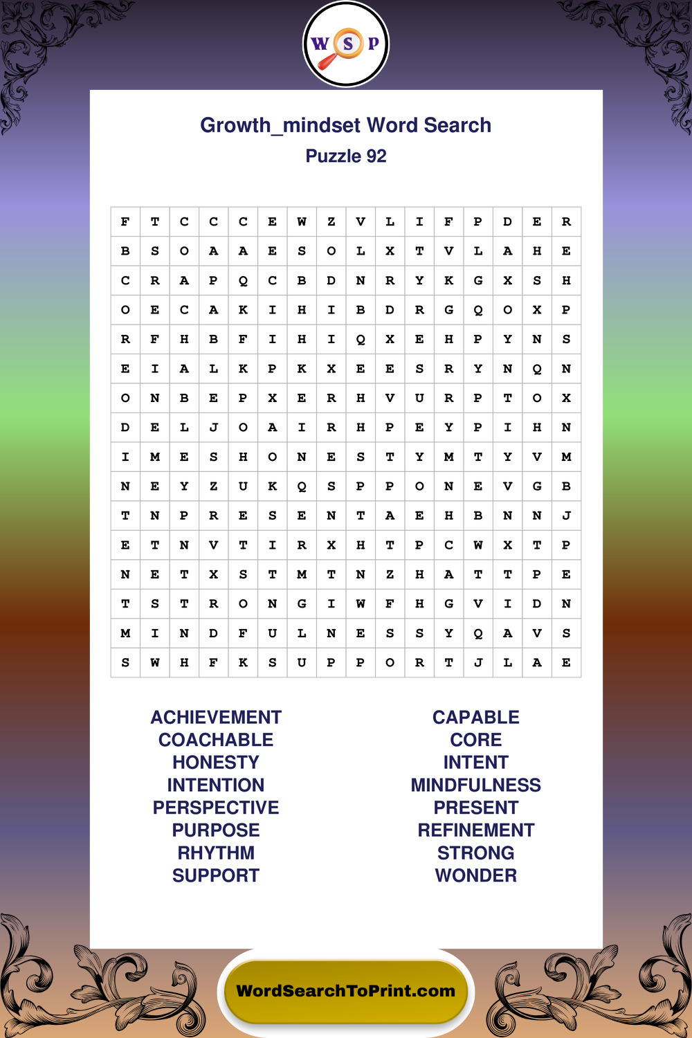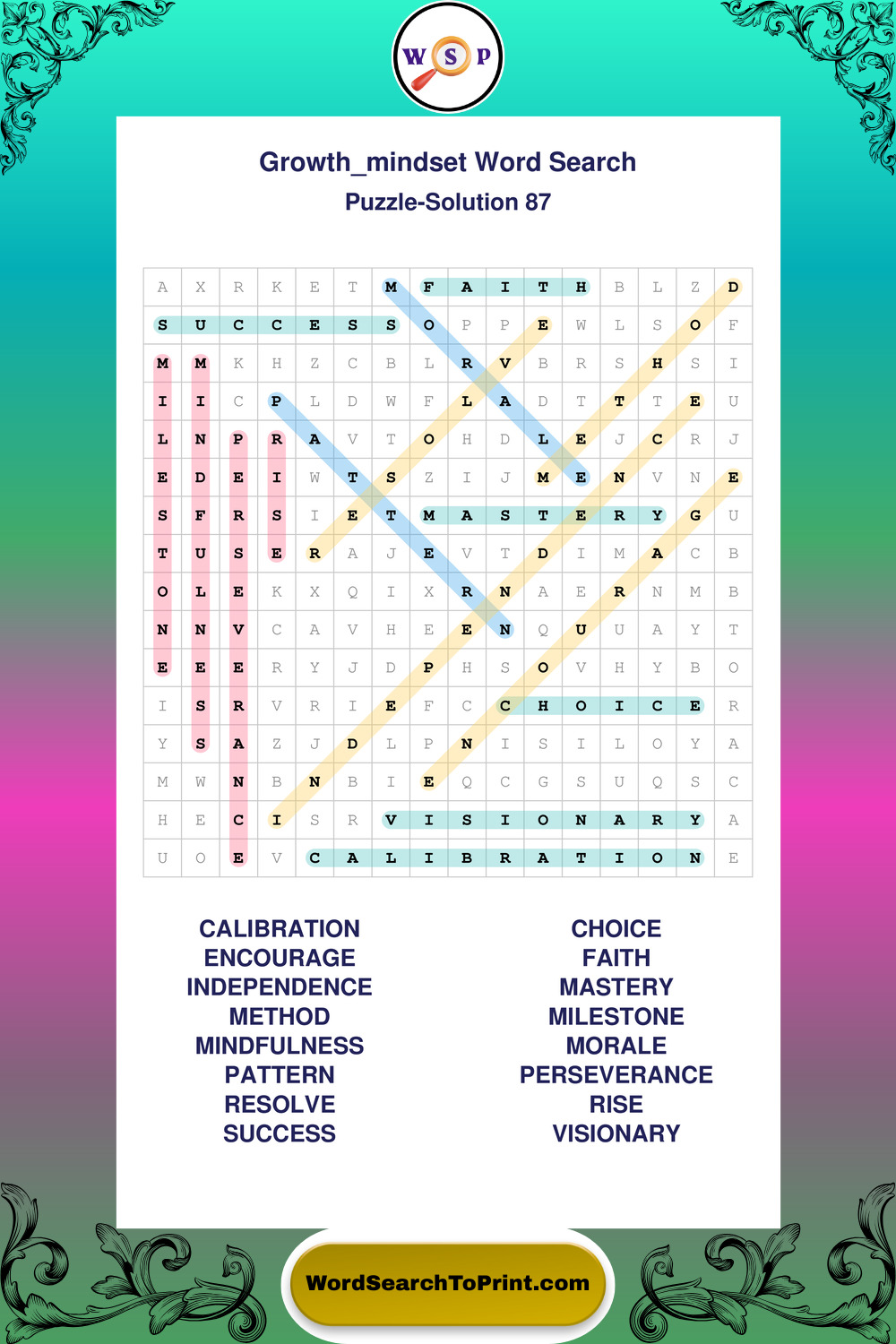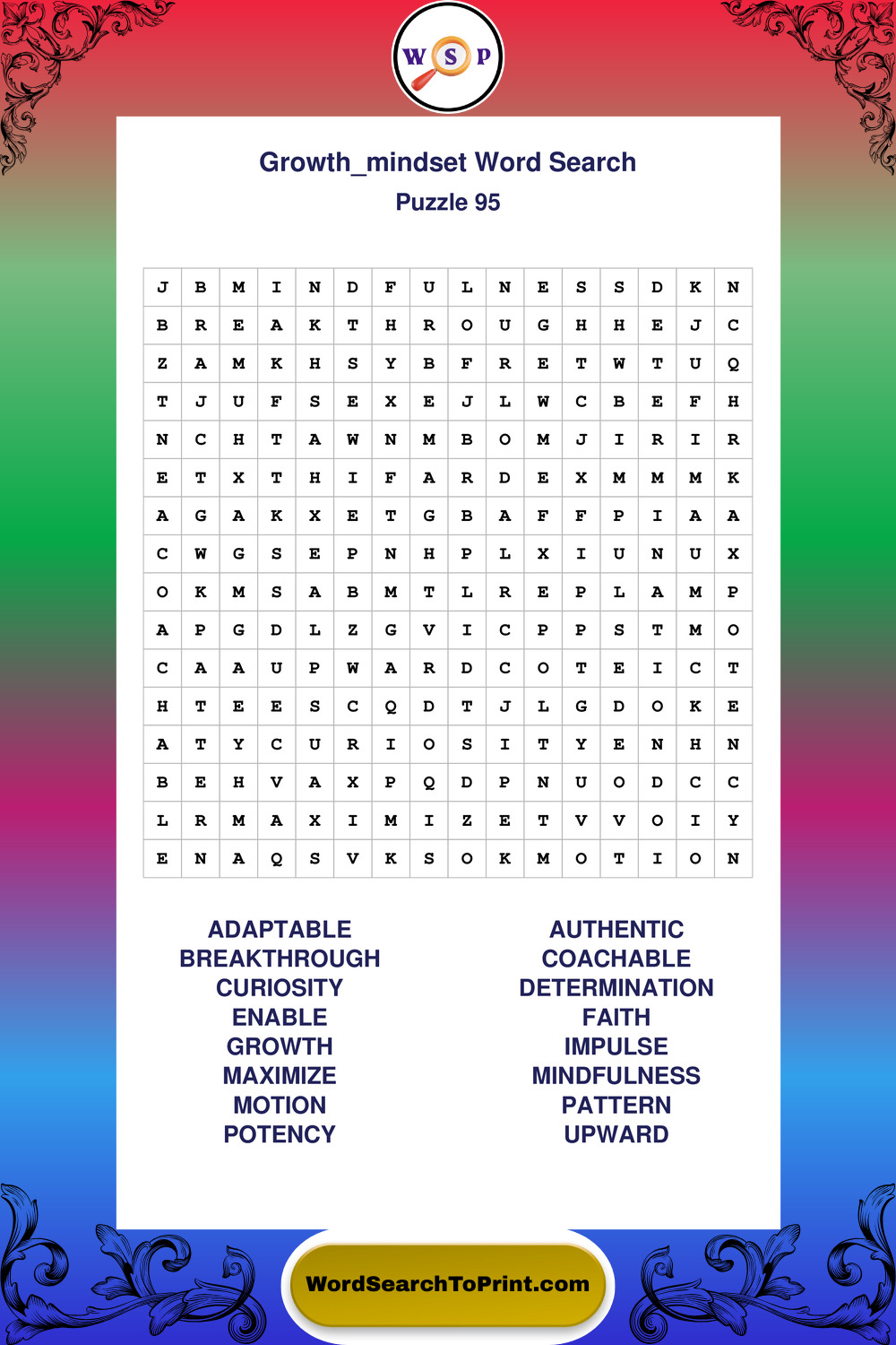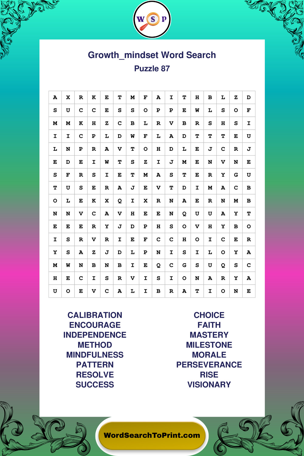 Printable Growth Mindset Wordsearch Puzzles