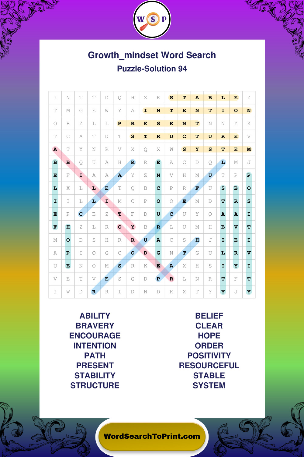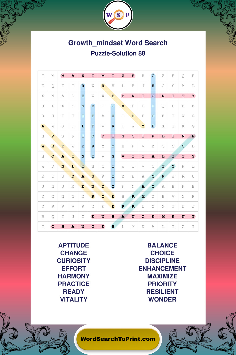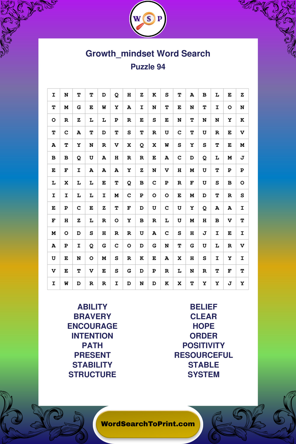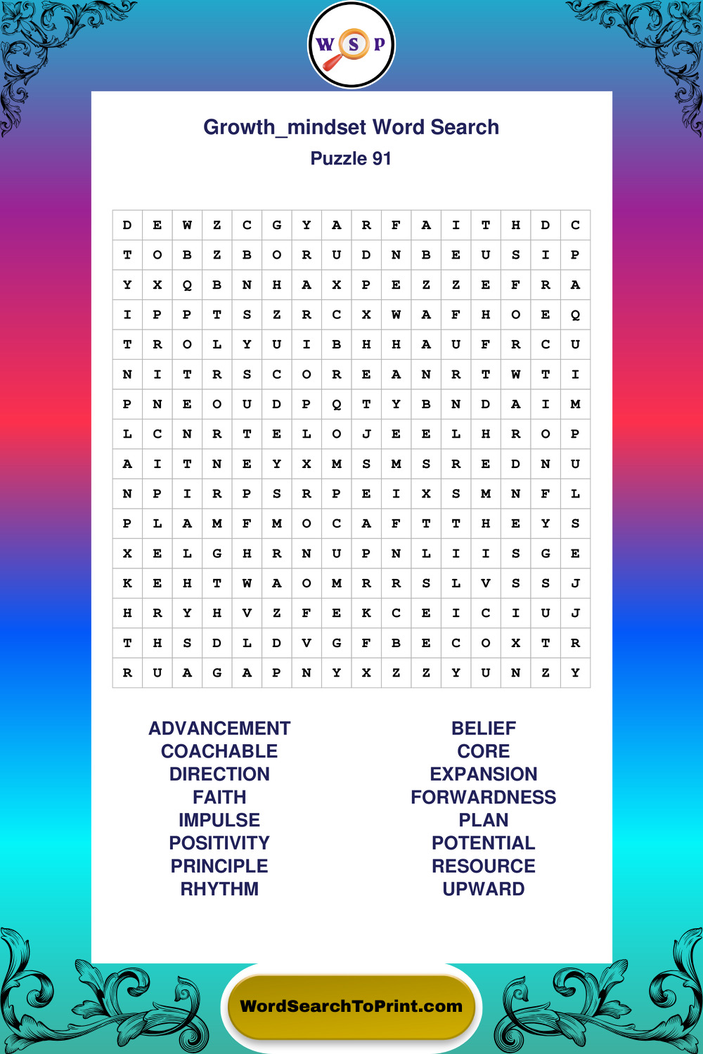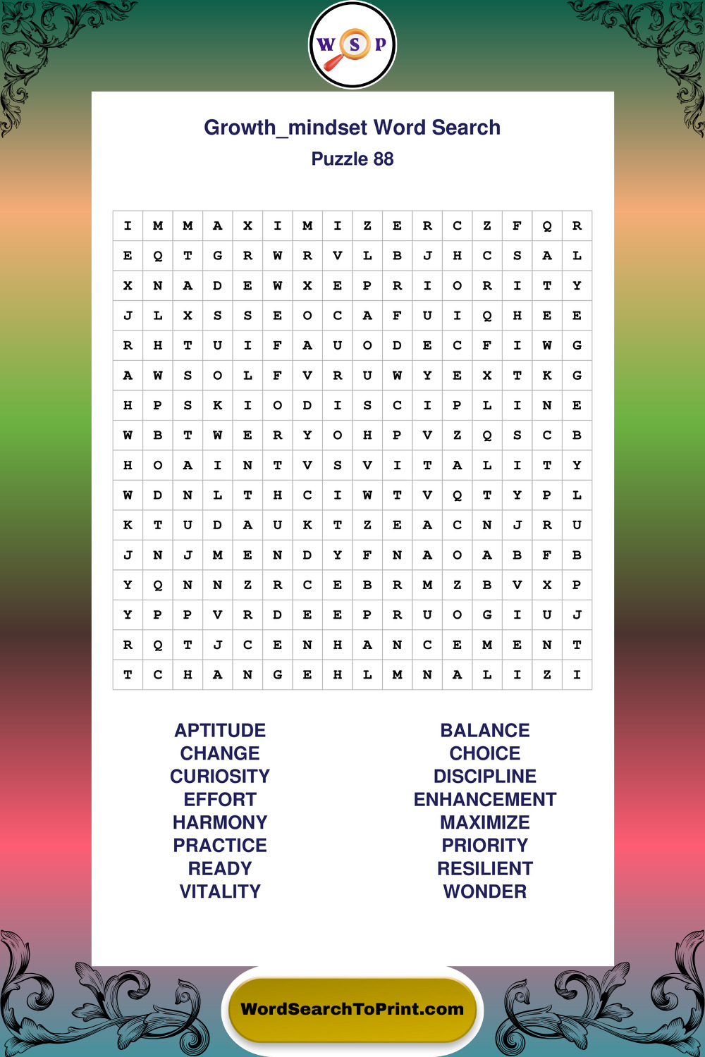 Printable Growth Mindset Wordsearch Puzzles
