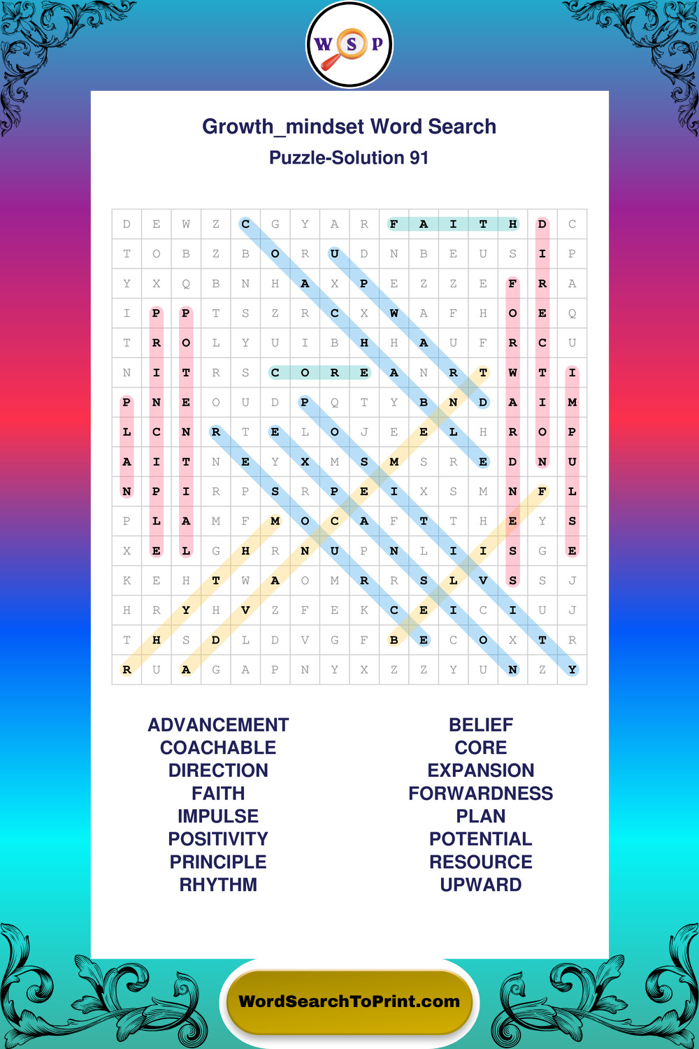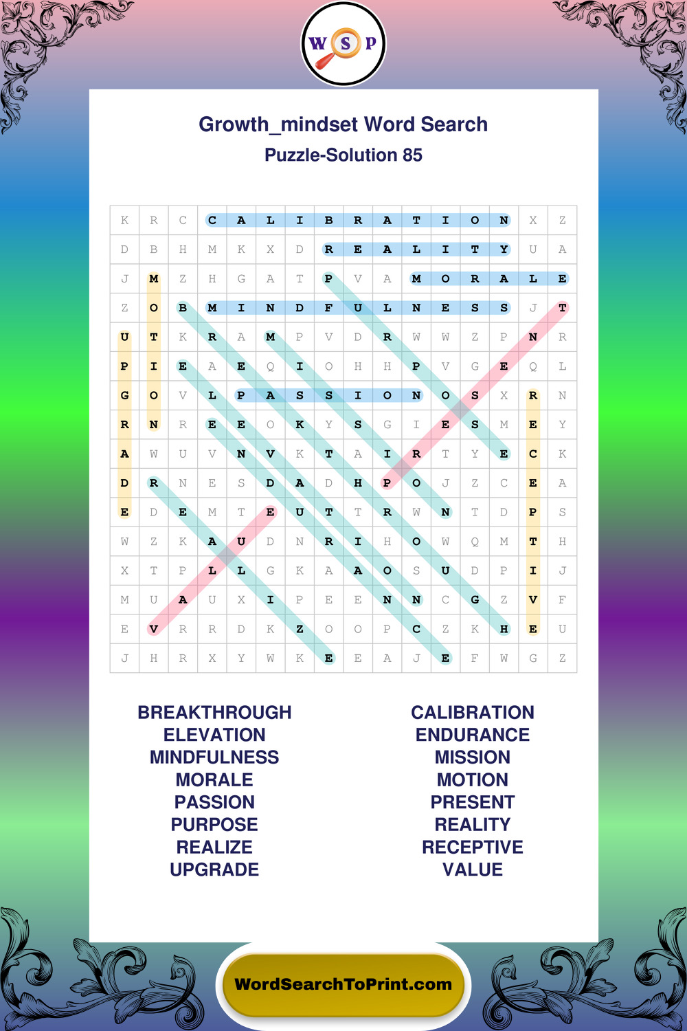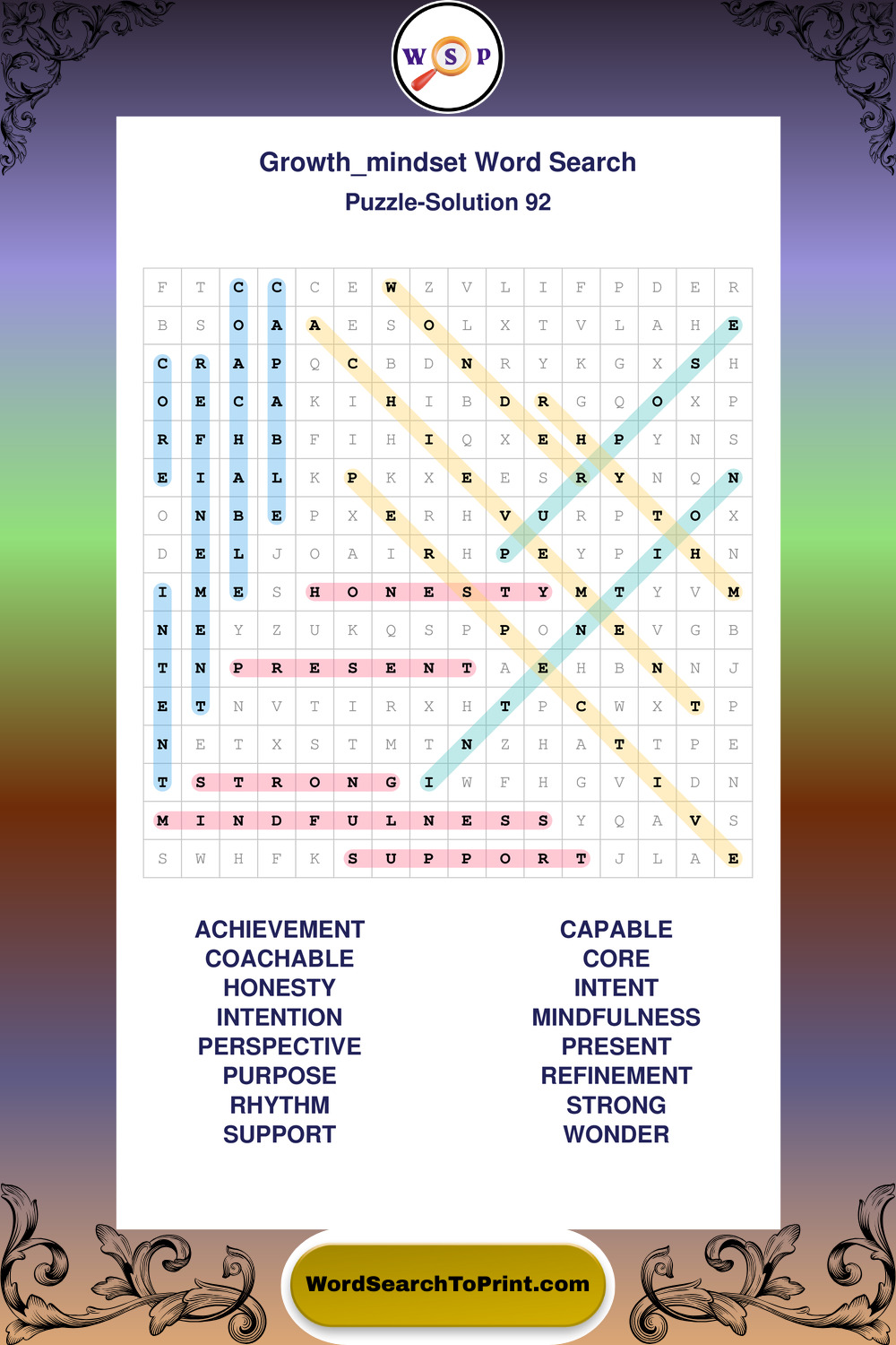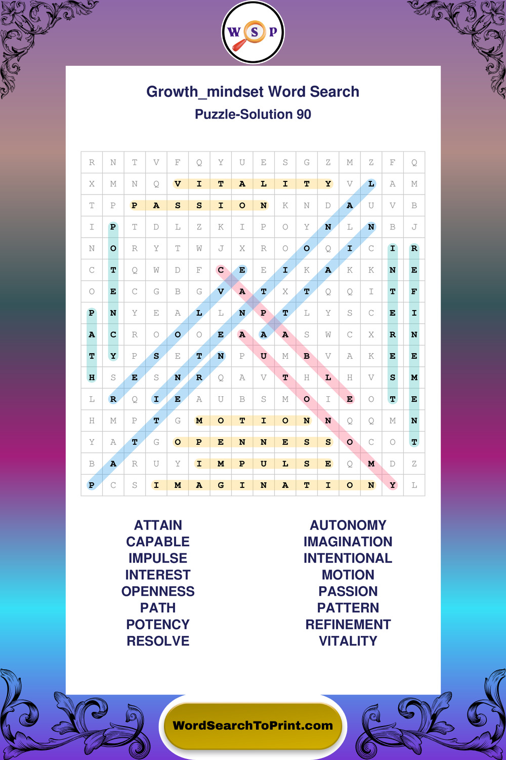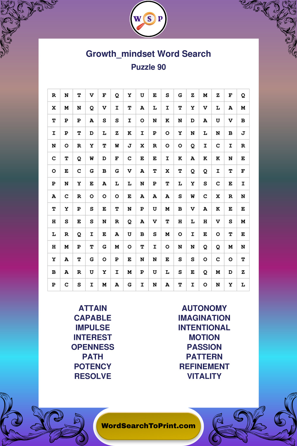 These puzzles focus on motivation, goal setting, life lessons, inspiration, and personal development concepts. These puzzles make it enjoyable to explore this theme while improving focus and reinforcing key terms. You may also enjoy our Wisdom word search puzzles and Life Lessons word search puzzles.