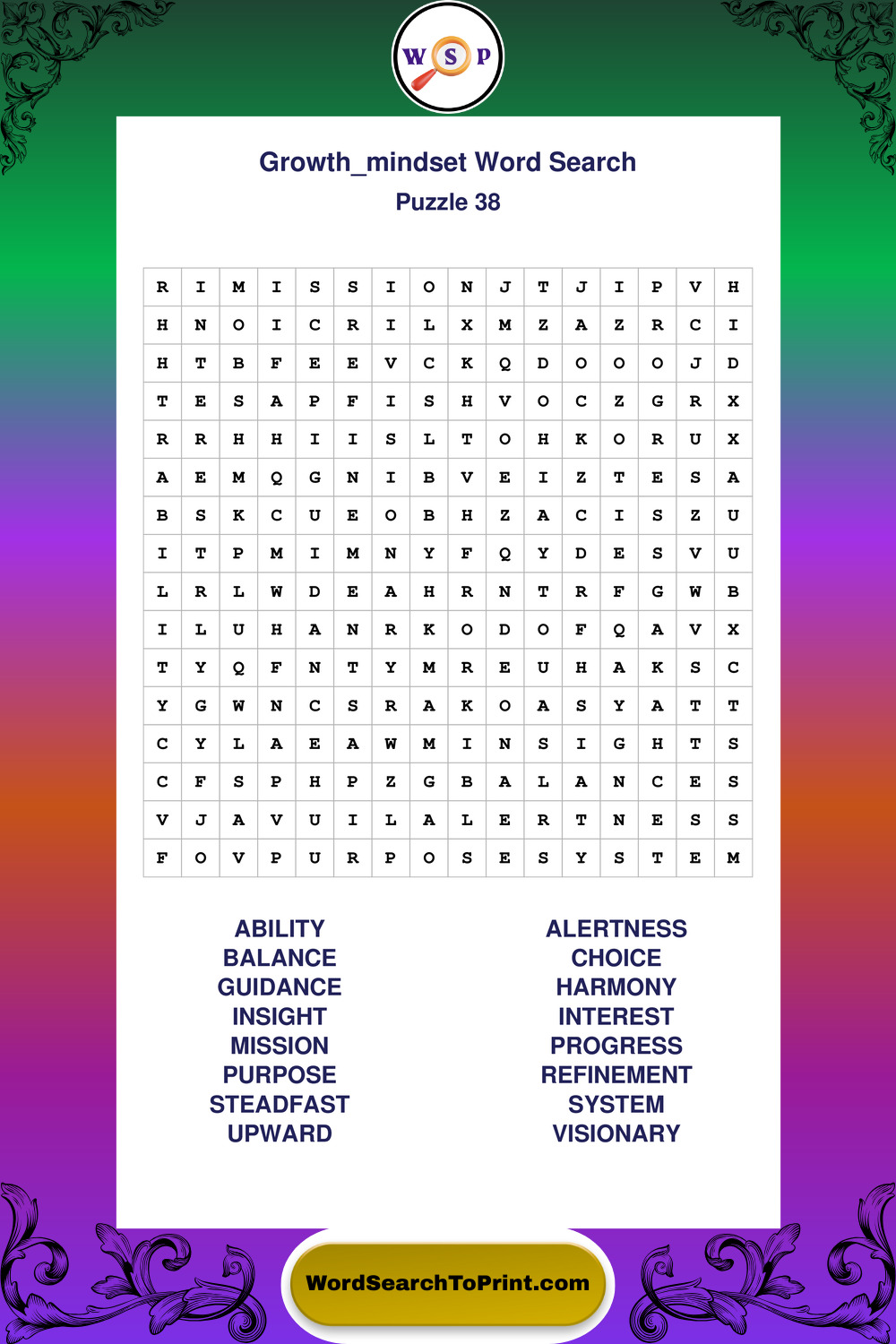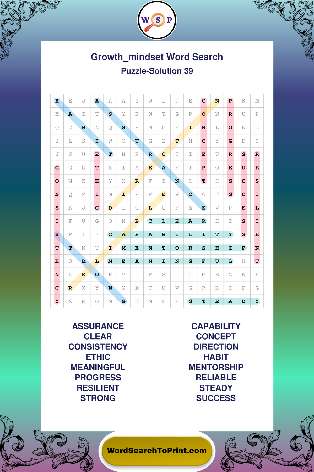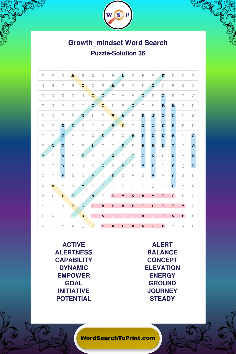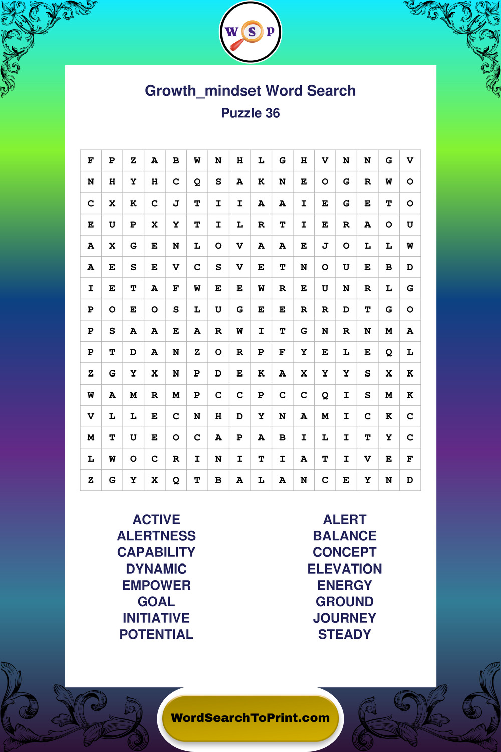 These puzzles focus on motivation, goal setting, life lessons, inspiration, and personal development concepts. These puzzles make it enjoyable to explore this theme while improving focus and reinforcing key terms. You may also enjoy our Wisdom word search puzzles and Life Lessons word search puzzles.
