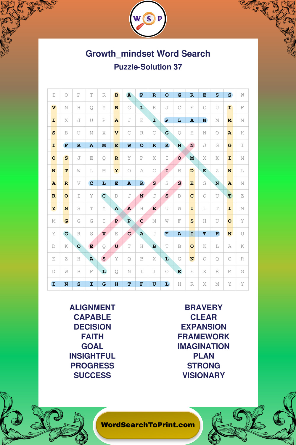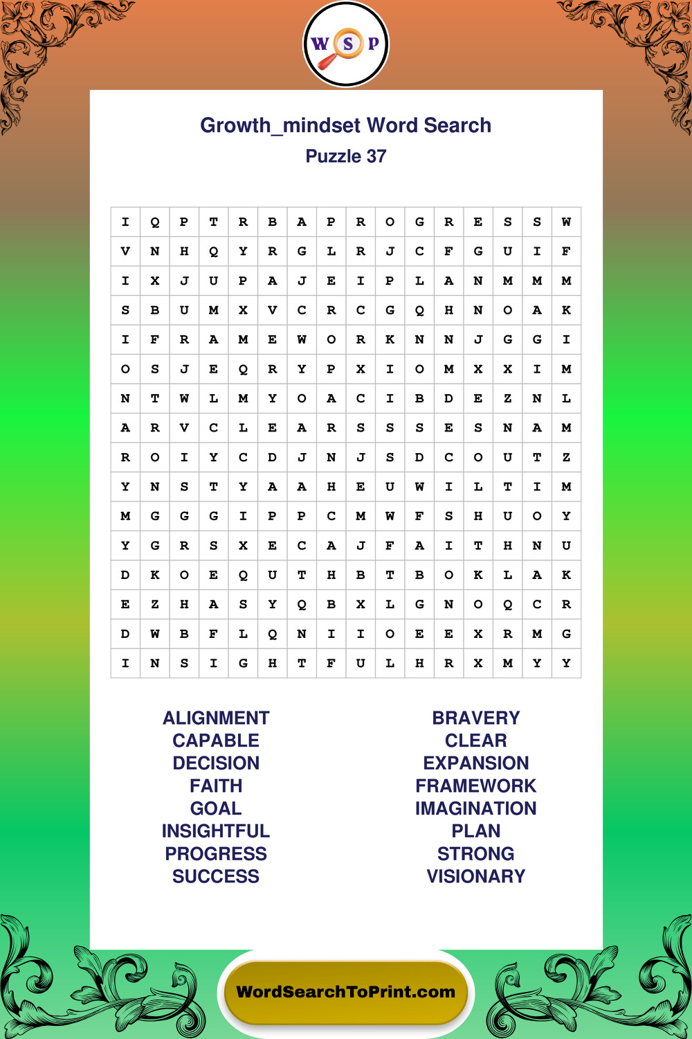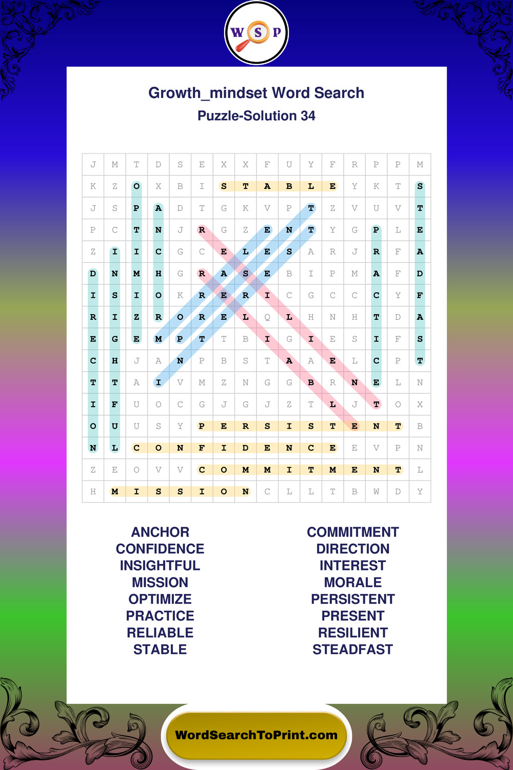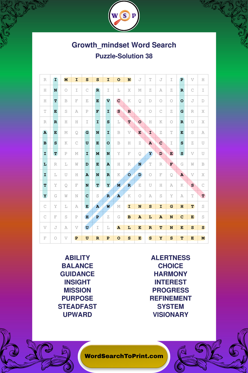These puzzles focus on motivation, goal setting, life lessons, inspiration, and personal development concepts. These puzzles make it enjoyable to explore this theme while improving focus and reinforcing key terms. You may also enjoy our Wisdom word search puzzles and Life Lessons word search puzzles.