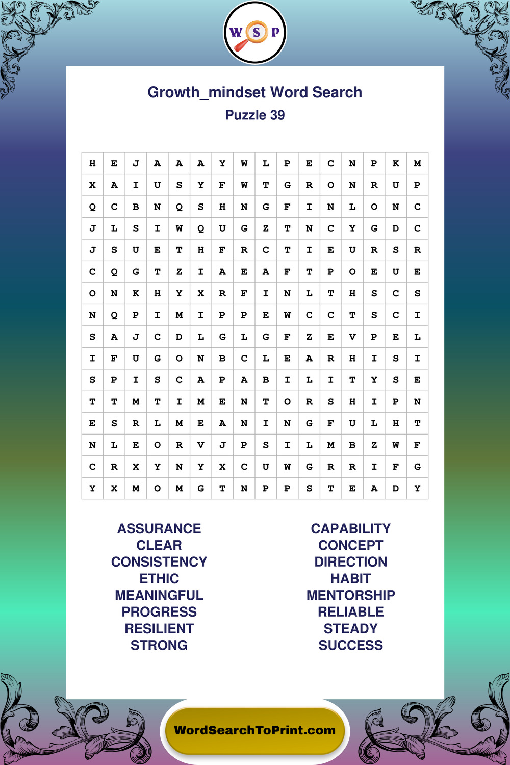 Printable Growth Mindset Wordsearch Puzzles