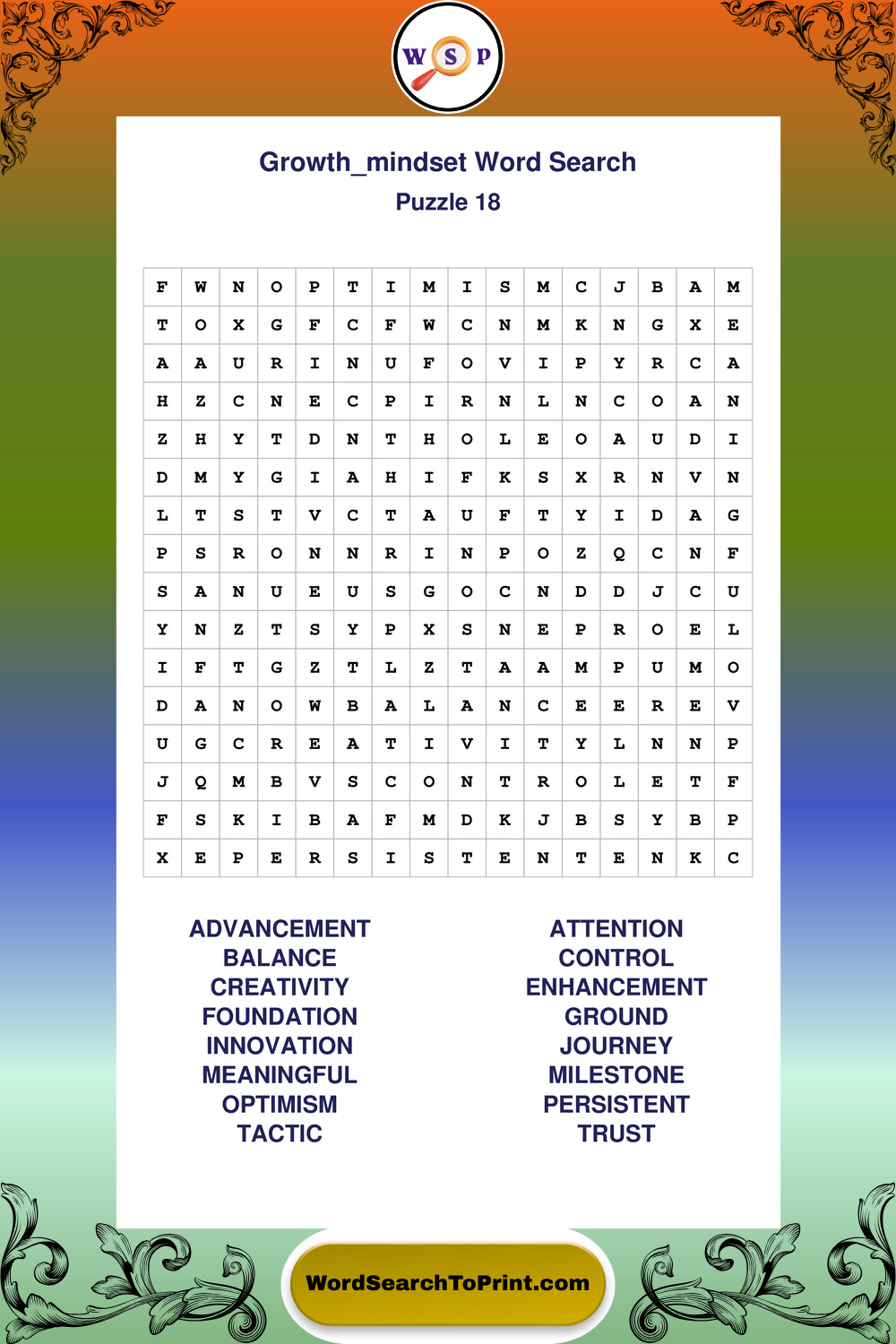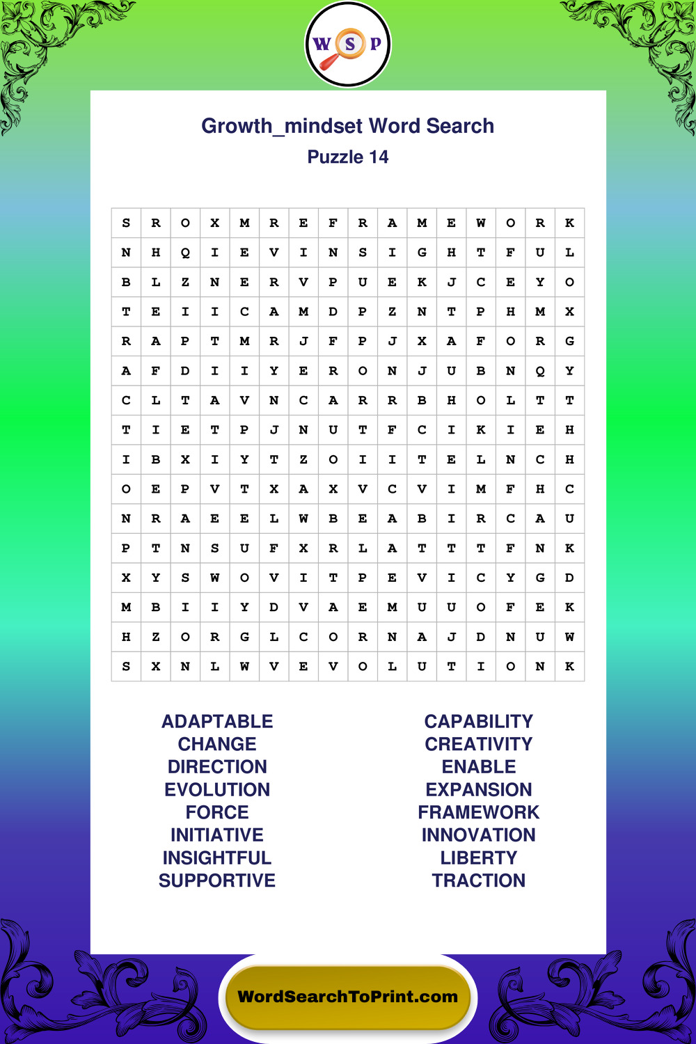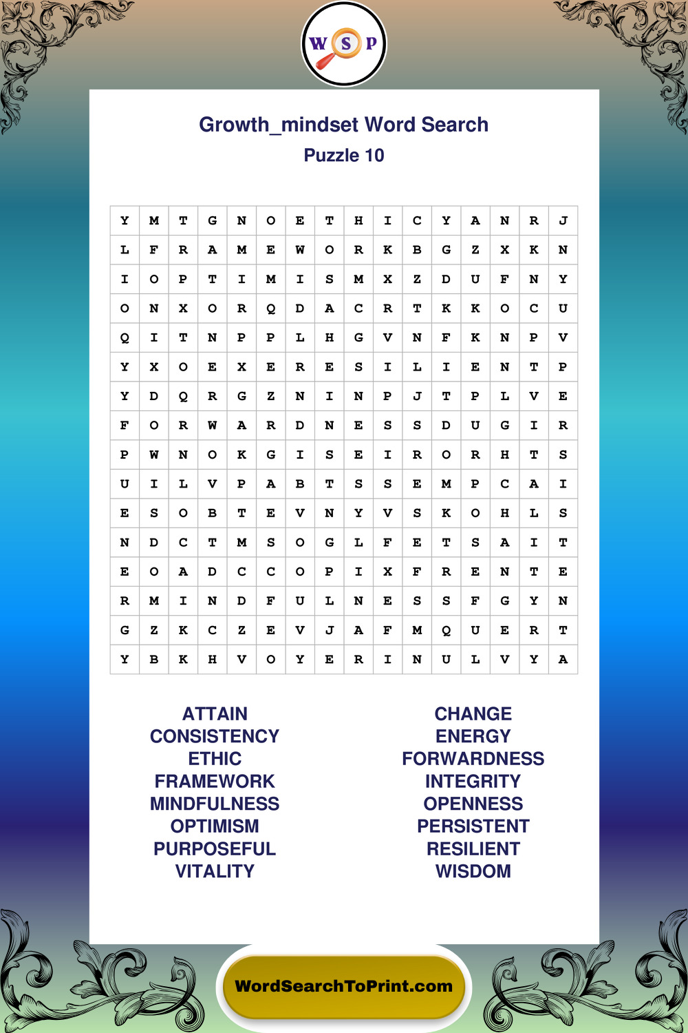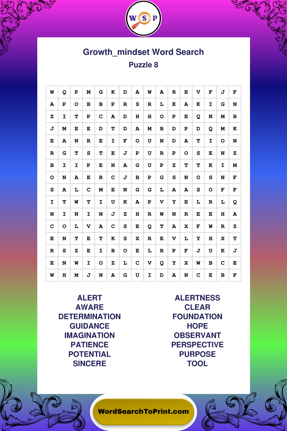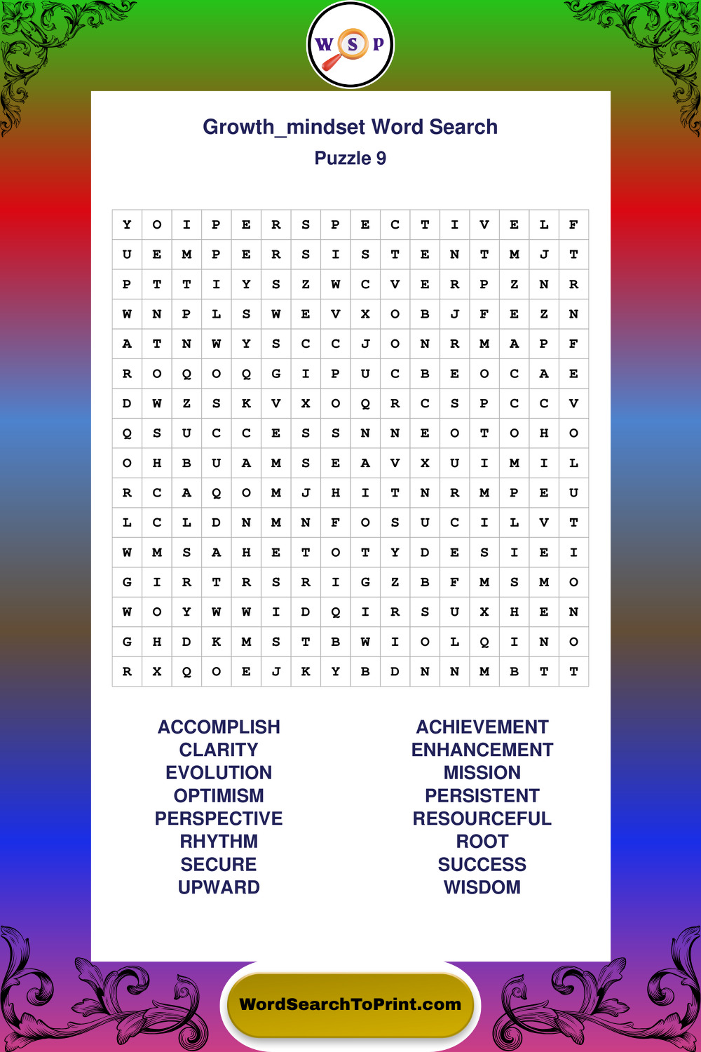 Printable Growth Mindset Wordsearch Puzzles