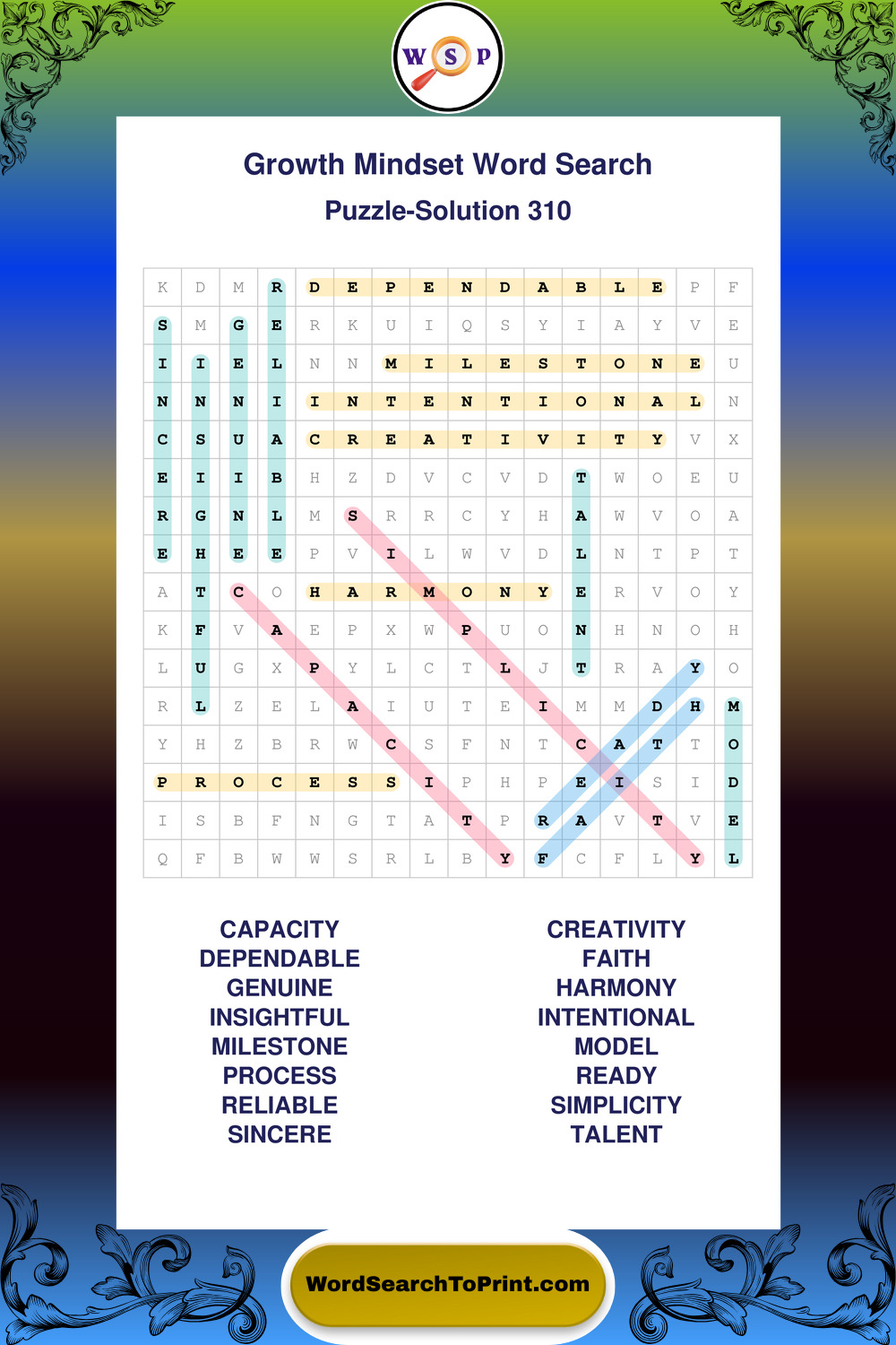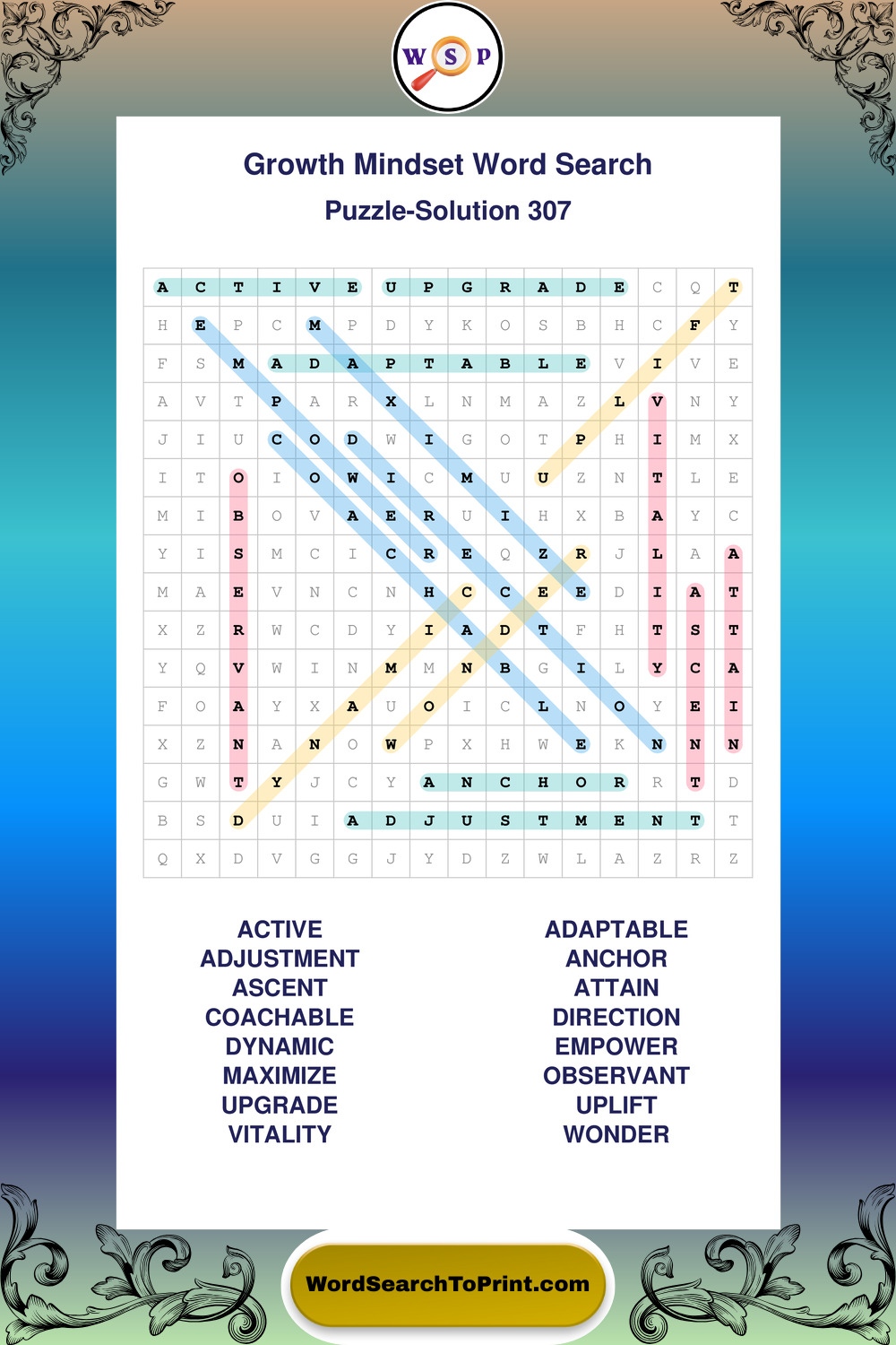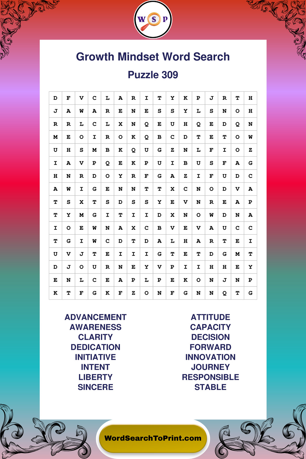 These puzzles focus on motivation, goal setting, life lessons, inspiration, and personal development concepts. These puzzles make it enjoyable to explore this theme while improving focus and reinforcing key terms. You may also enjoy our Wisdom word search puzzles and Life Lessons word search puzzles.
