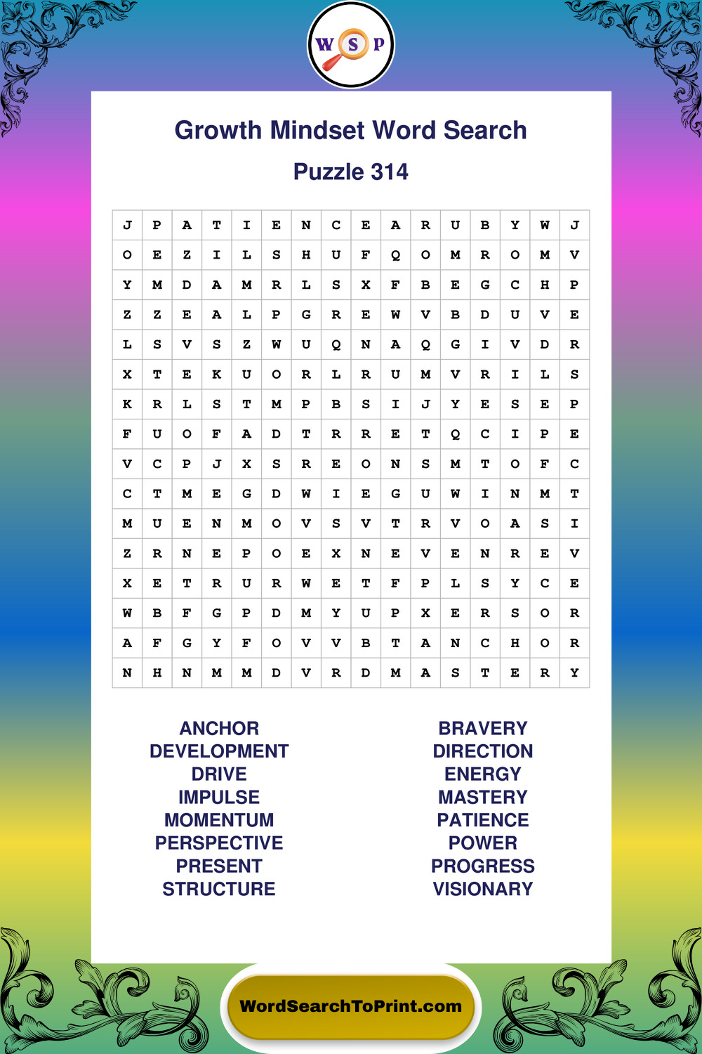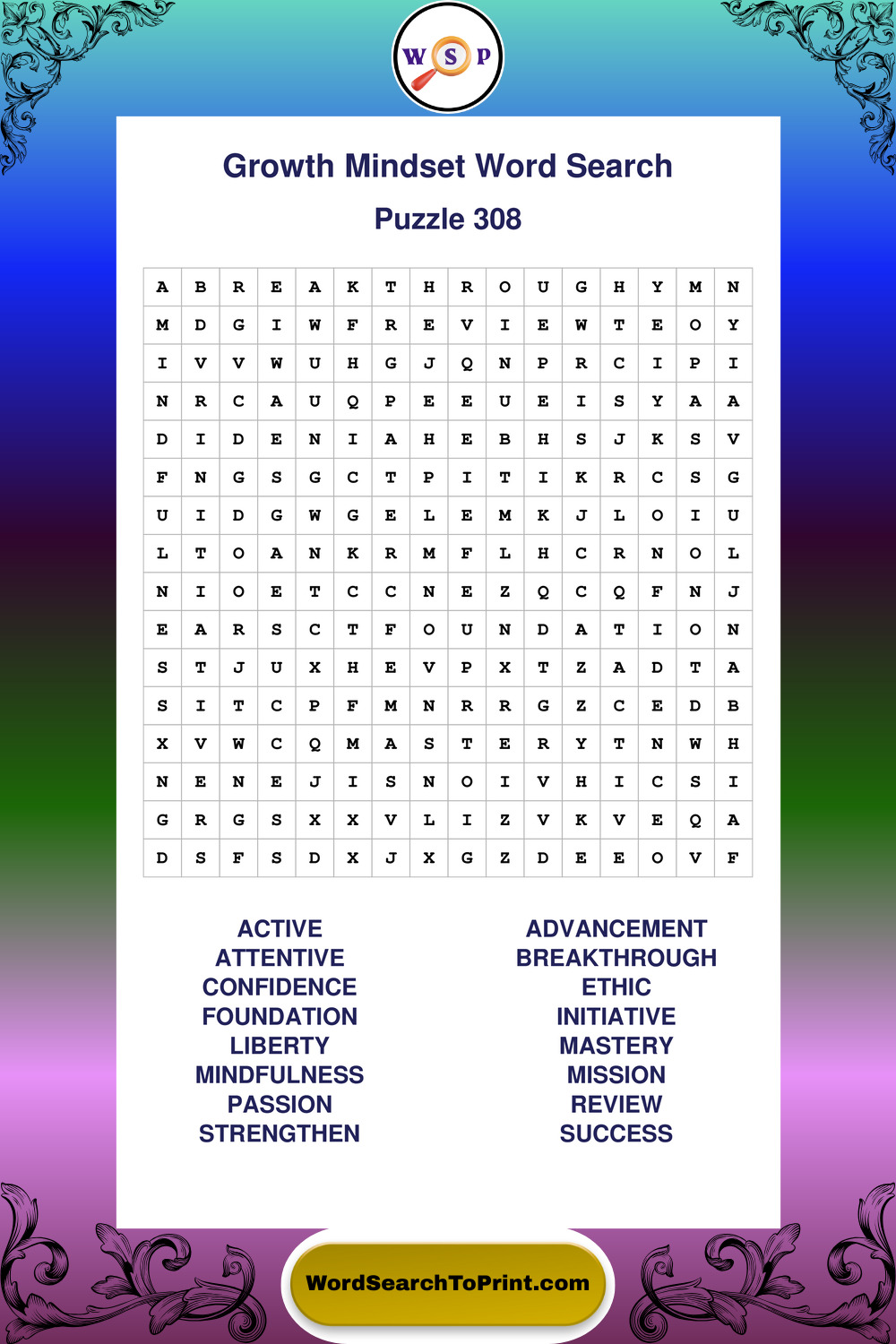 Discover large print Growth Mindset wordsearches designed to support relaxed thinking and comfortable reading.