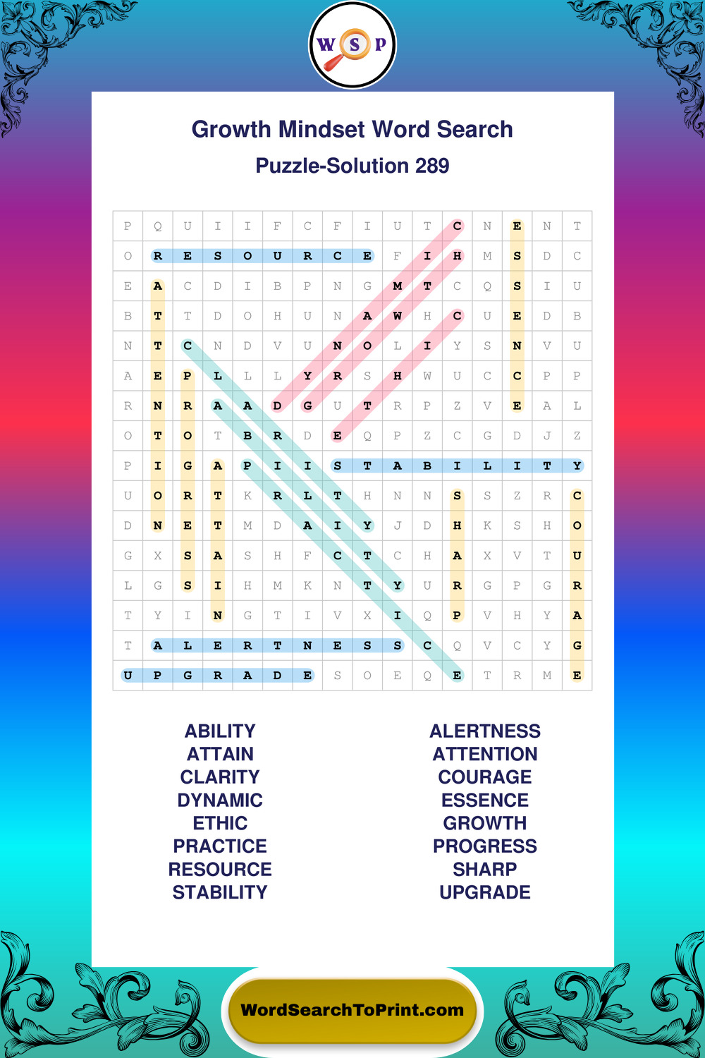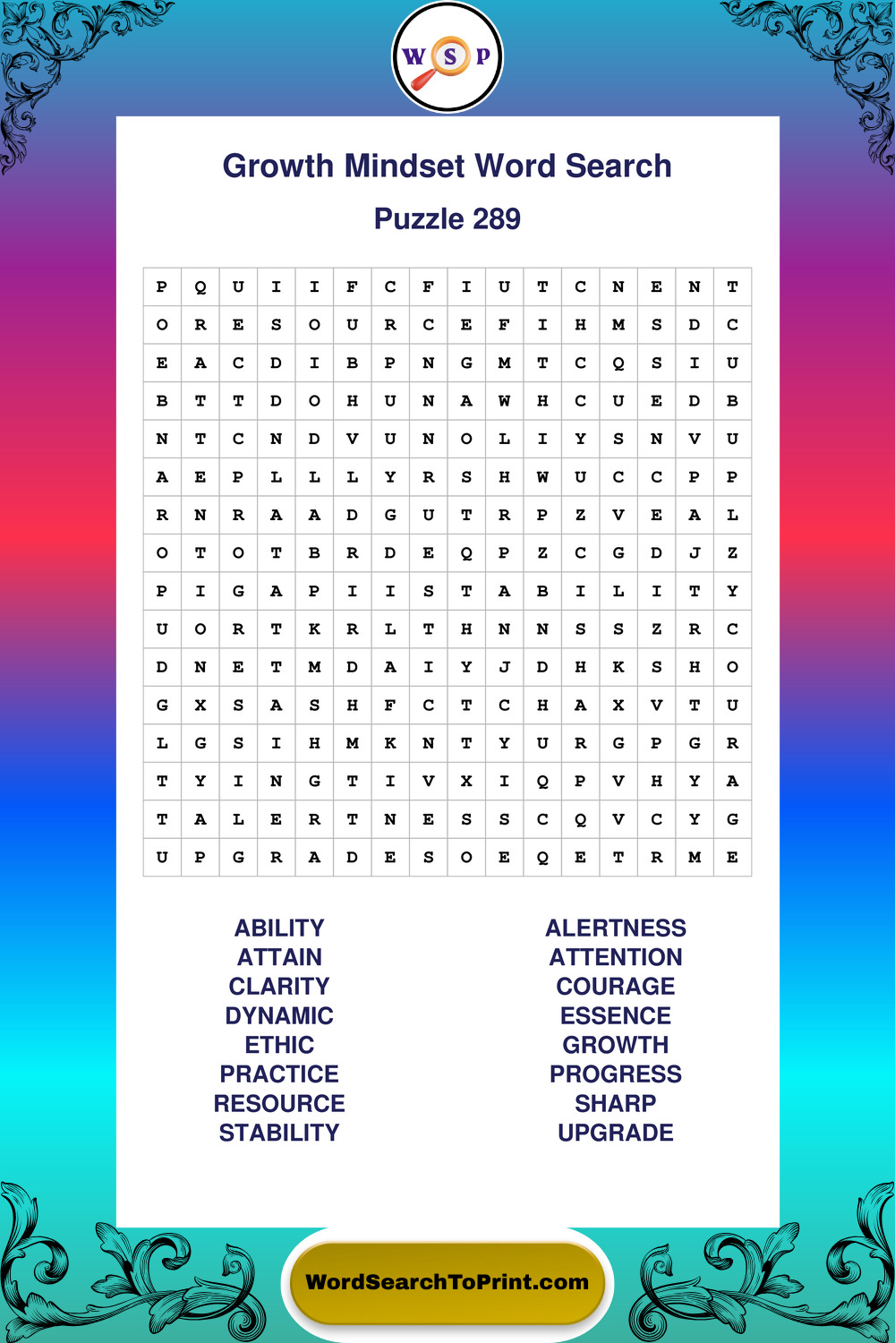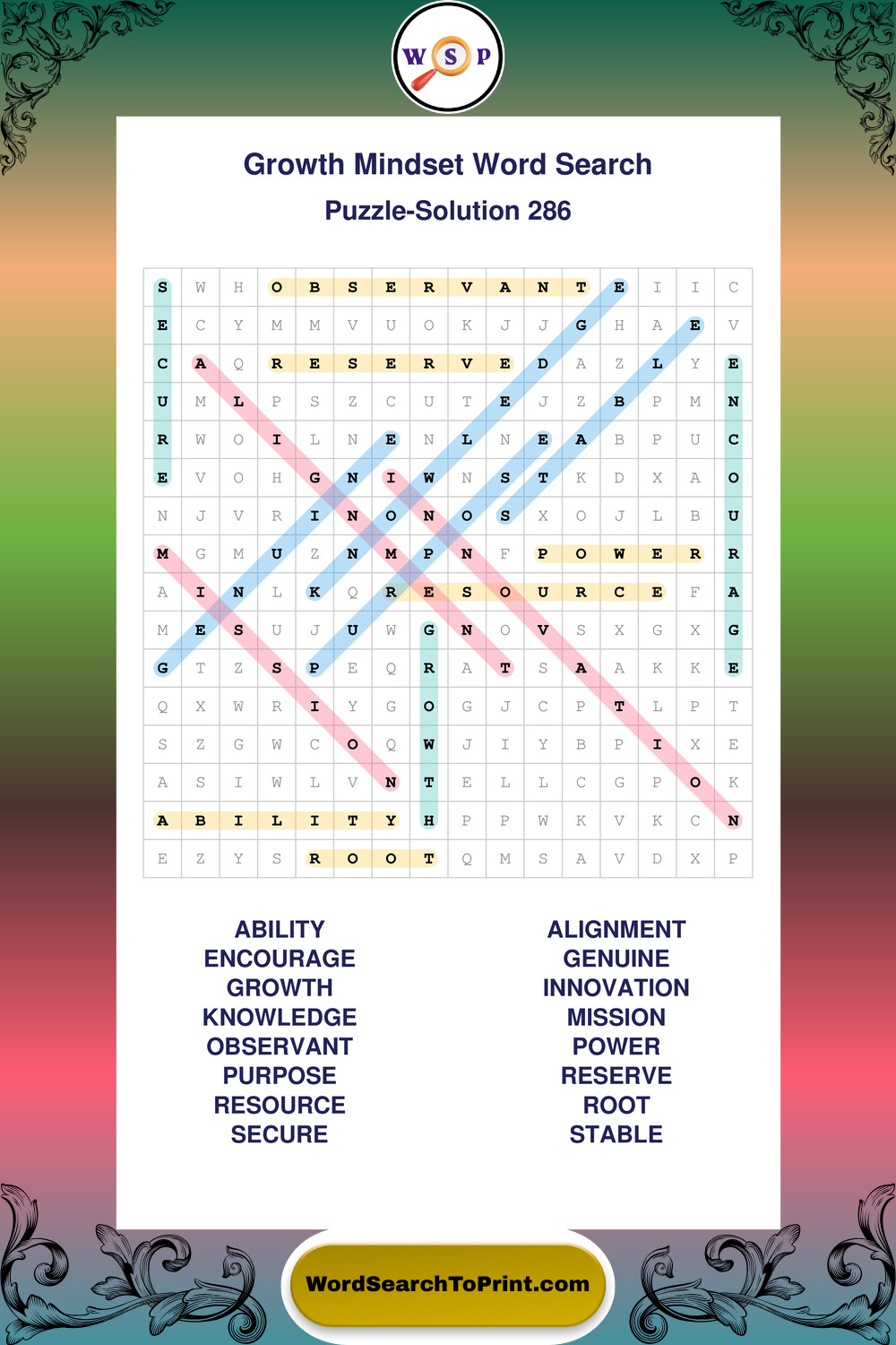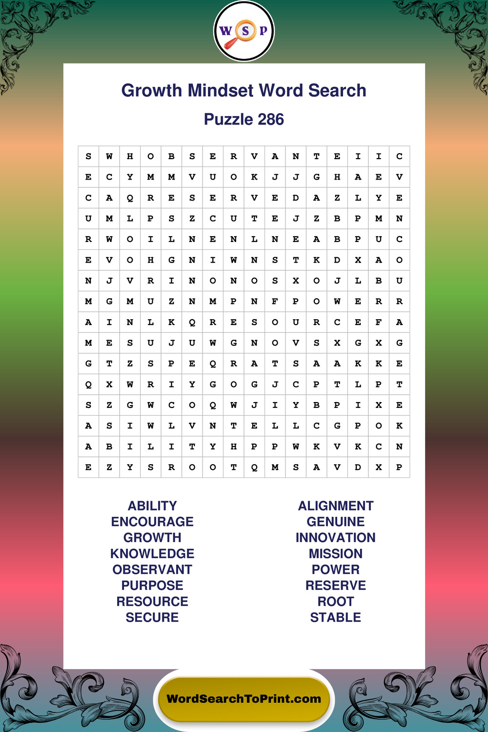 Printable Growth Mindset Wordsearch Puzzles