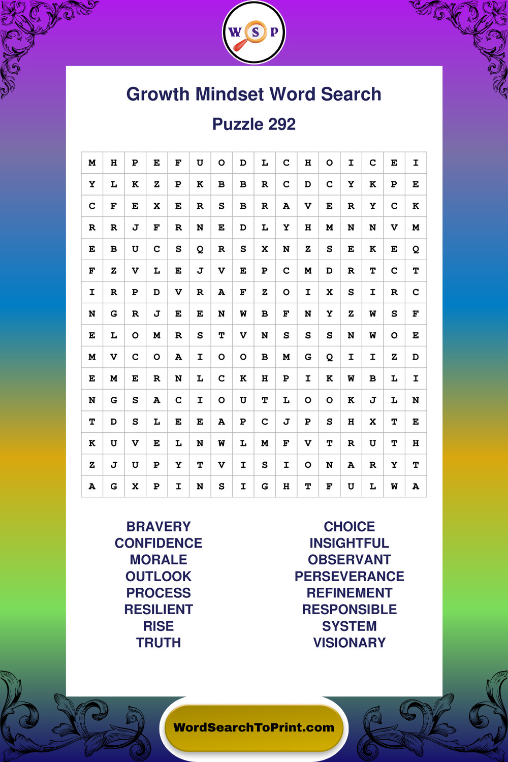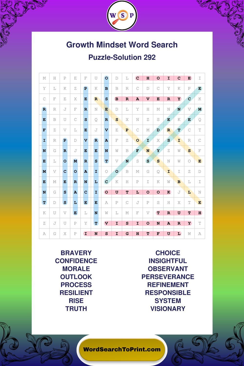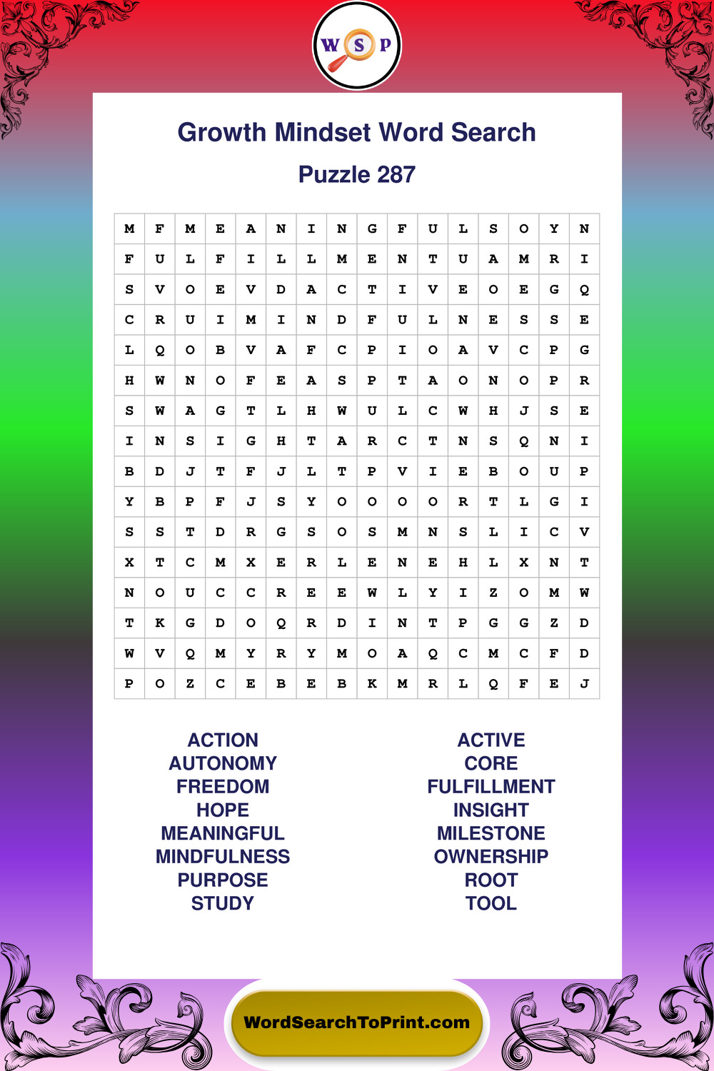 These puzzles focus on motivation, goal setting, life lessons, inspiration, and personal development concepts. These puzzles make it enjoyable to explore this theme while improving focus and reinforcing key terms. You may also enjoy our Wisdom word search puzzles and Life Lessons word search puzzles.
