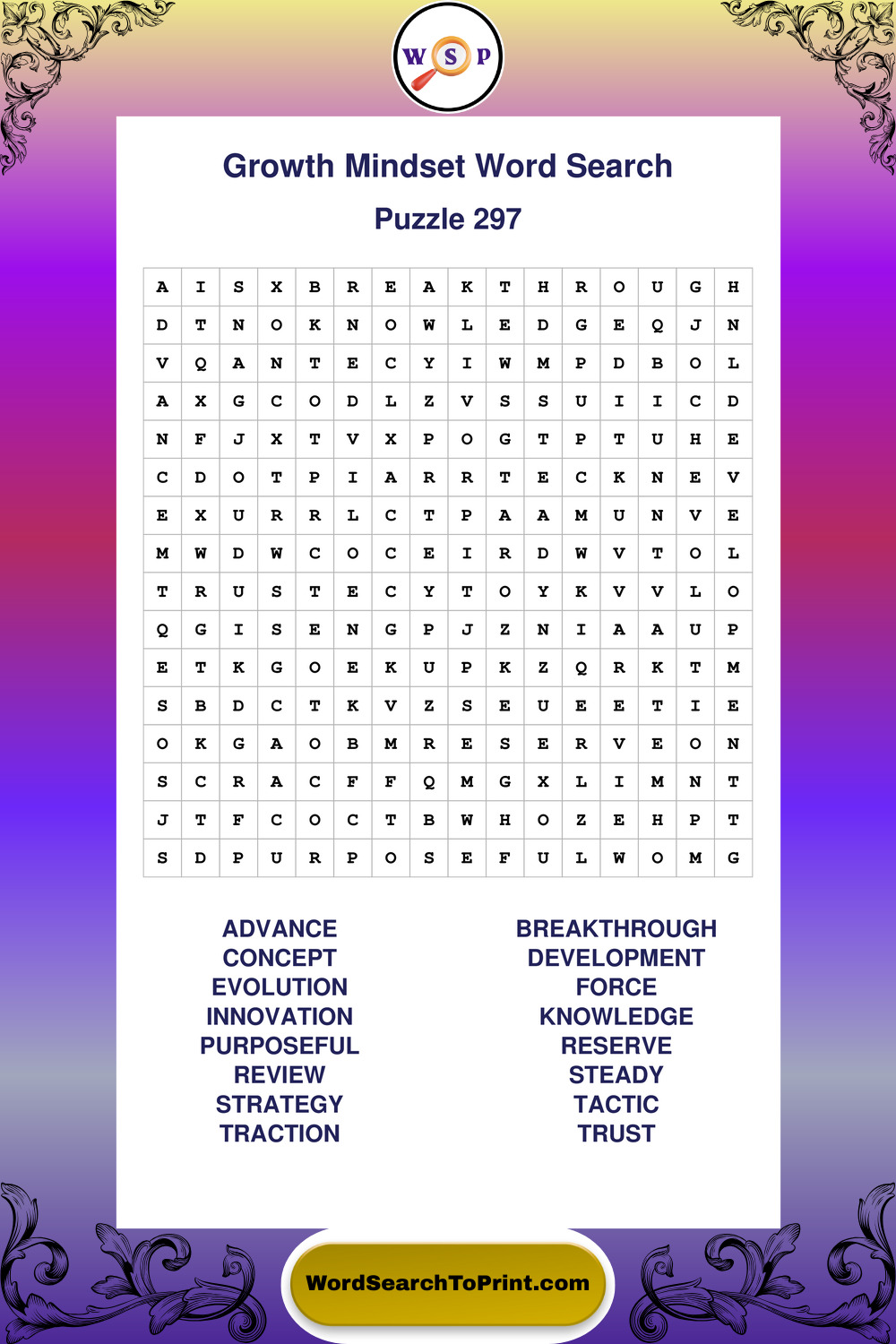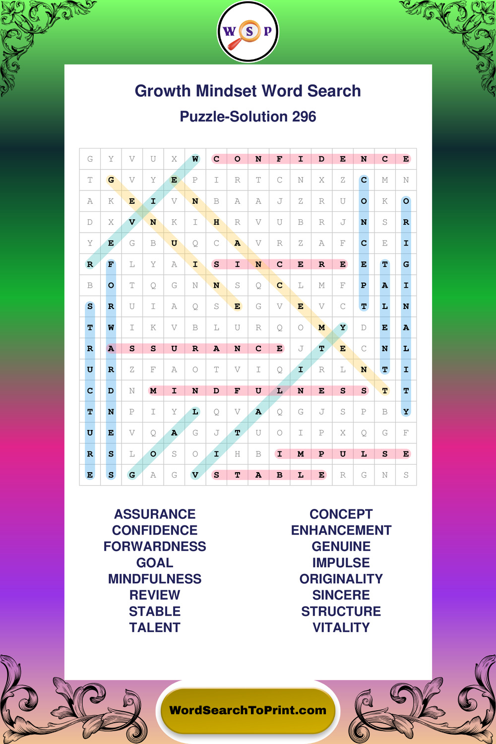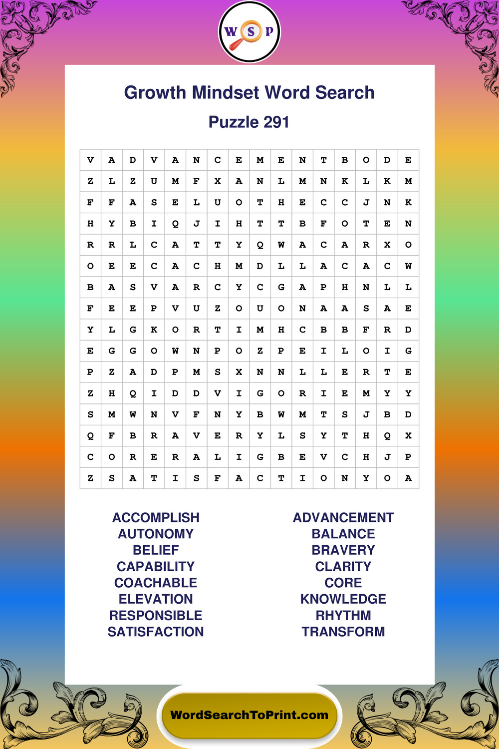 These puzzles focus on motivation, goal setting, life lessons, inspiration, and personal development concepts. These puzzles make it enjoyable to explore this theme while improving focus and reinforcing key terms. You may also enjoy our Wisdom word search puzzles and Life Lessons word search puzzles.