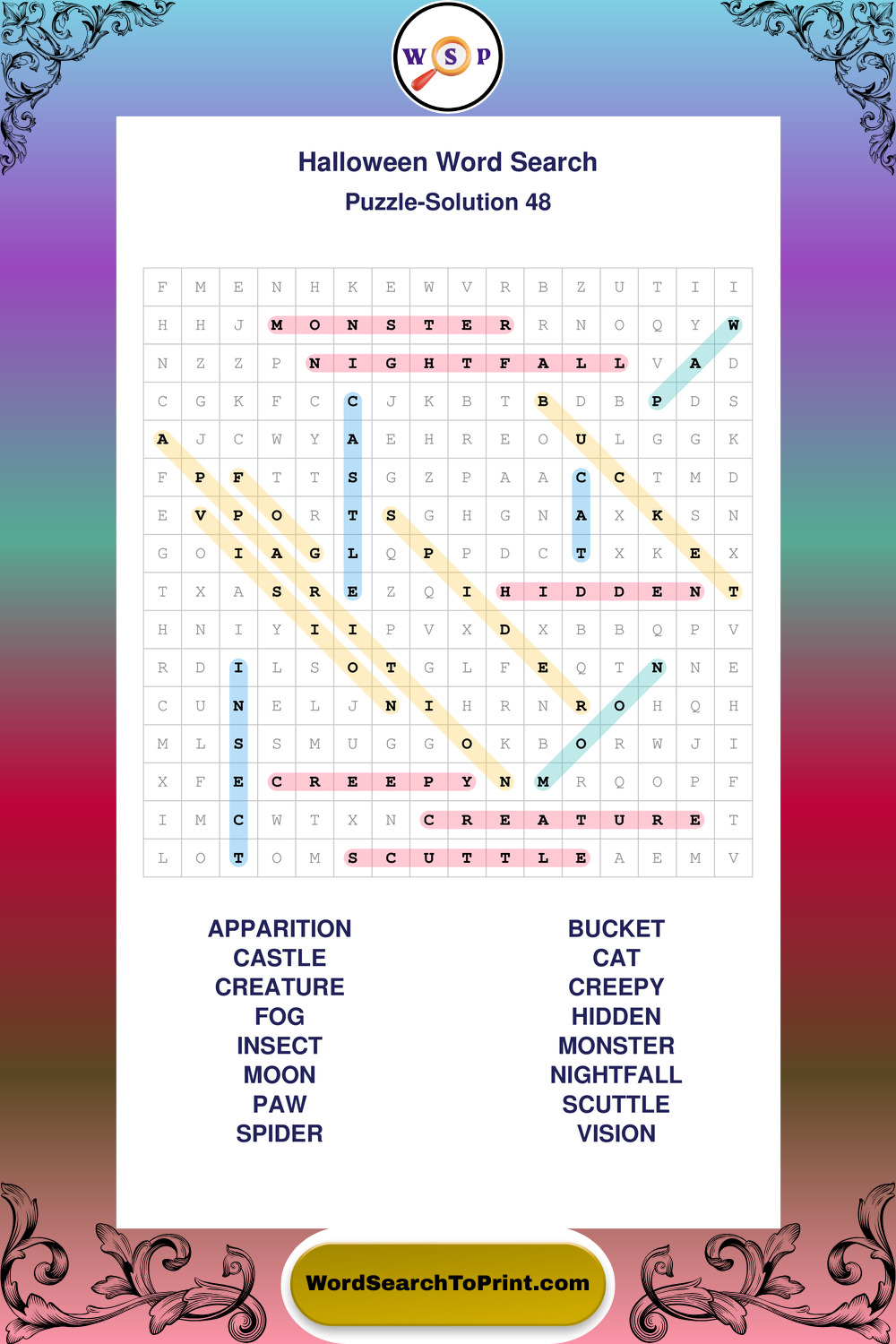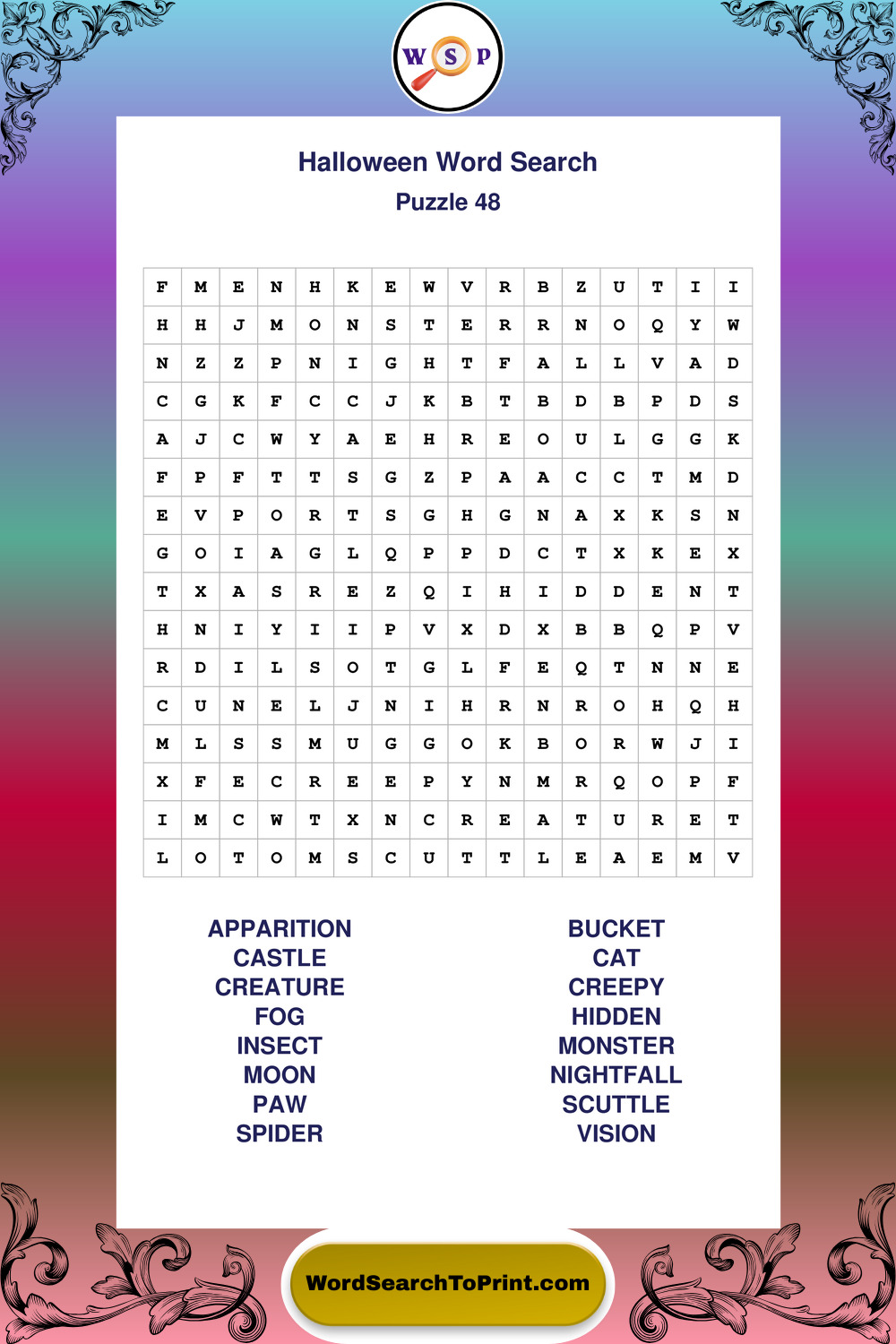Printable Halloween Wordsearch Puzzles