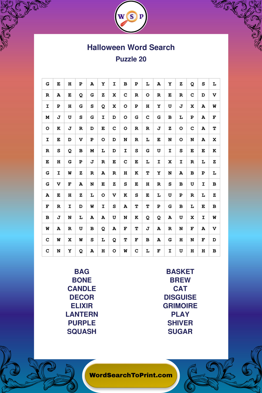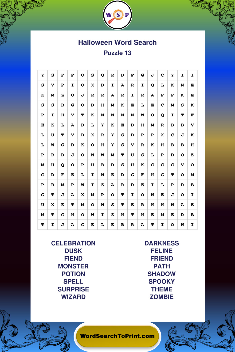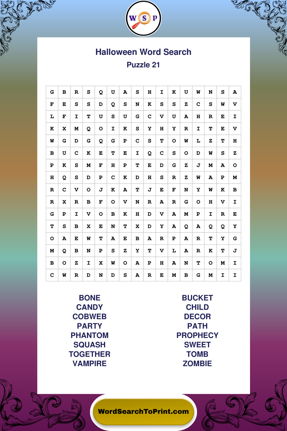 Browse large print Halloween wordsearches created to support clear vision, steady concentration, and relaxed solving.