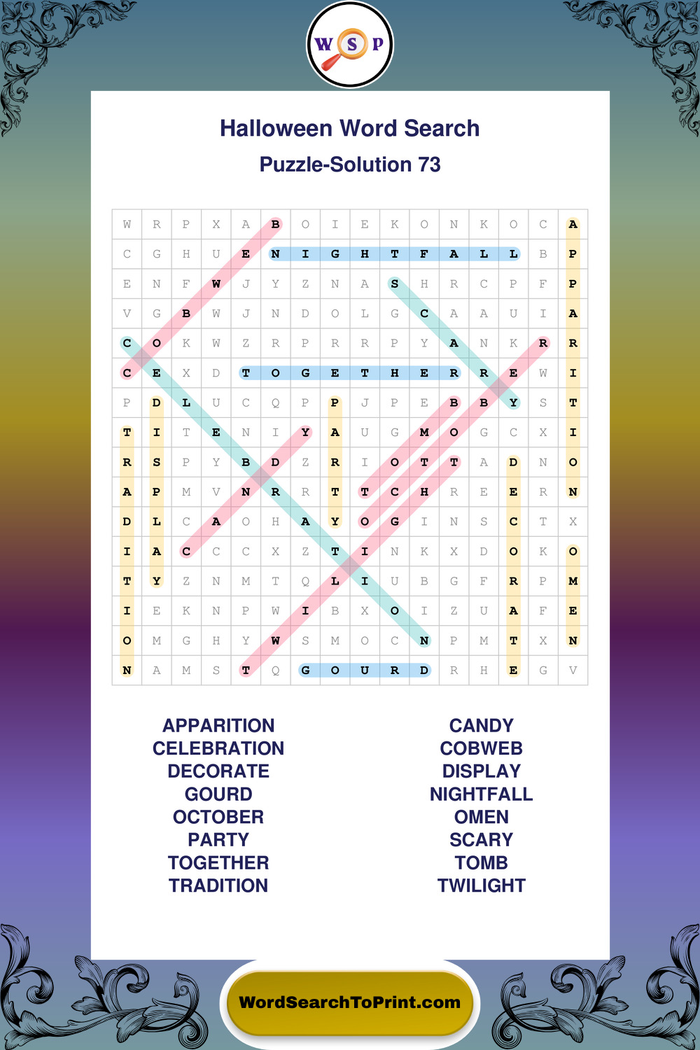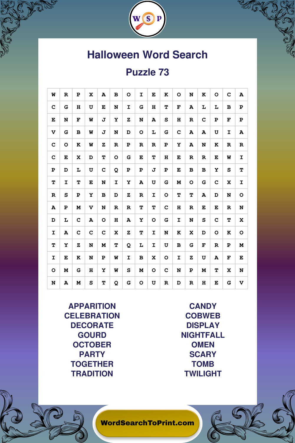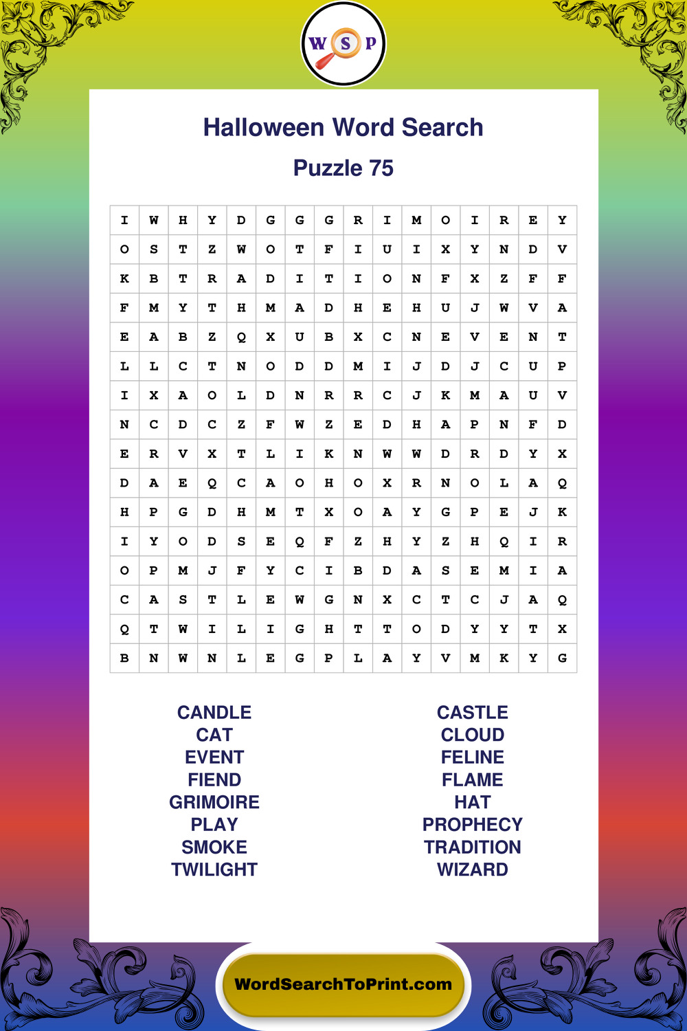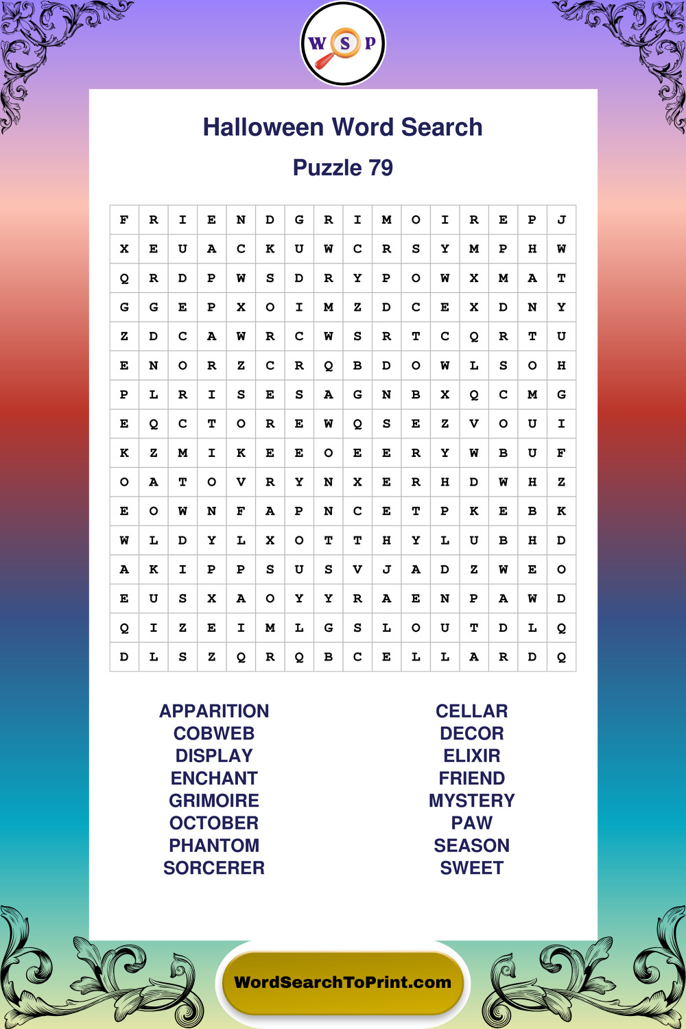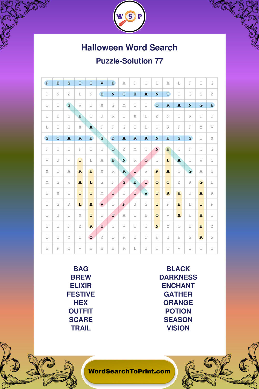 Browse large print Halloween wordsearches created to support clear vision, steady concentration, and relaxed solving.