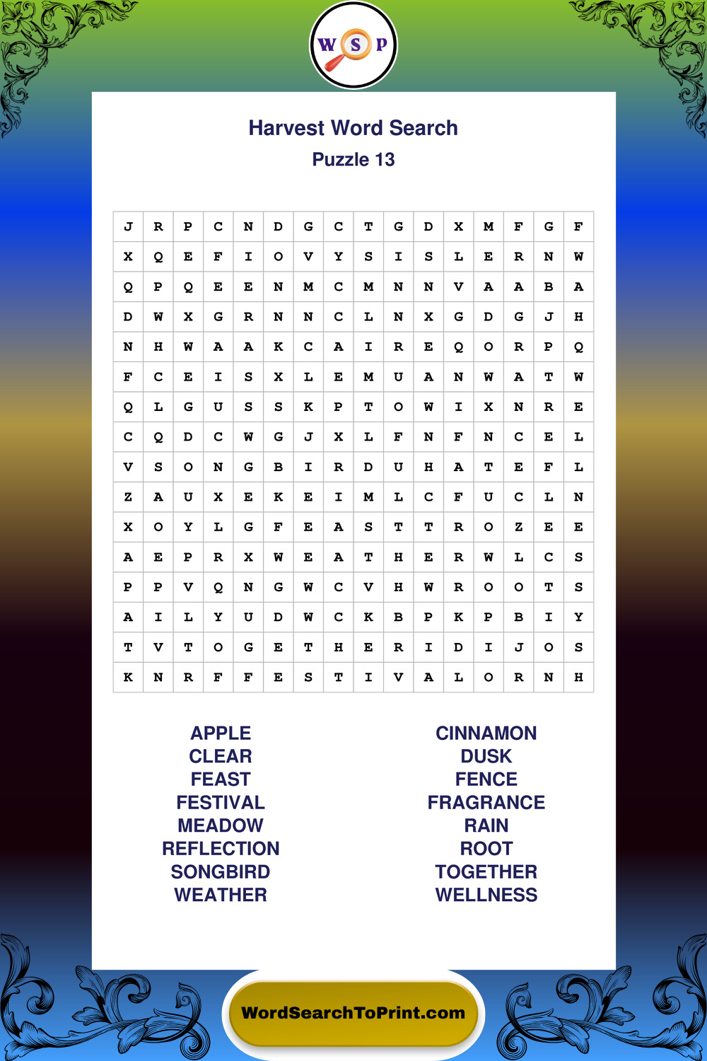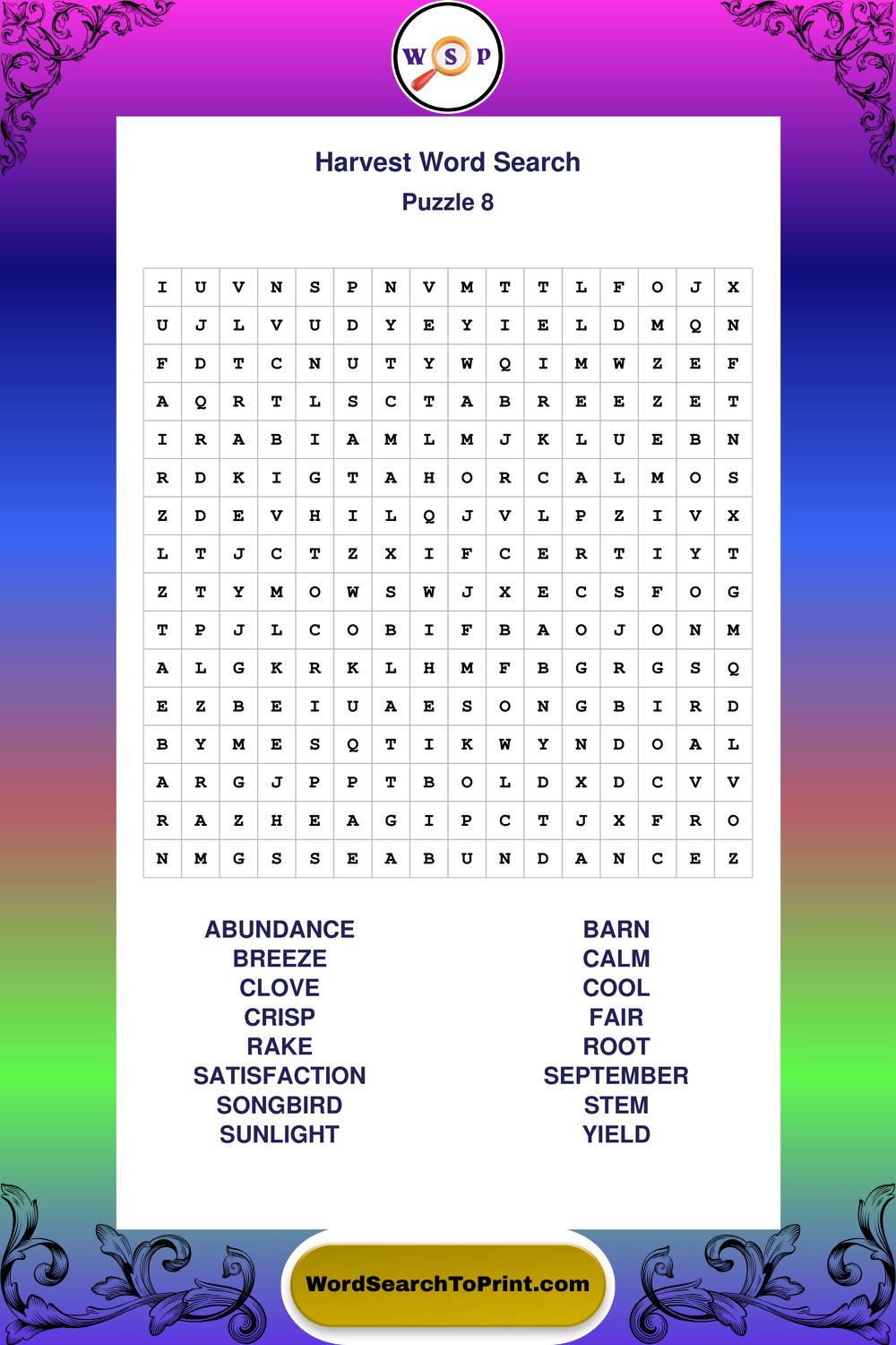 This collection of large print Harvest wordsearches is designed for smooth reading, gentle focus, and enjoyable puzzle time.