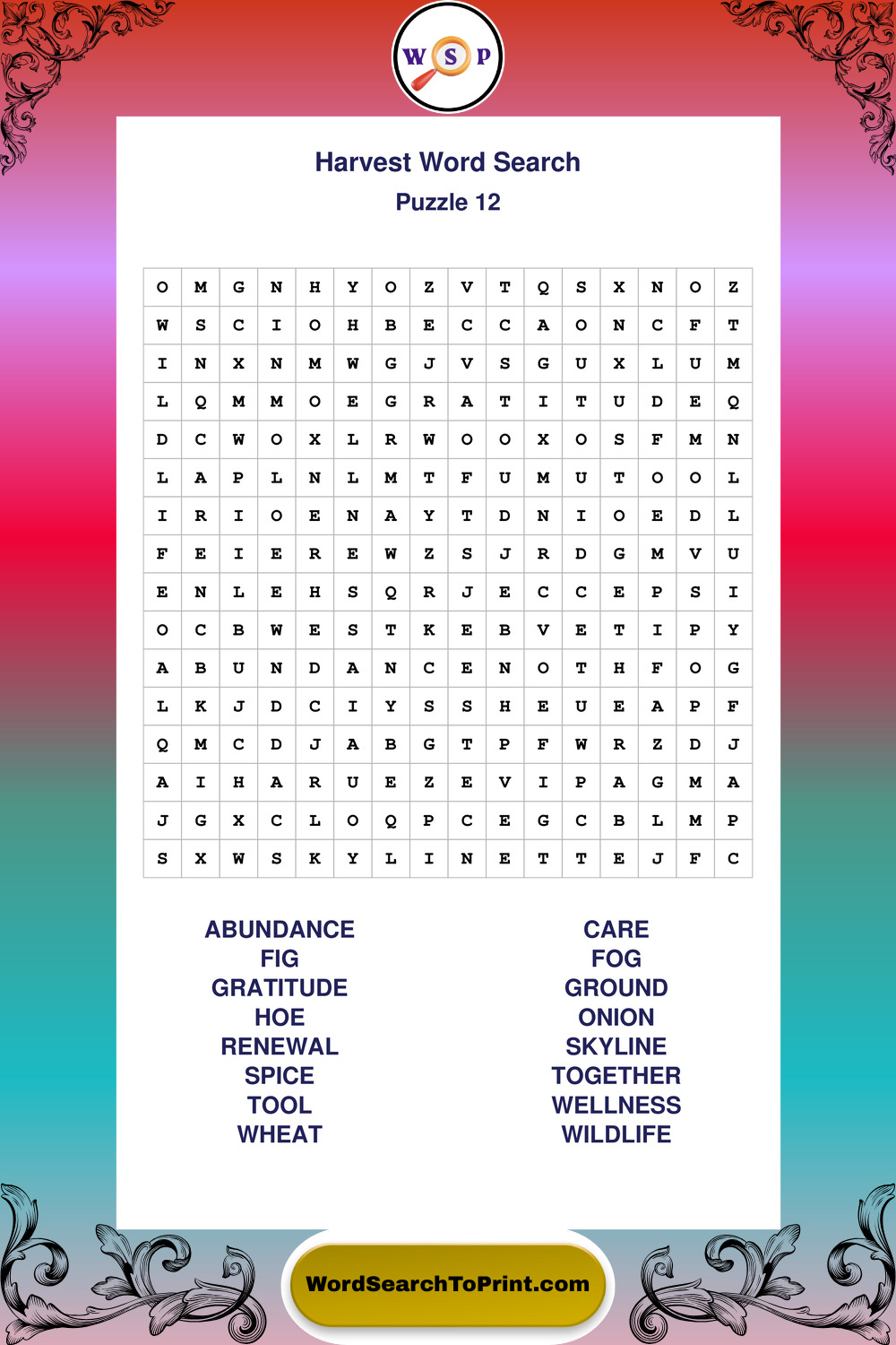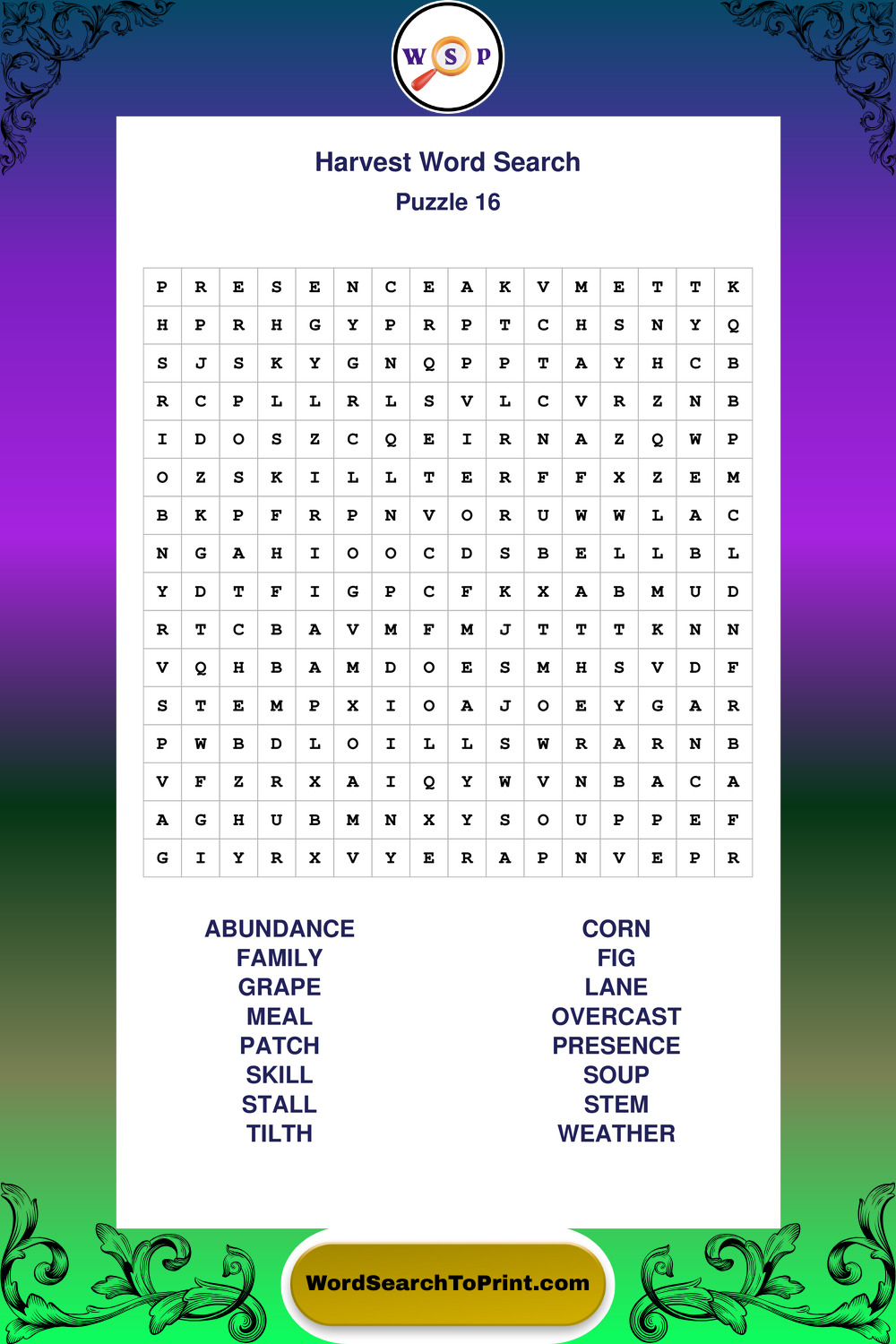 Harvest Wordsearches