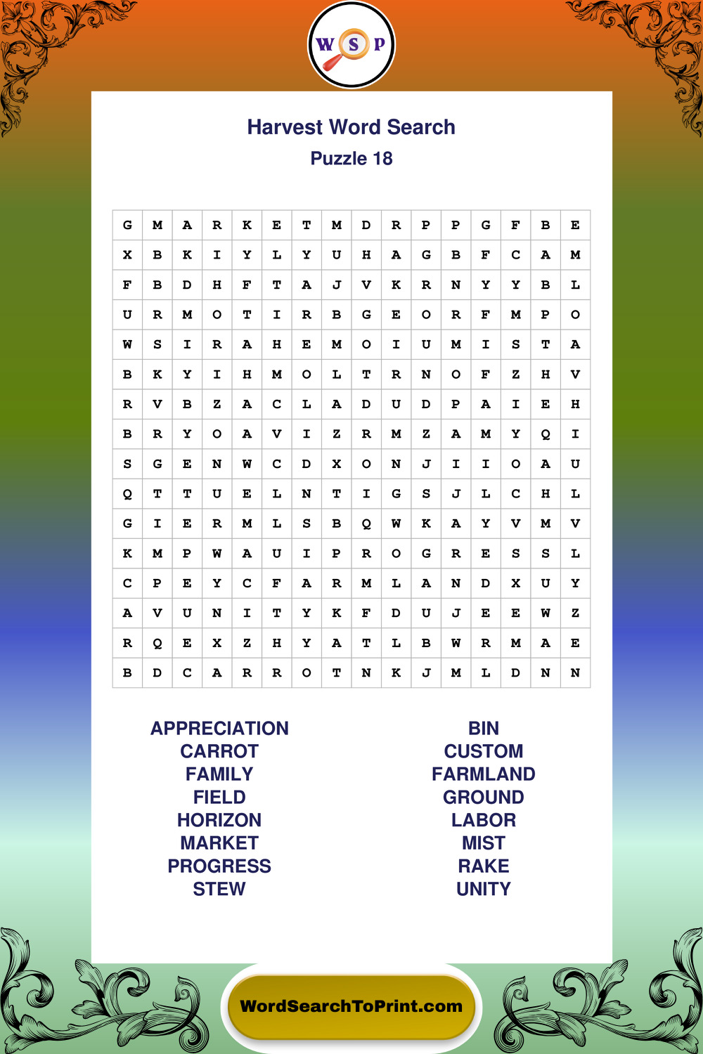 Printable Harvest Wordsearch Puzzles