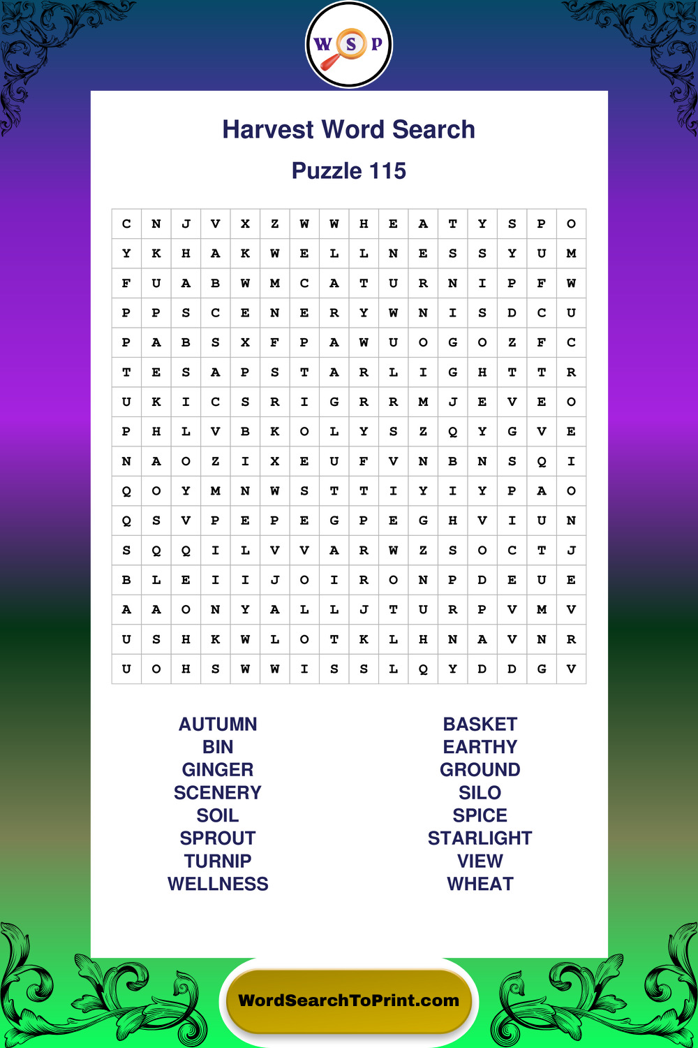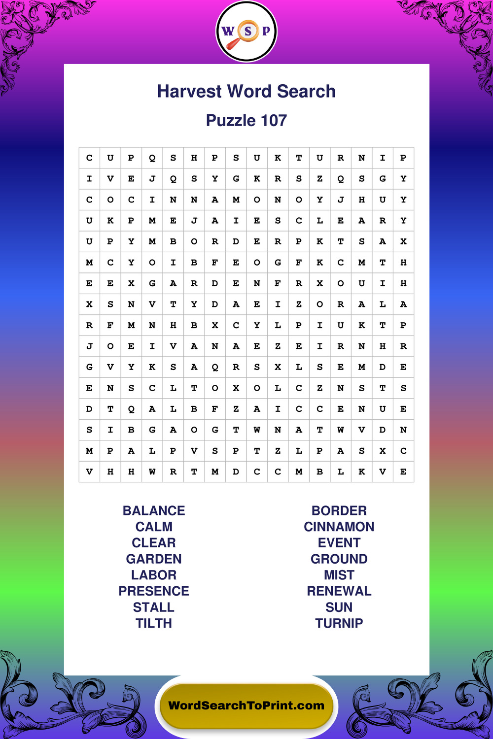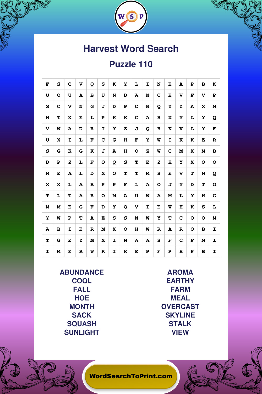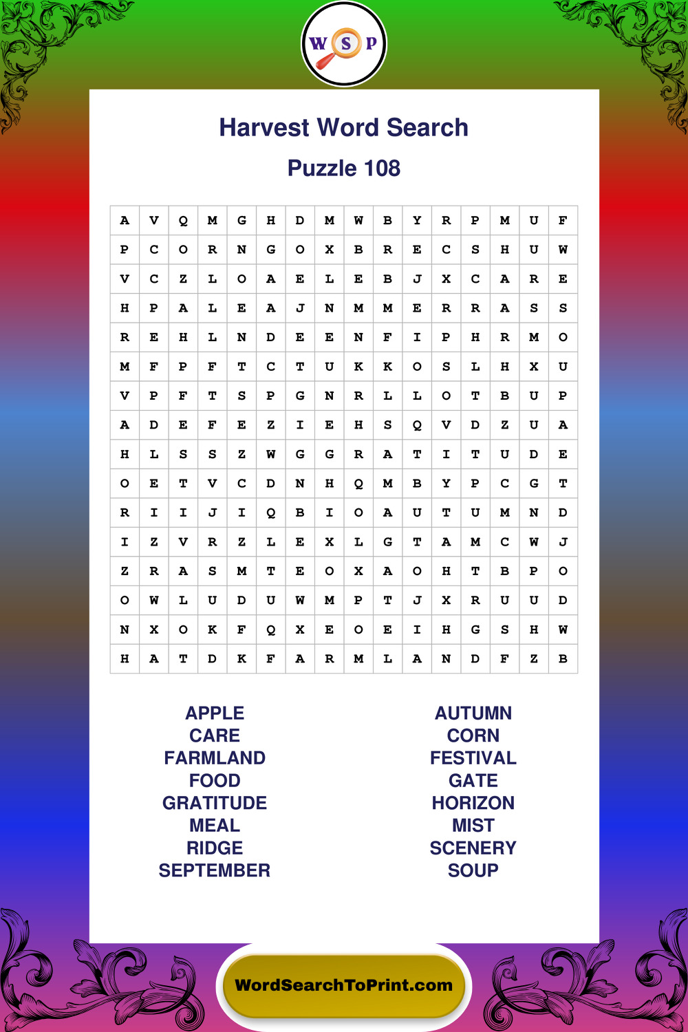 This collection of large print Harvest wordsearches is designed for smooth reading, gentle focus, and enjoyable puzzle time.