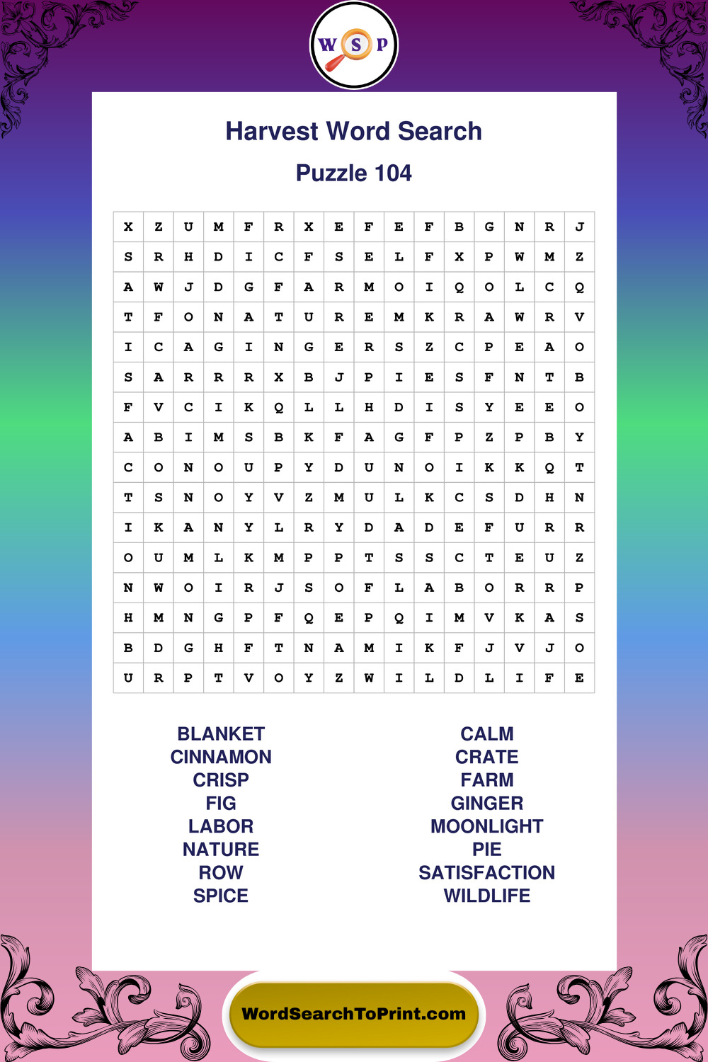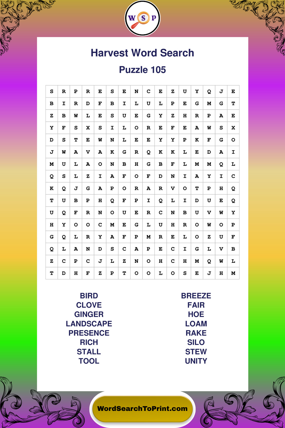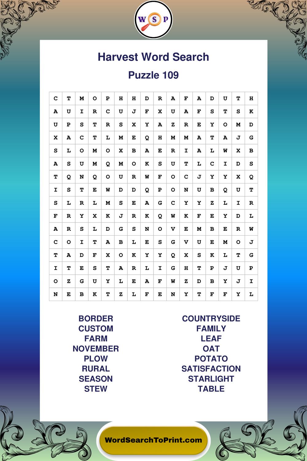 This collection of large print Harvest wordsearches is designed for smooth reading, gentle focus, and enjoyable puzzle time.