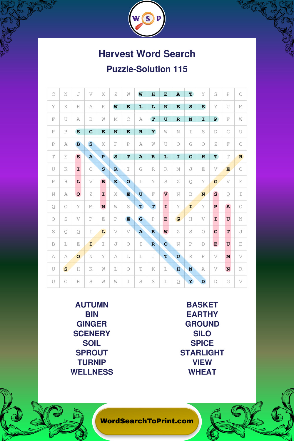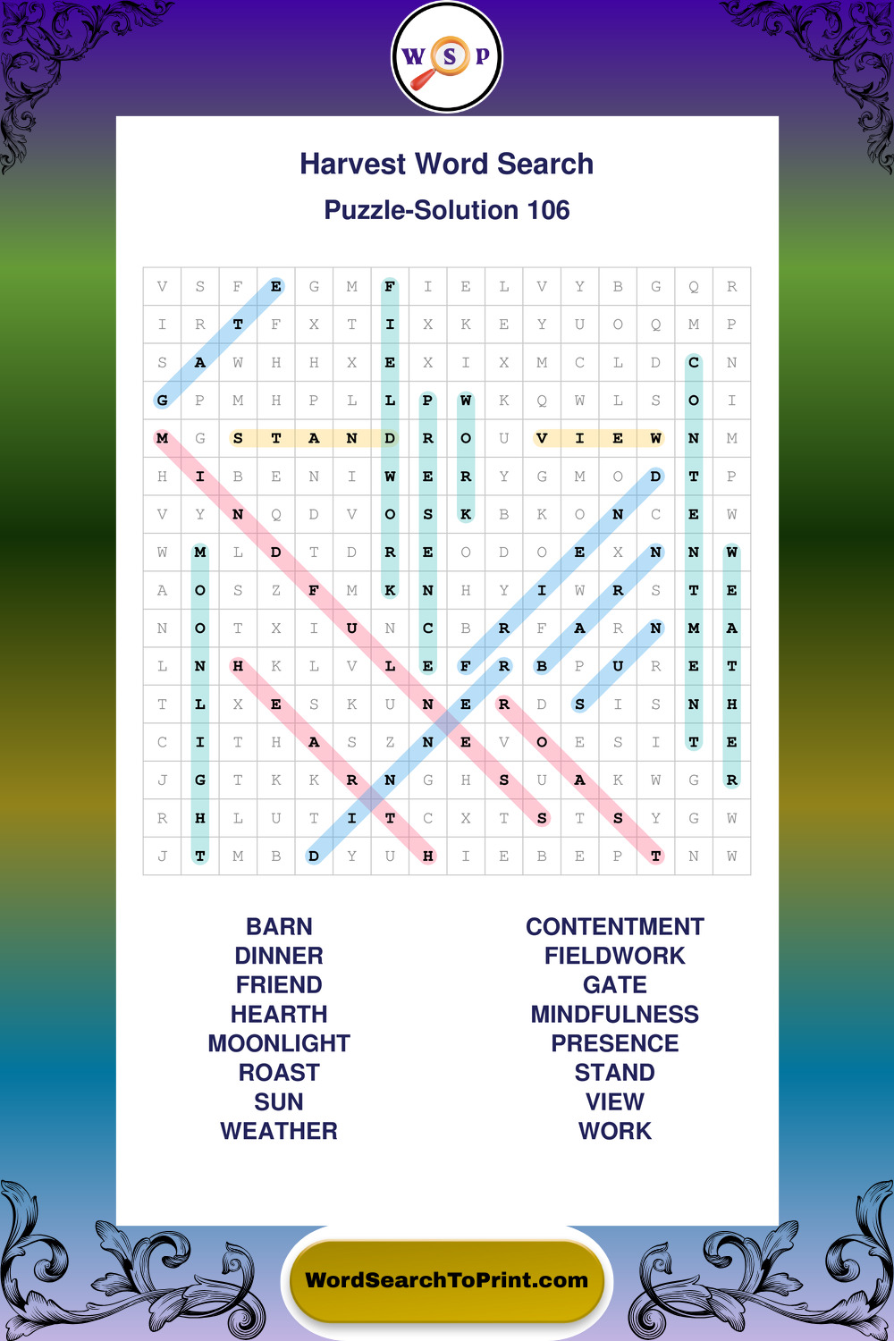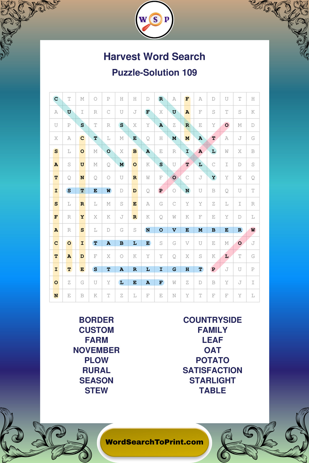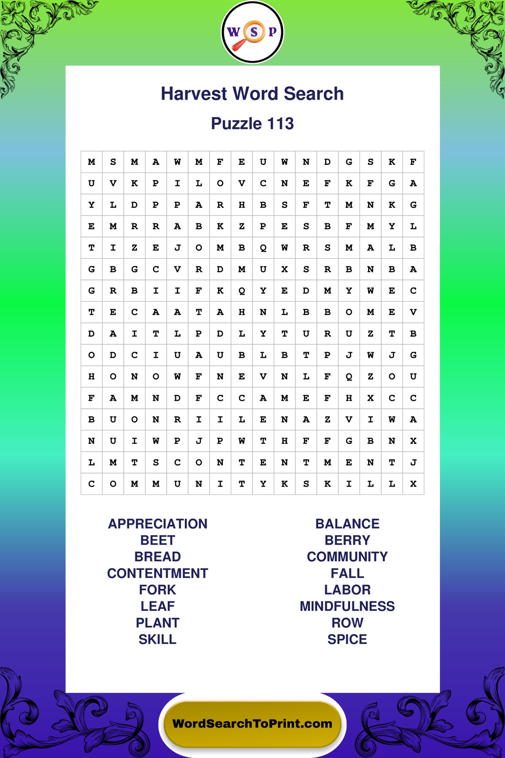 This collection of large print Harvest wordsearches is designed for smooth reading, gentle focus, and enjoyable puzzle time.
