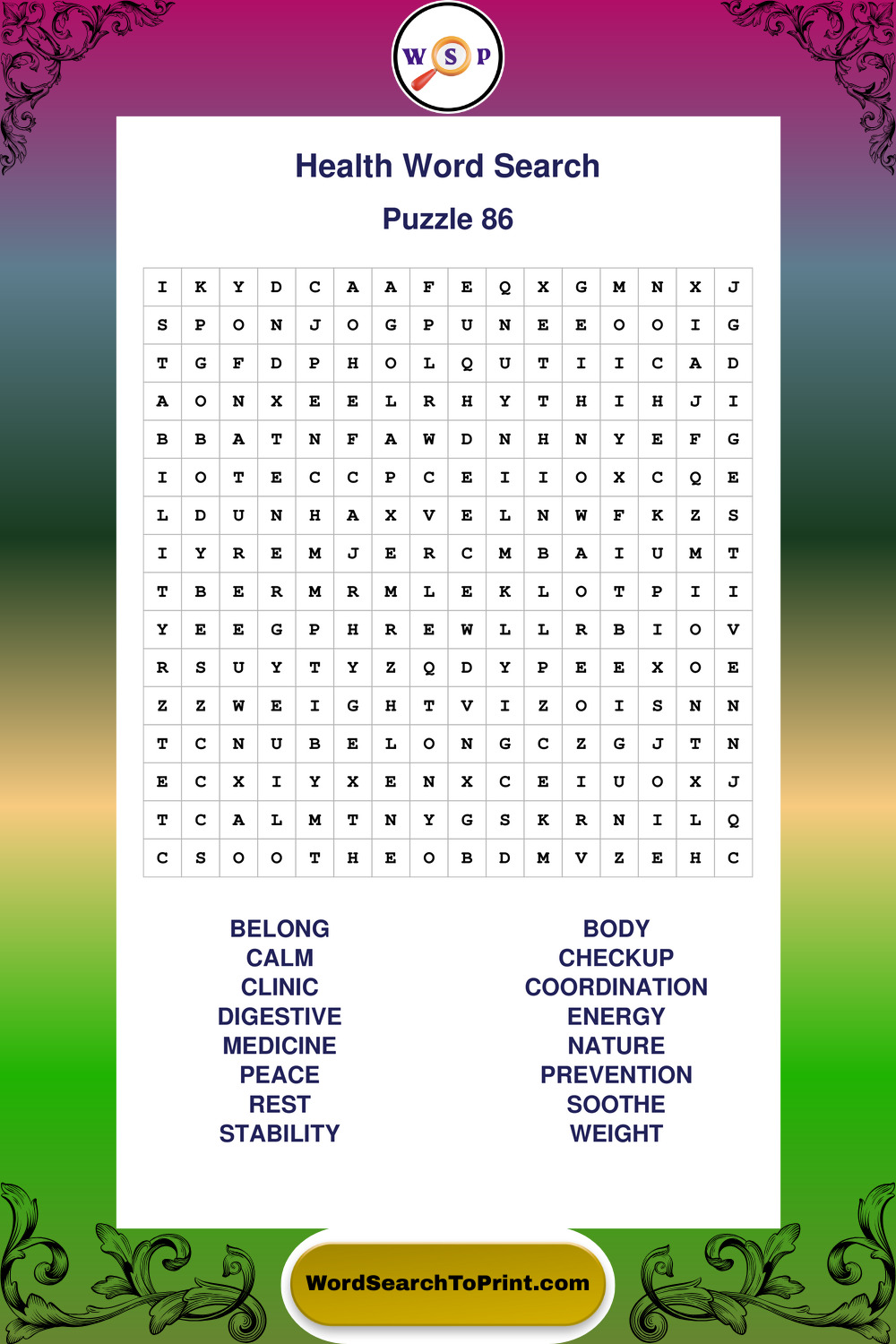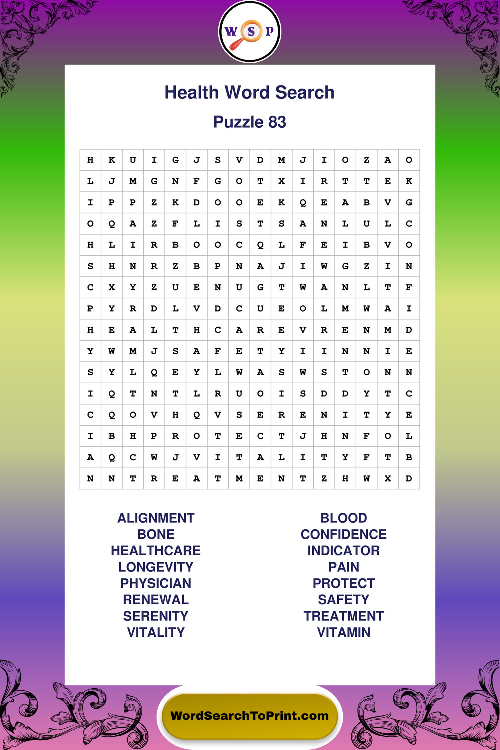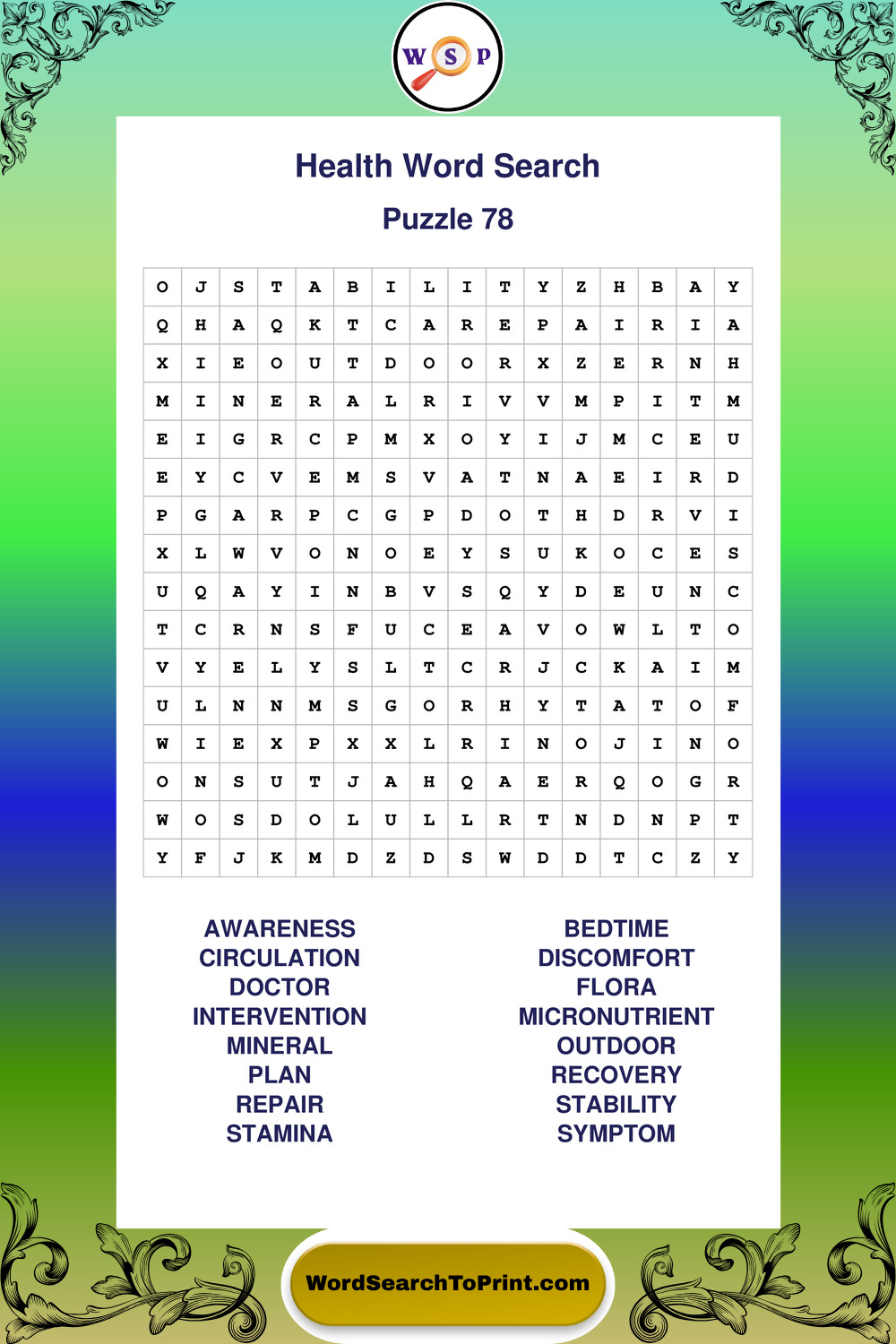 Printable Health Wordsearch Puzzles