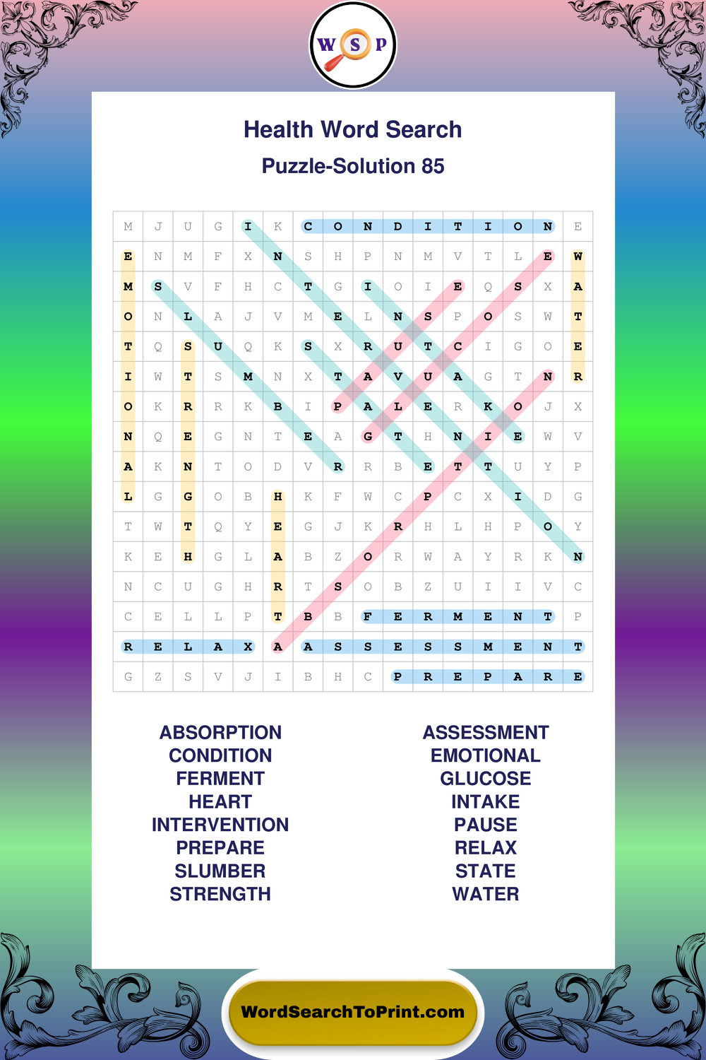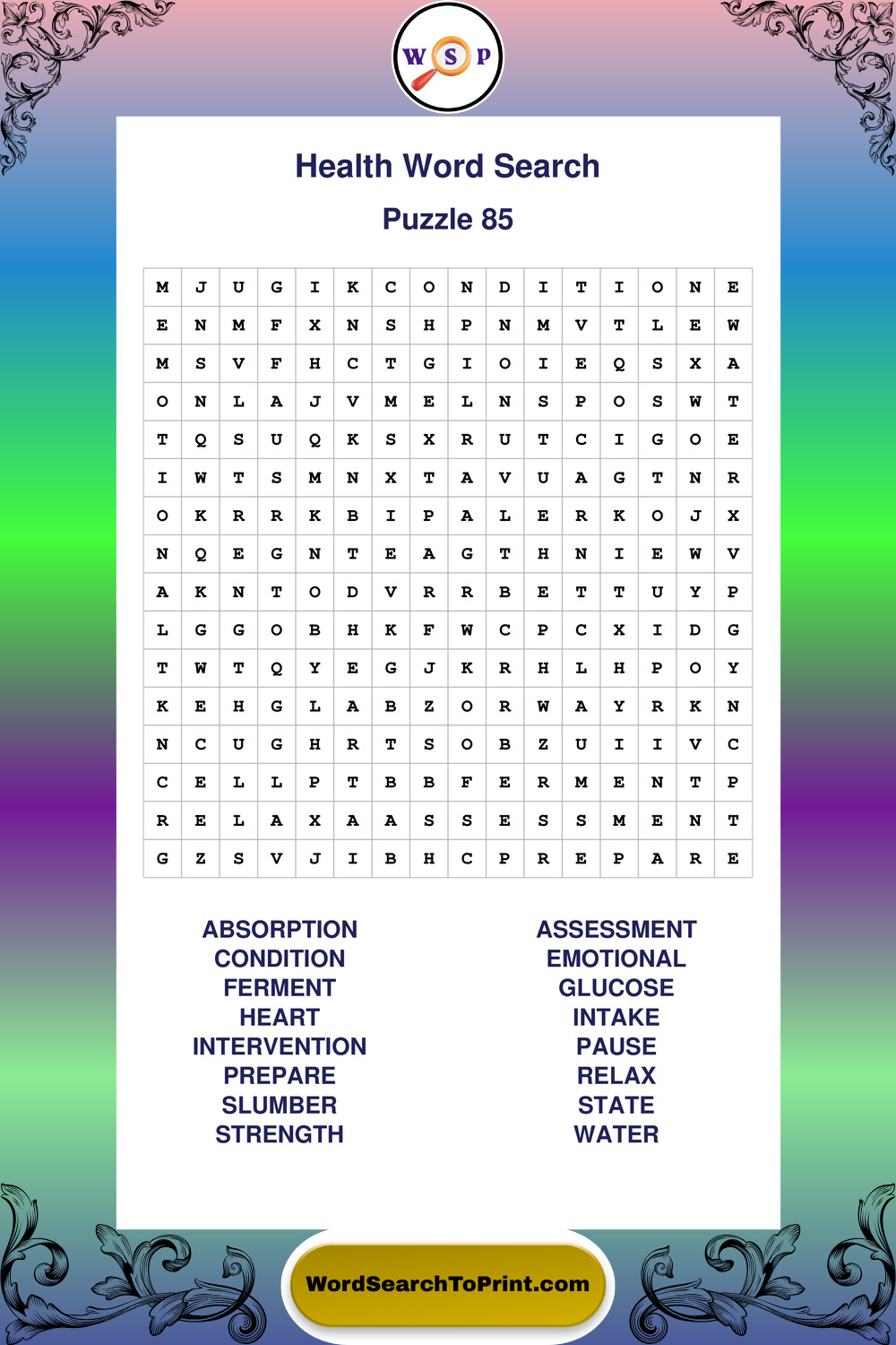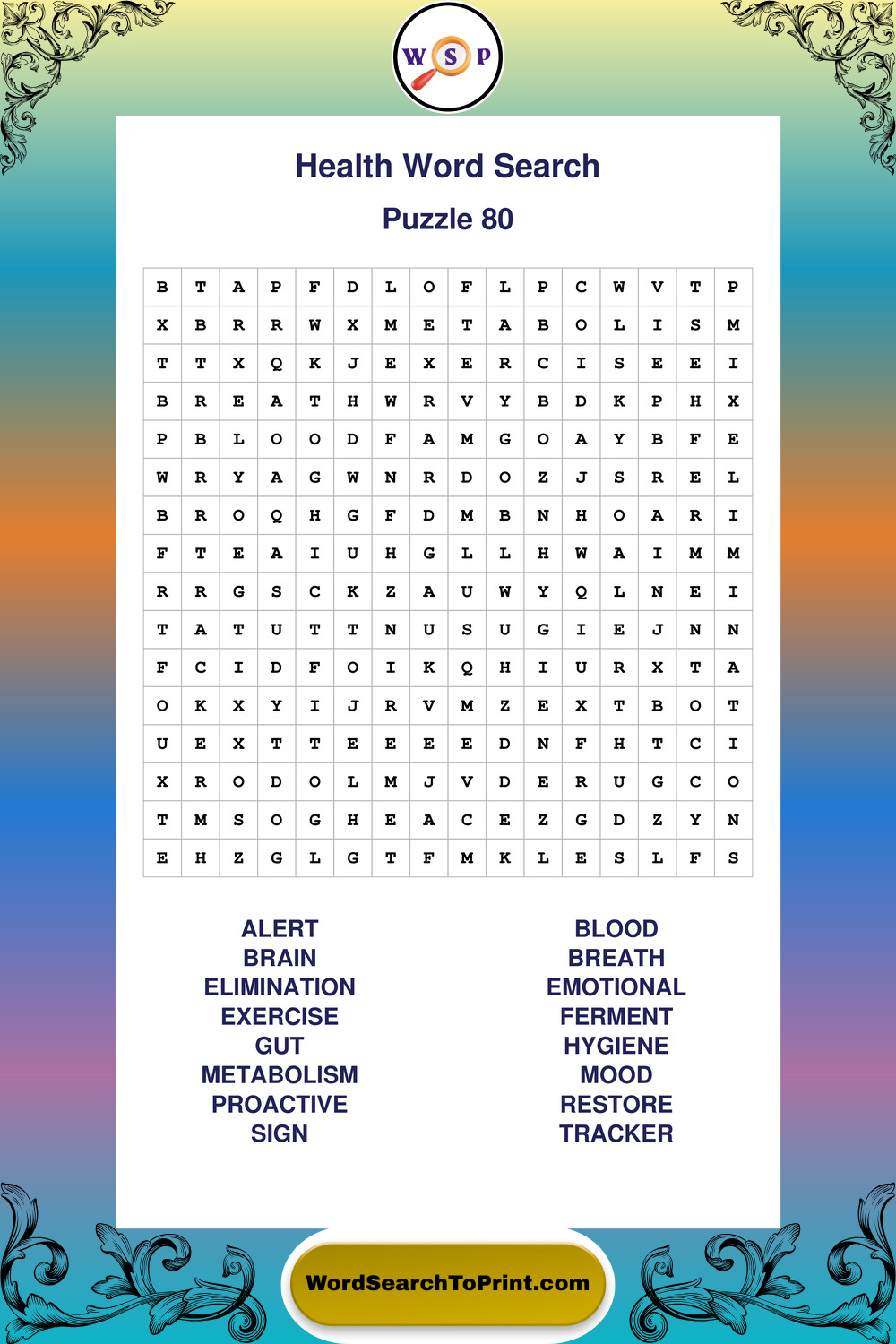 Printable Health Wordsearch Puzzles