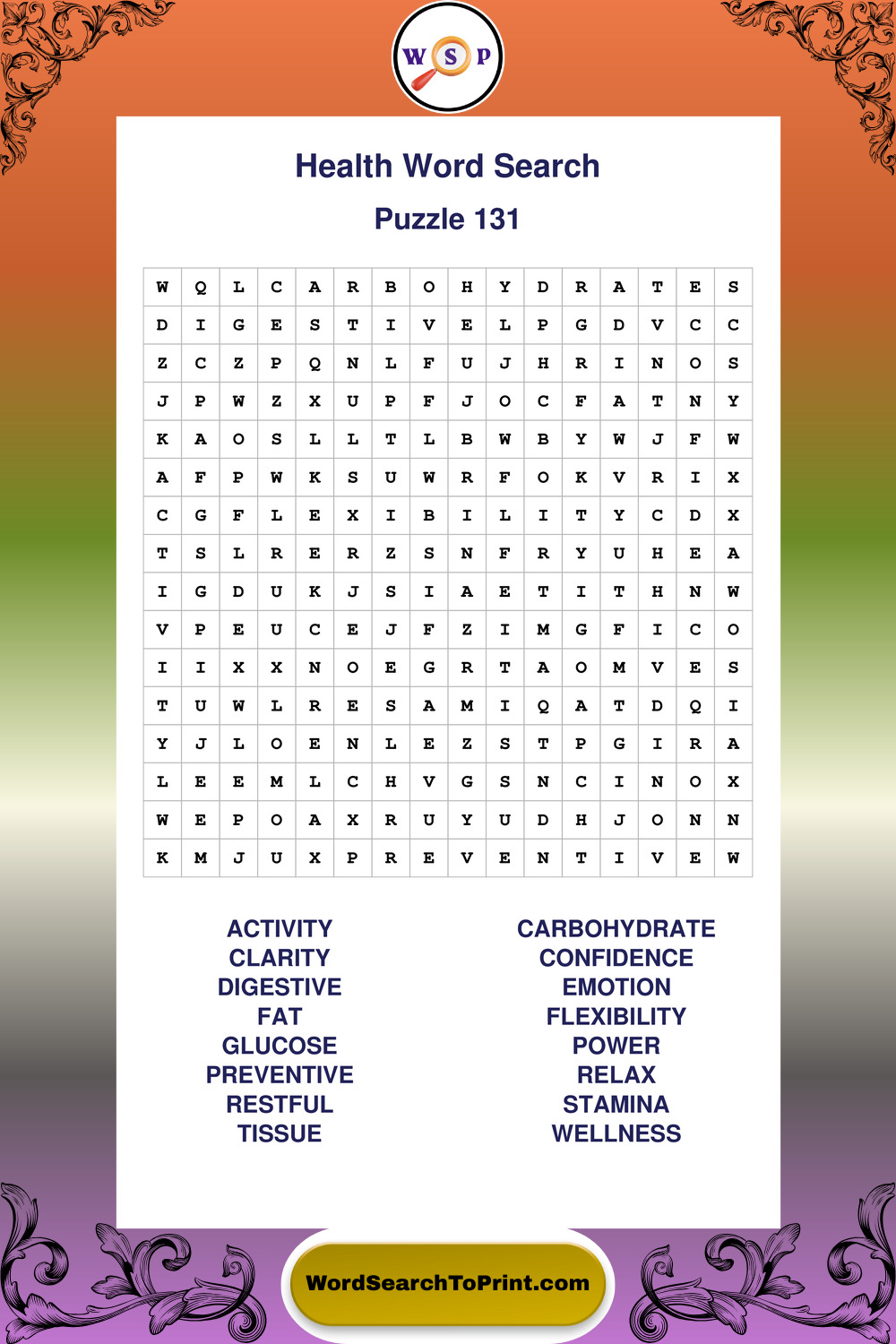 These printable large print Health wordsearches offer a comfortable way to stay mentally active without pressure.