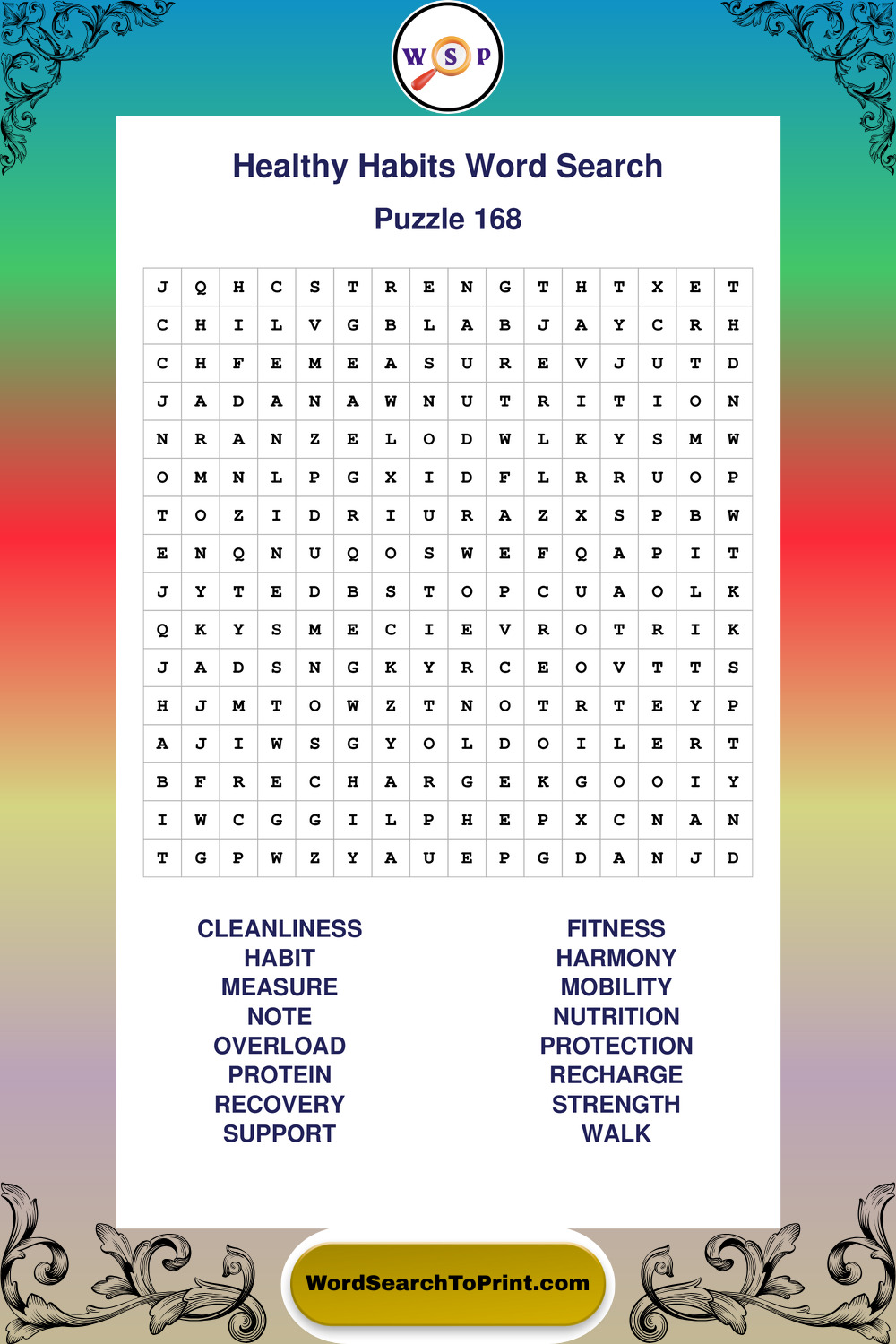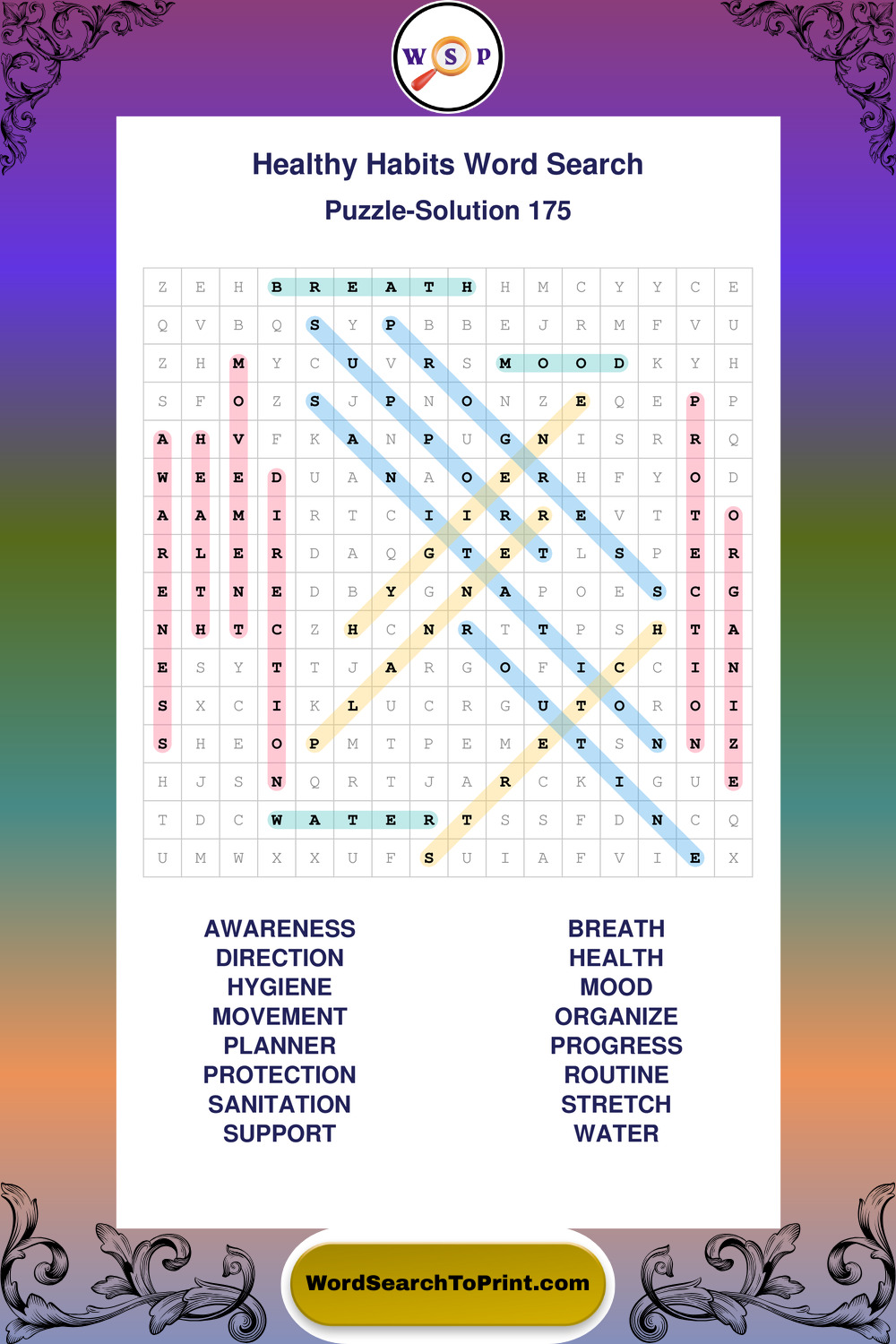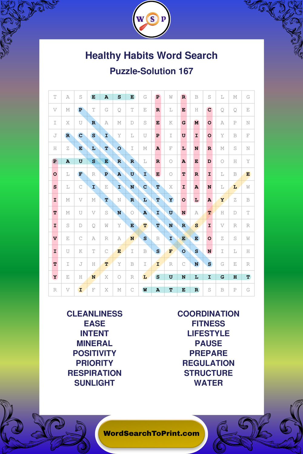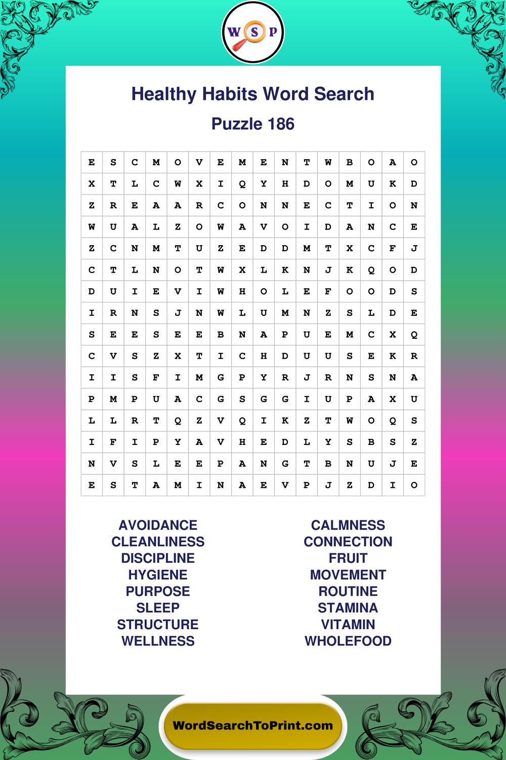 Printable Healthy Habits Wordsearch Puzzles