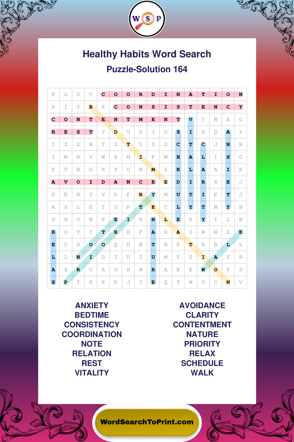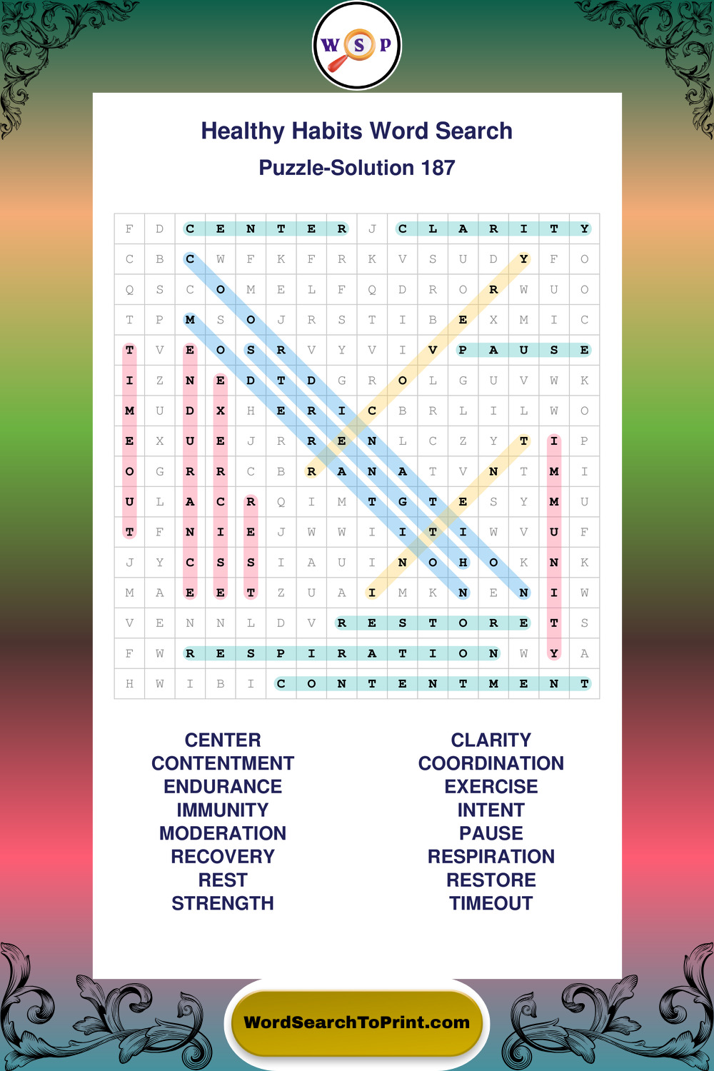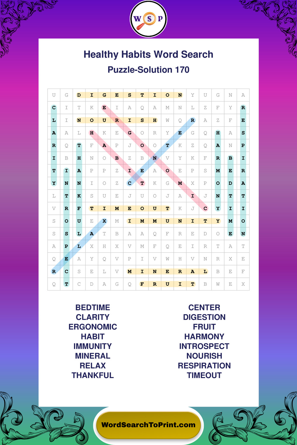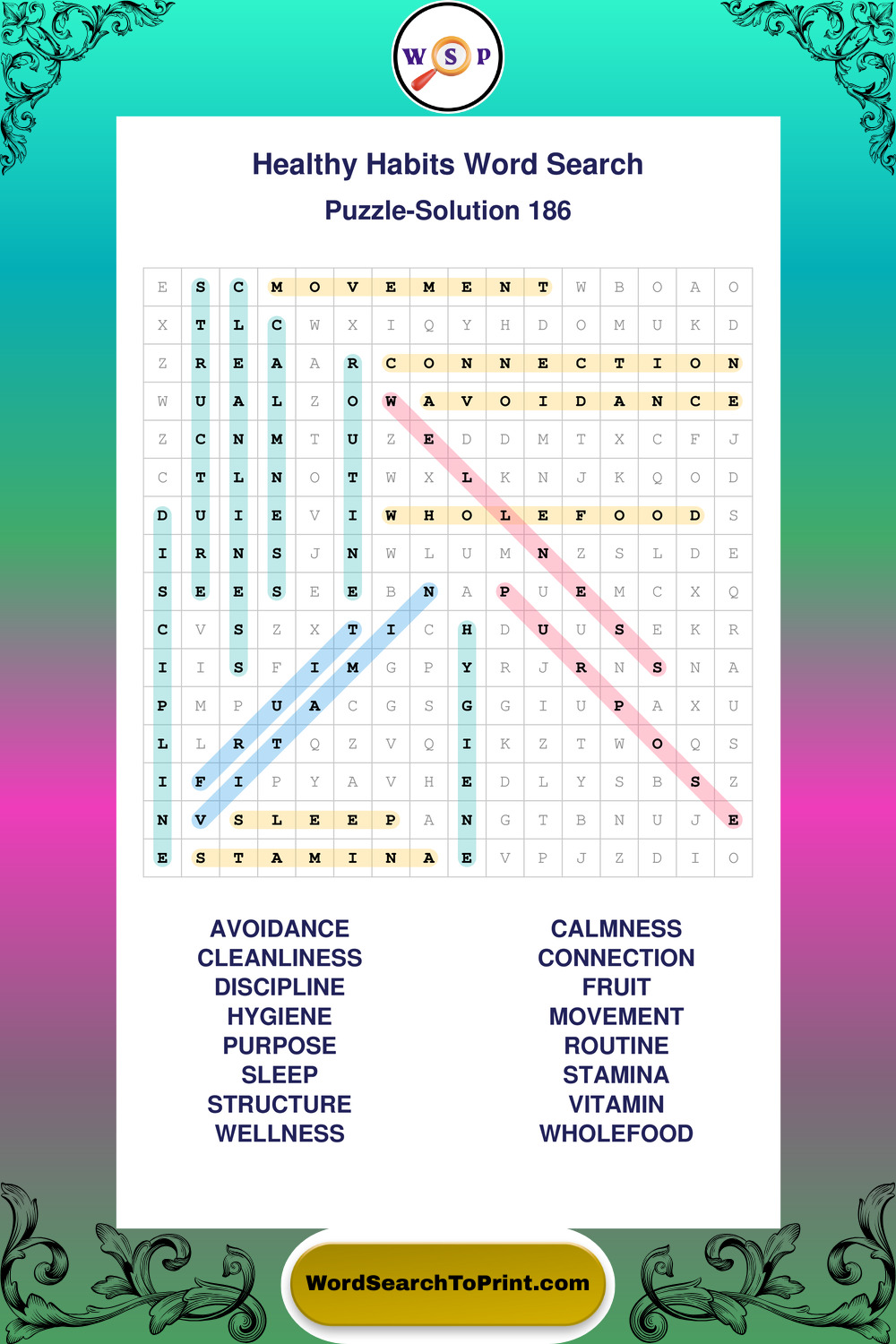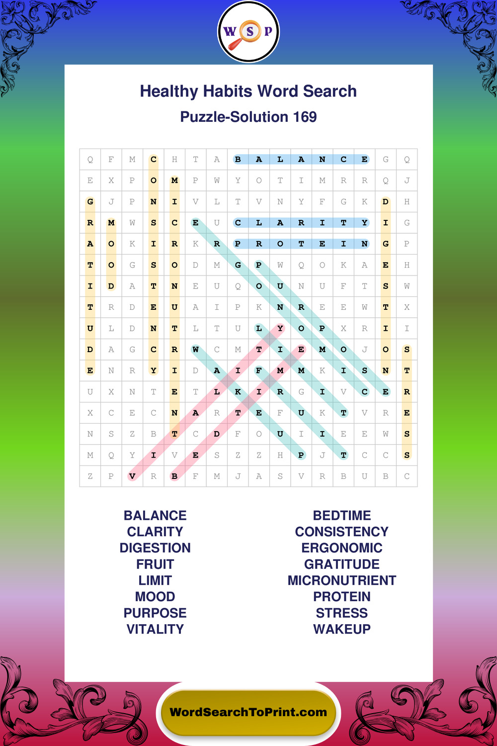 Printable Healthy Habits Wordsearch Puzzles