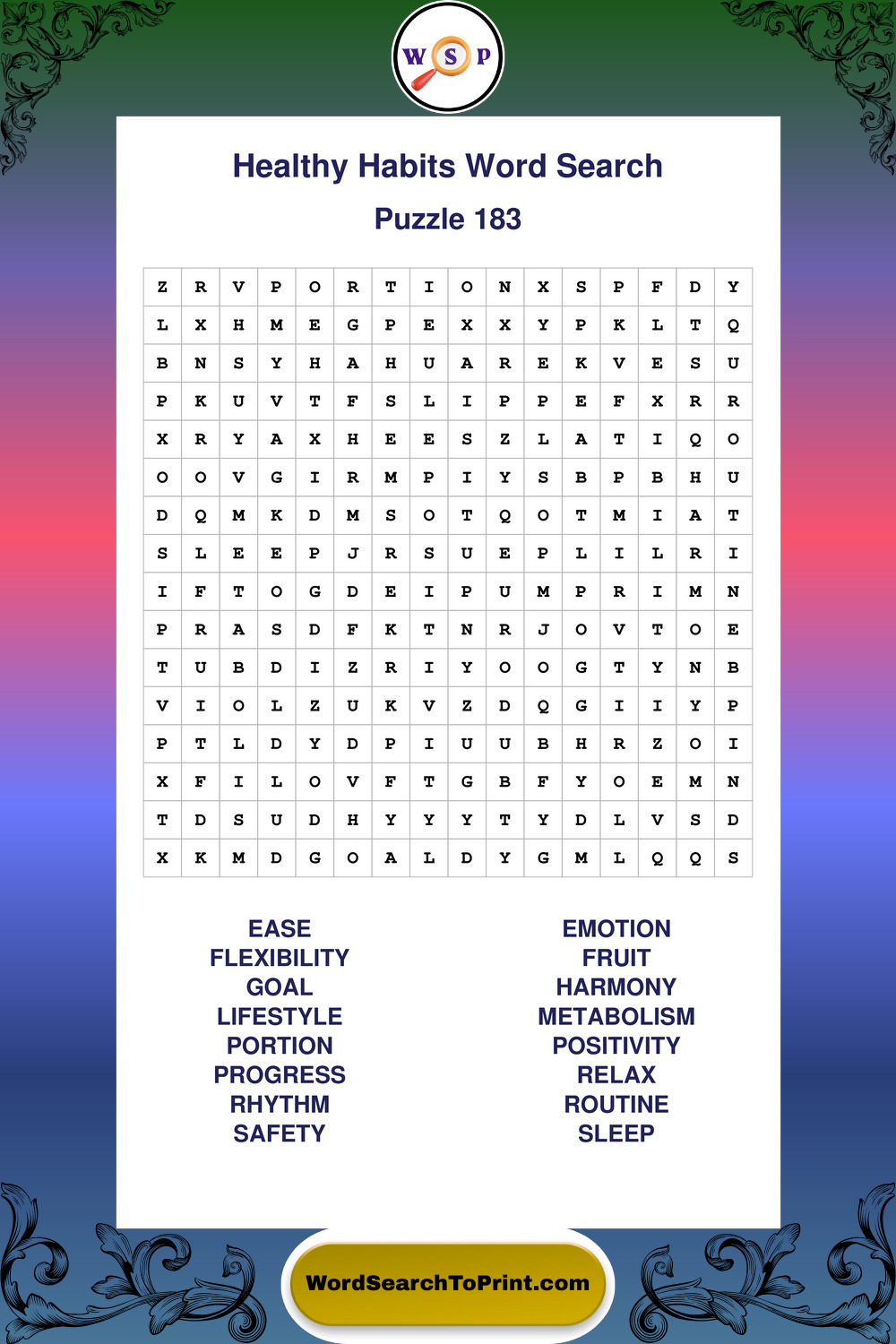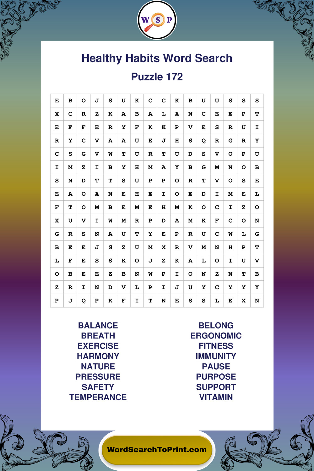 Explore a growing collection of large print Healthy Habits wordsearches created for comfortable, stress-free solving at your own pace.