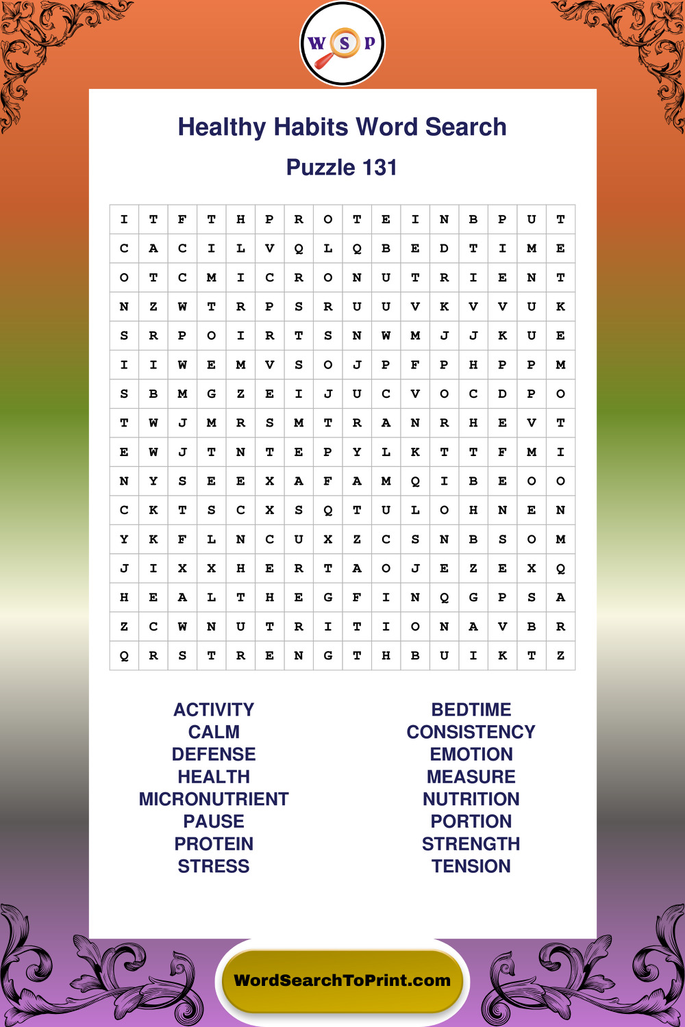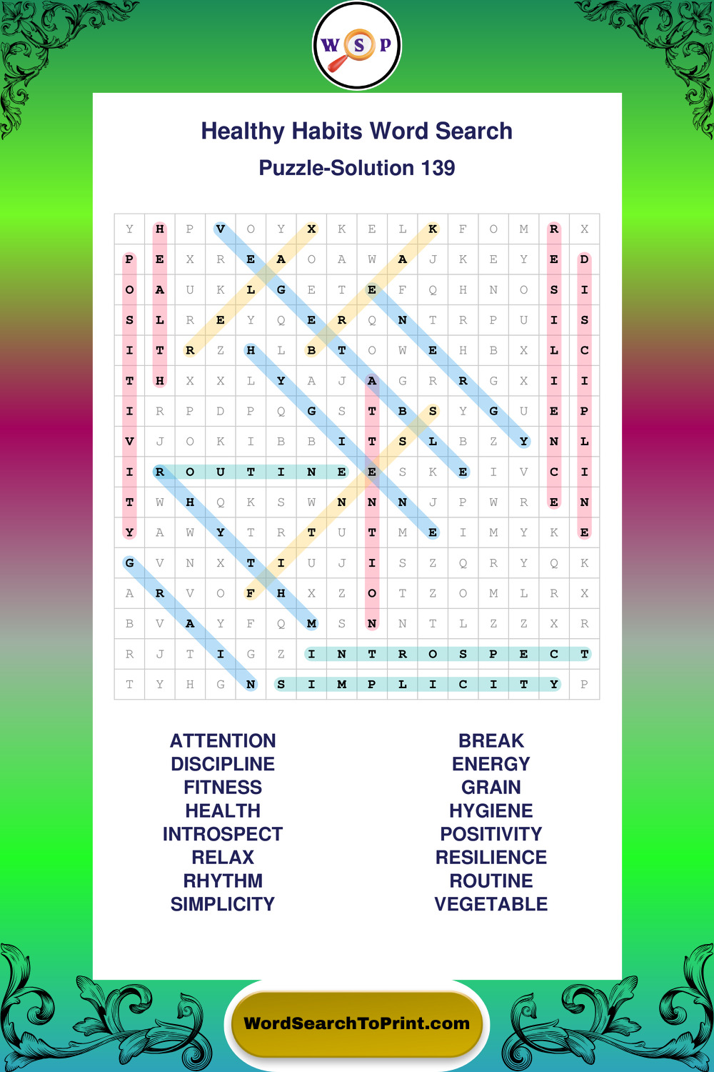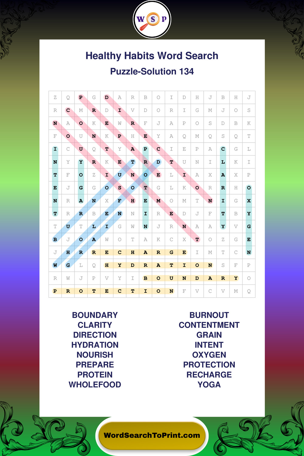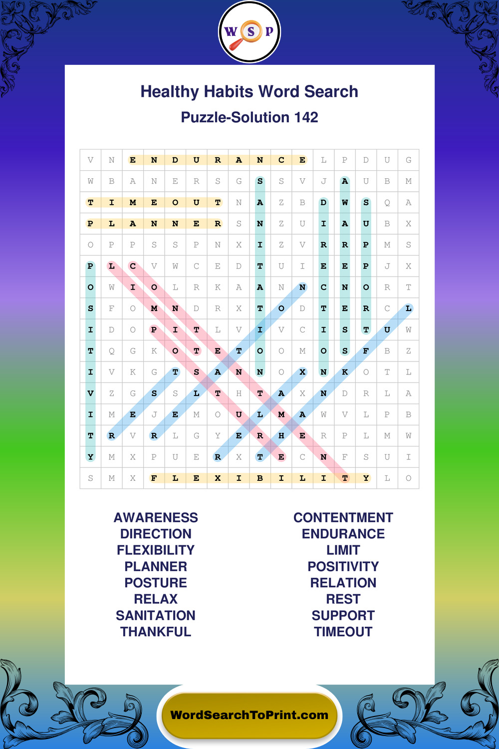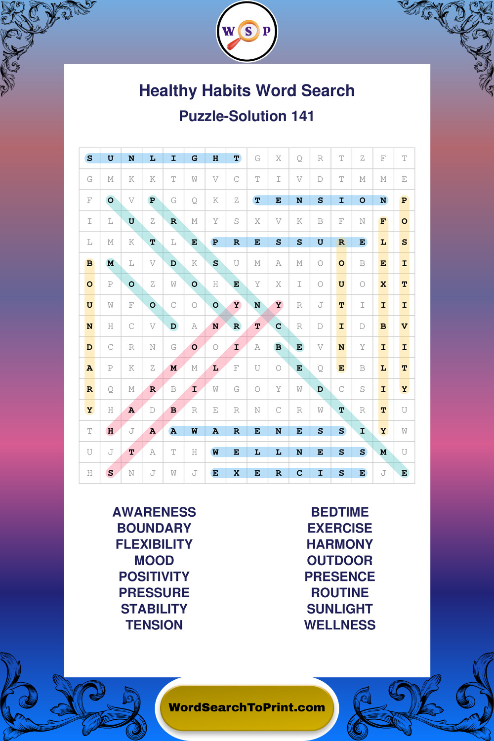 Printable Healthy Habits Wordsearch Puzzles