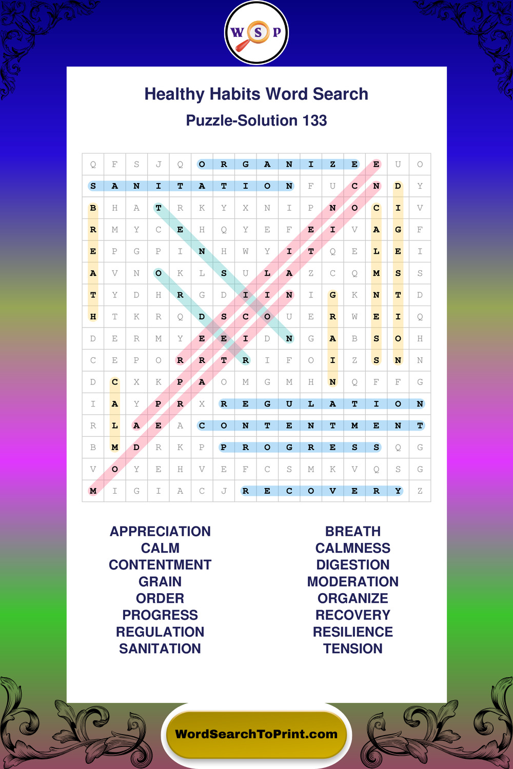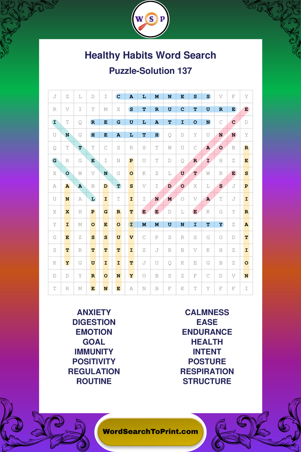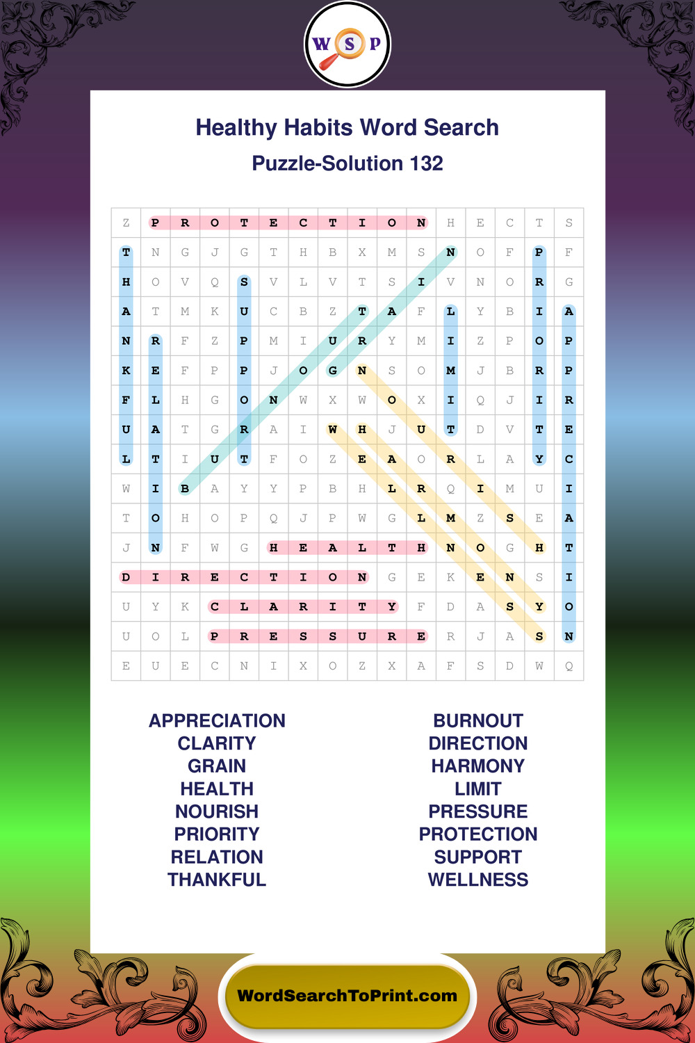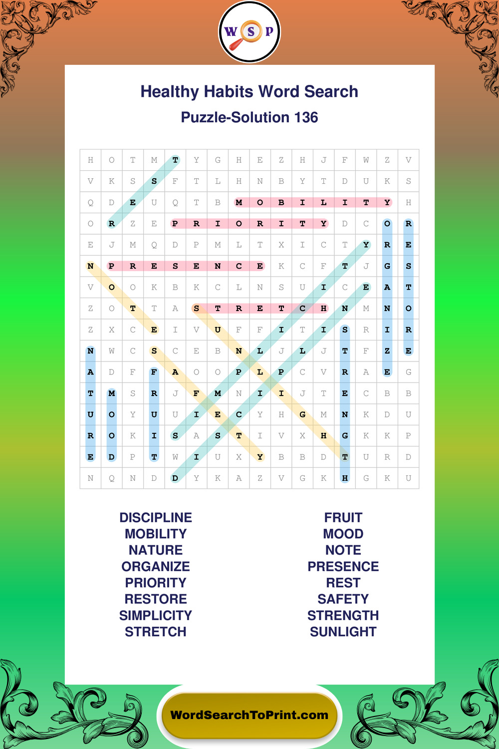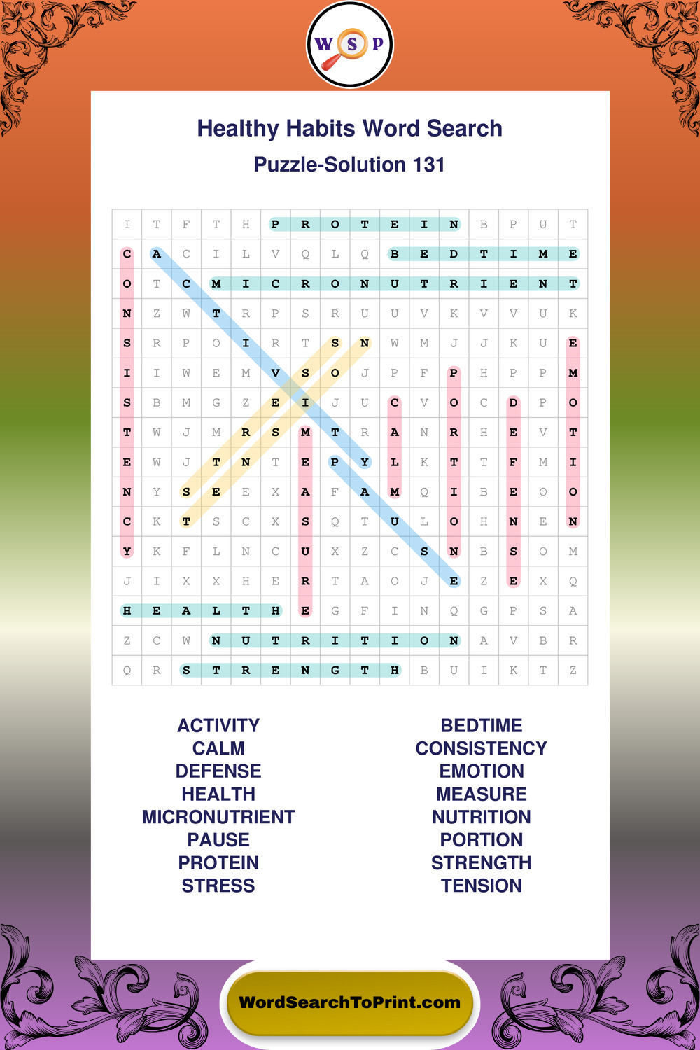 Printable Healthy Habits Wordsearch Puzzles