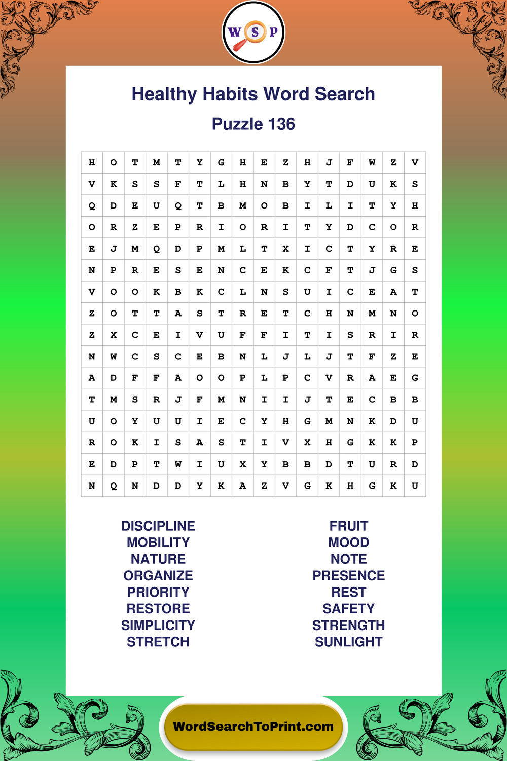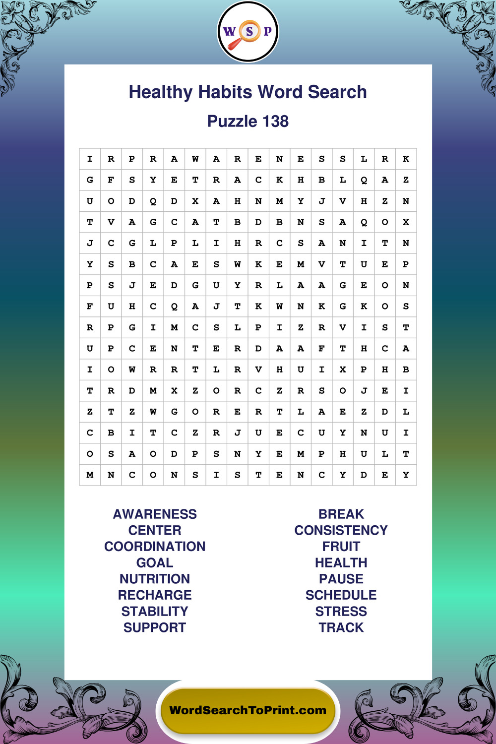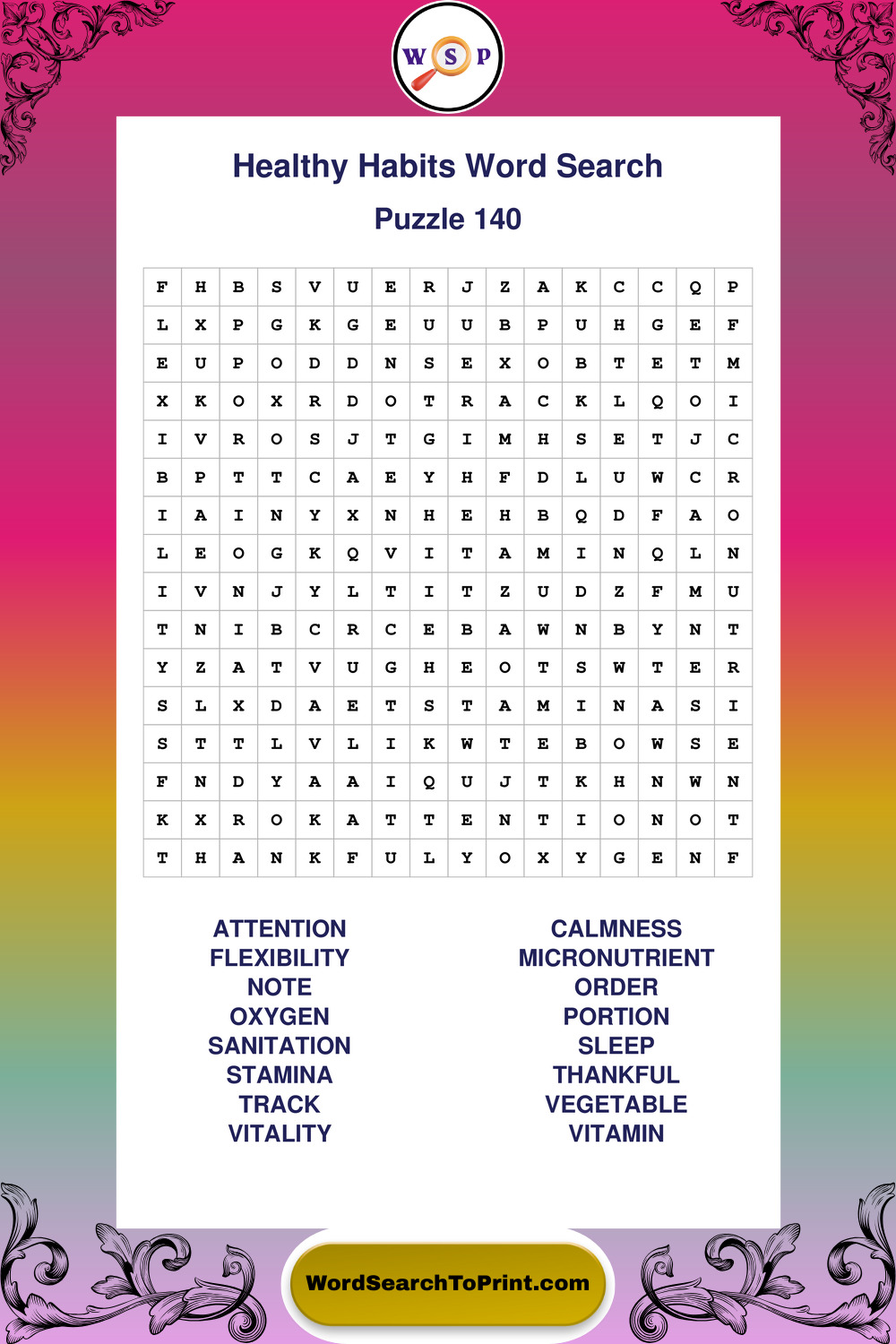 Explore a growing collection of large print Healthy Habits wordsearches created for comfortable, stress-free solving at your own pace.