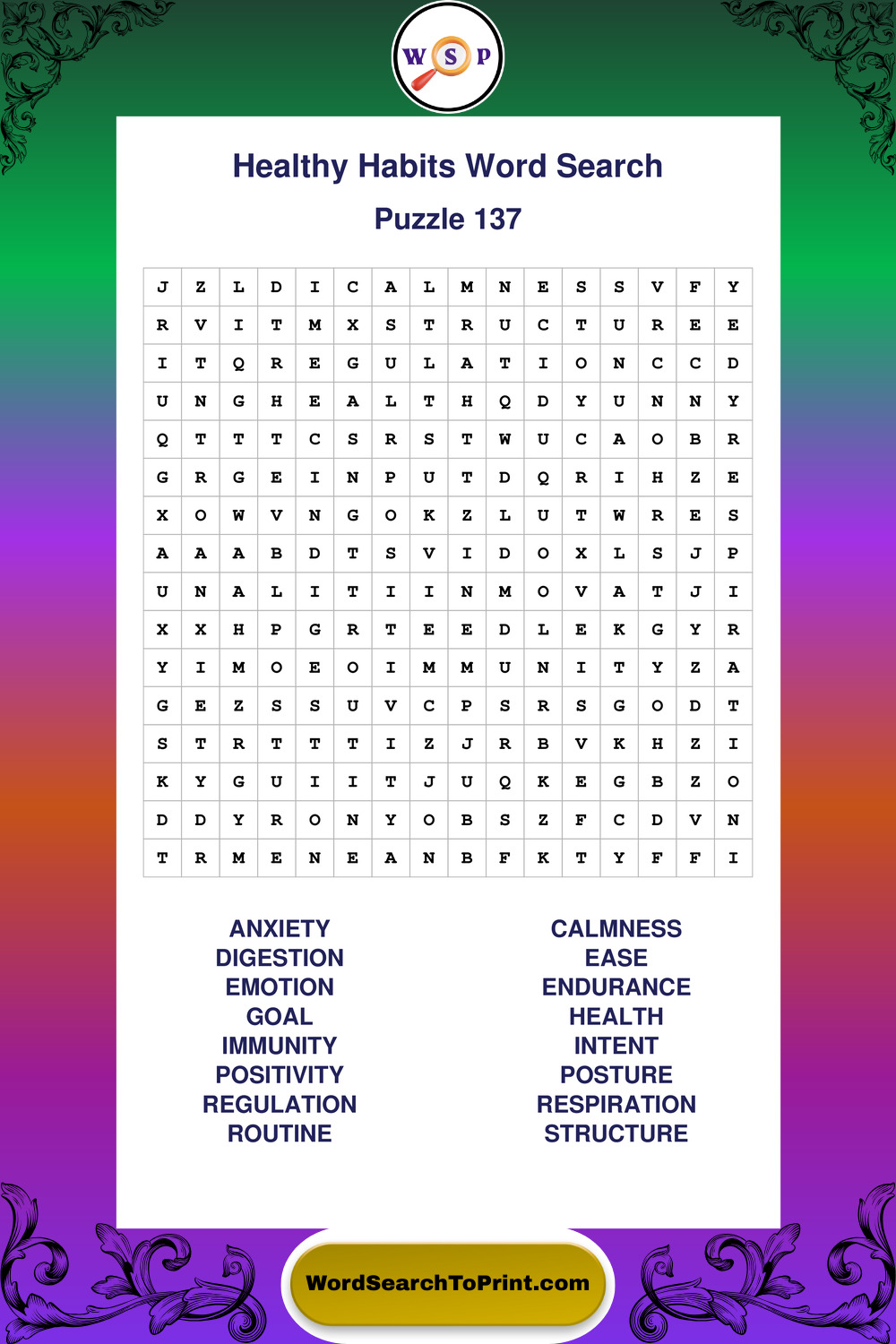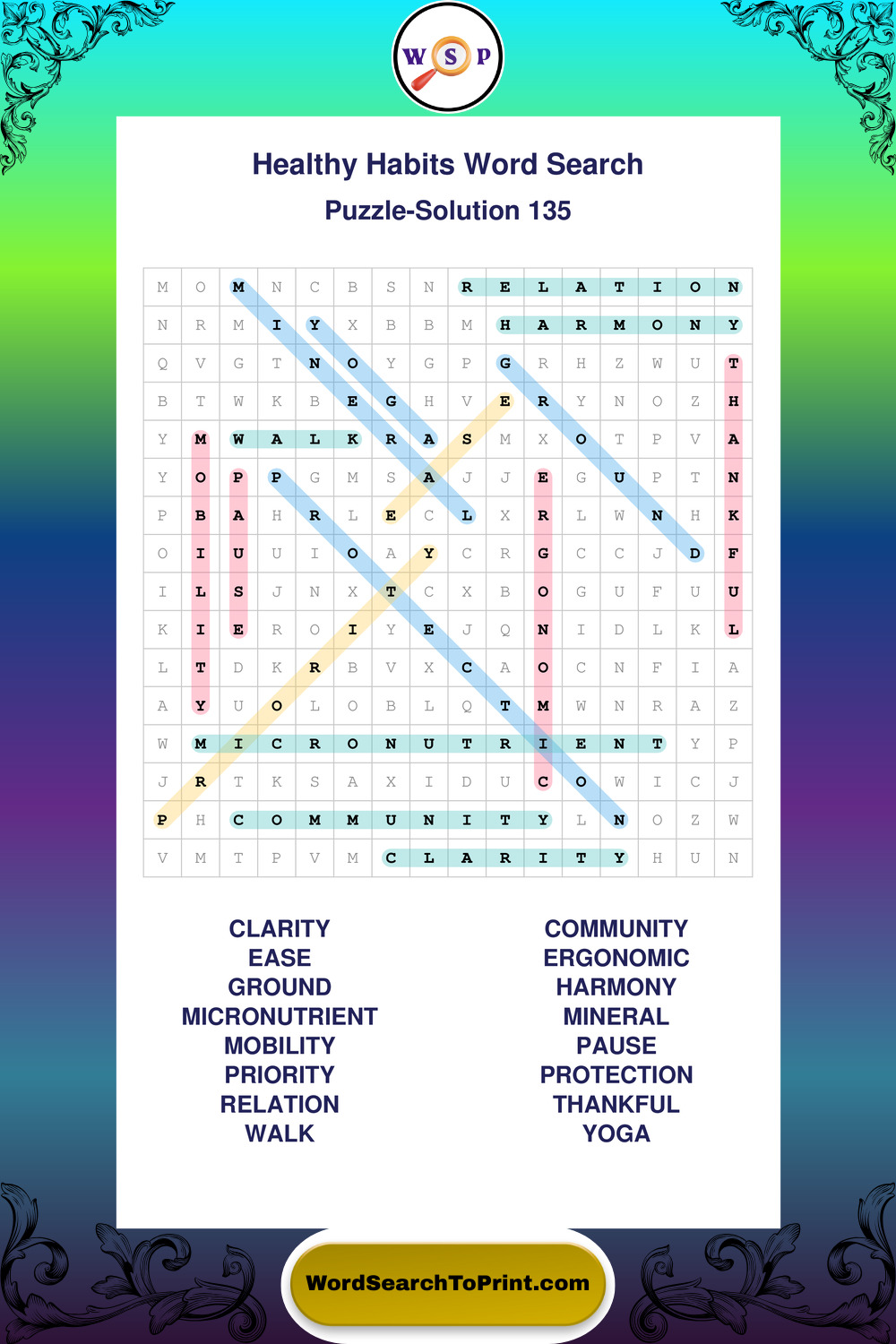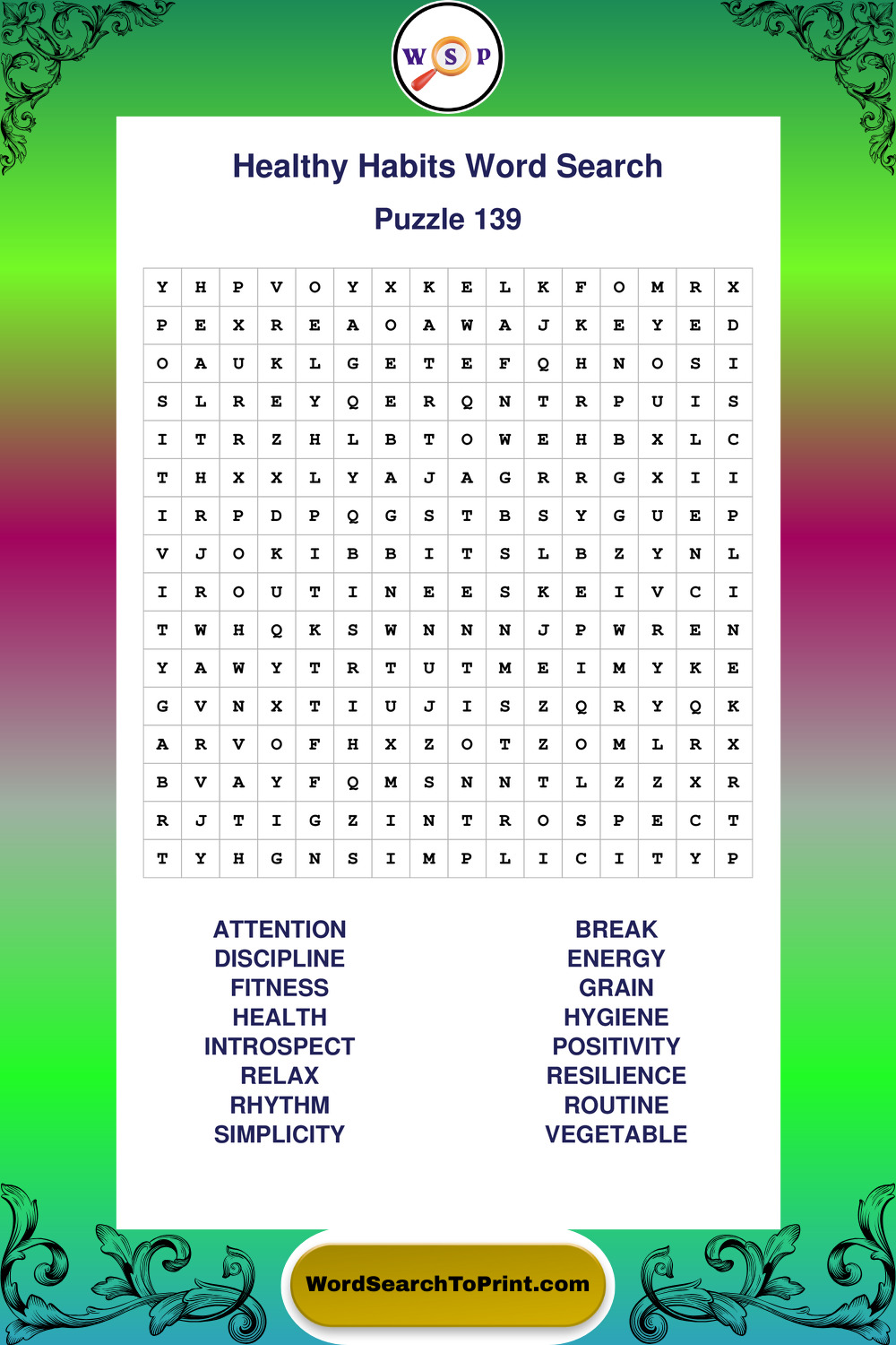 Explore a growing collection of large print Healthy Habits wordsearches created for comfortable, stress-free solving at your own pace.