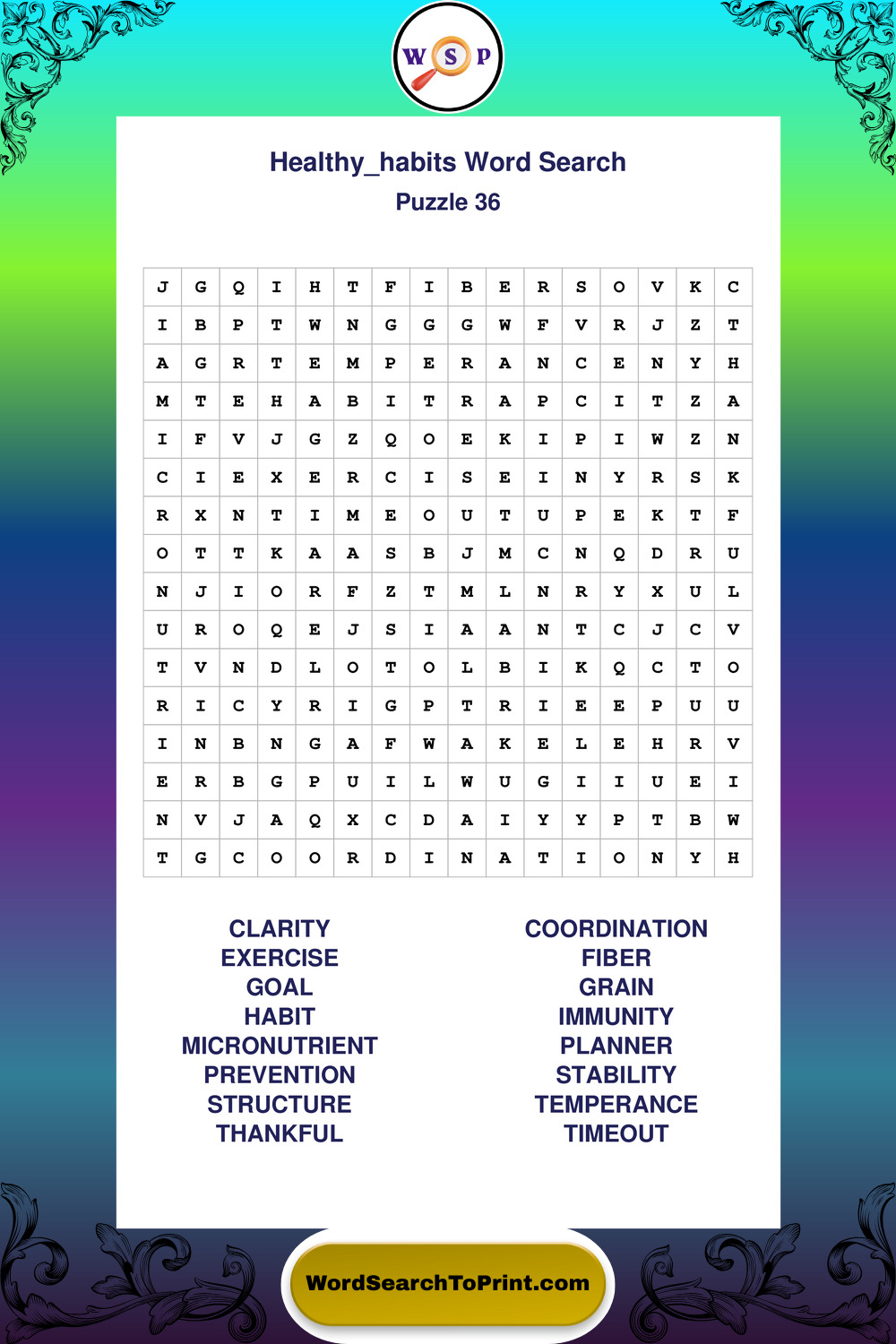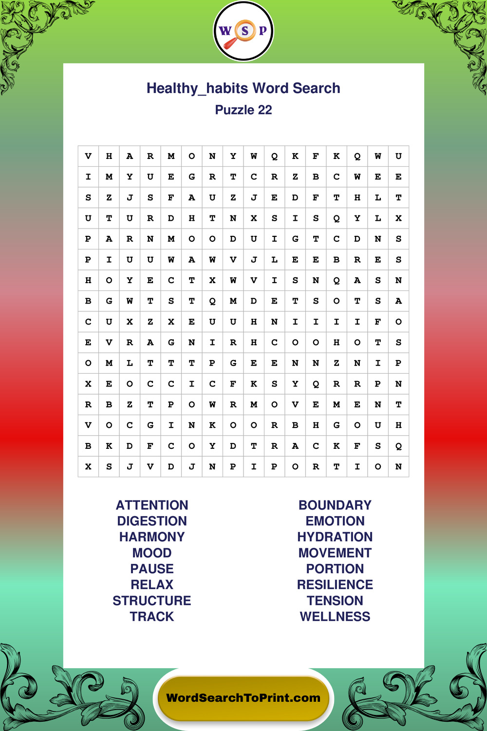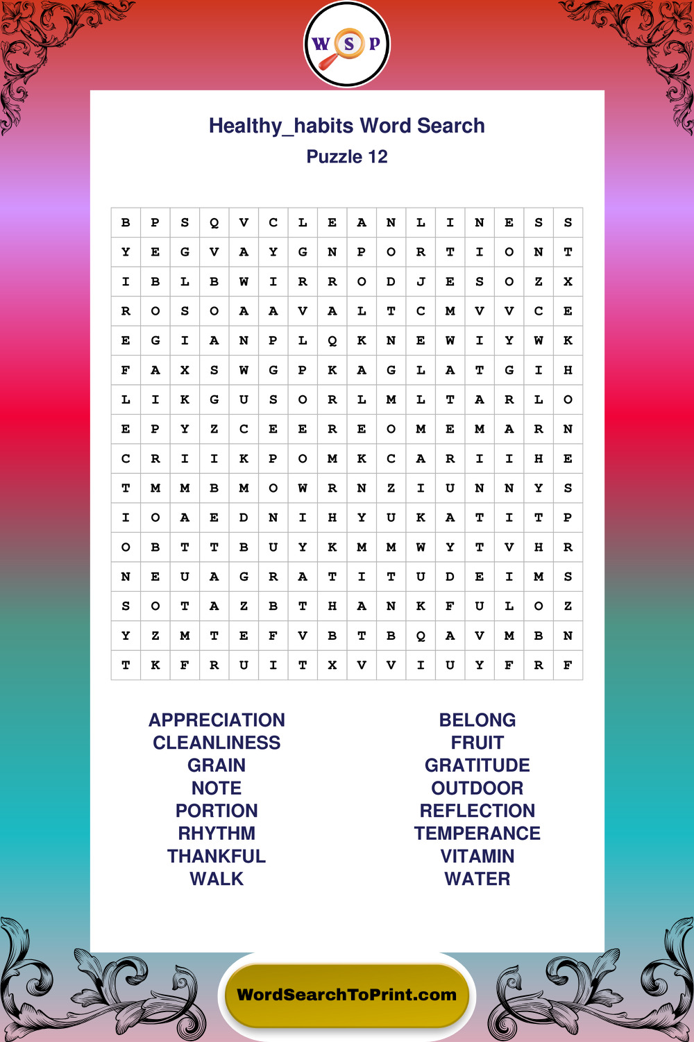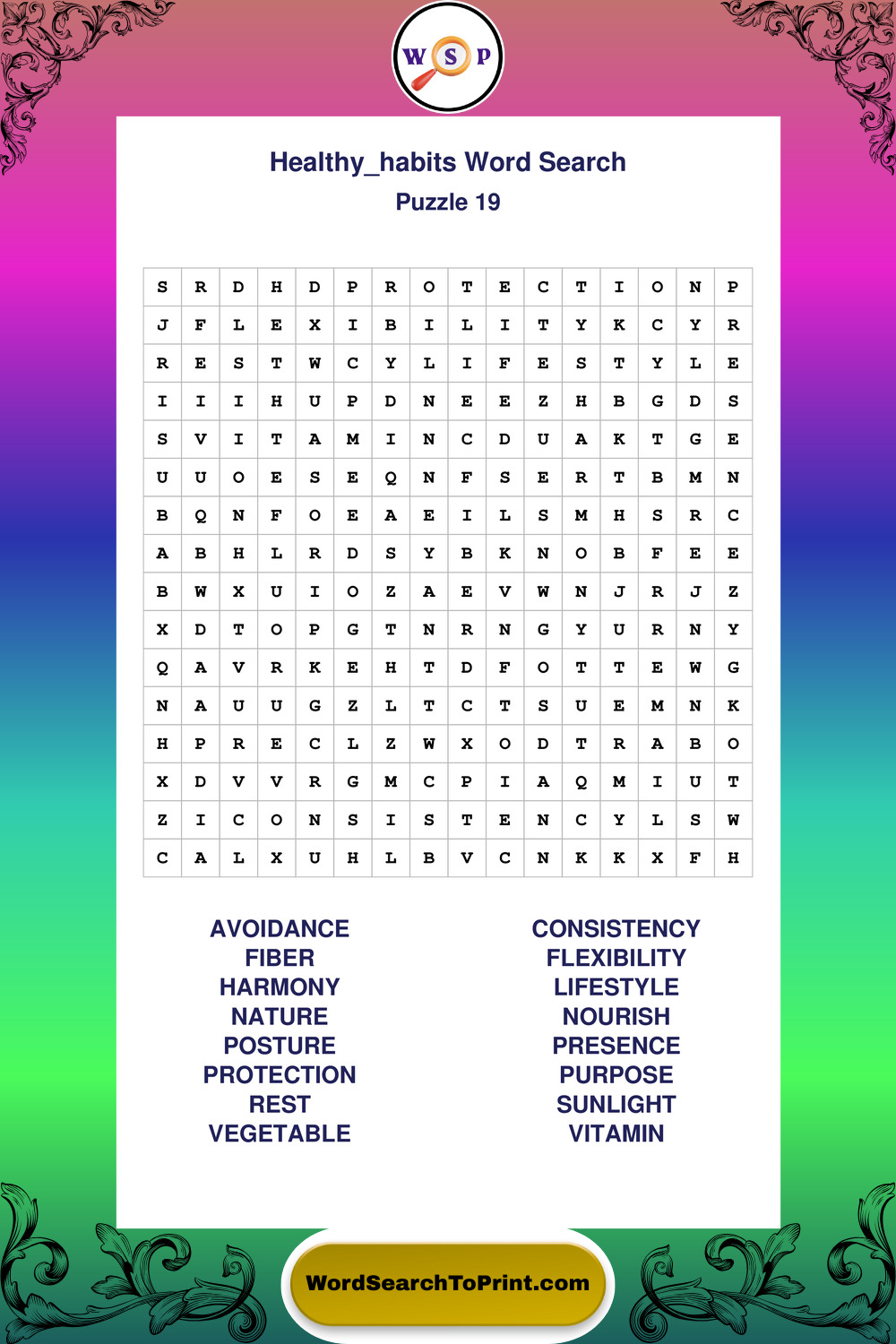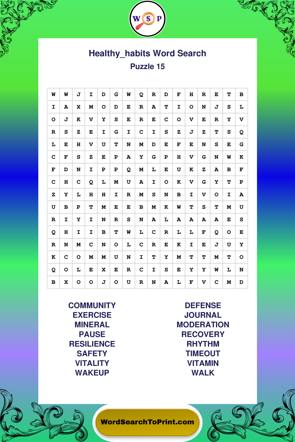 Printable Healthy Habits Wordsearch Puzzles