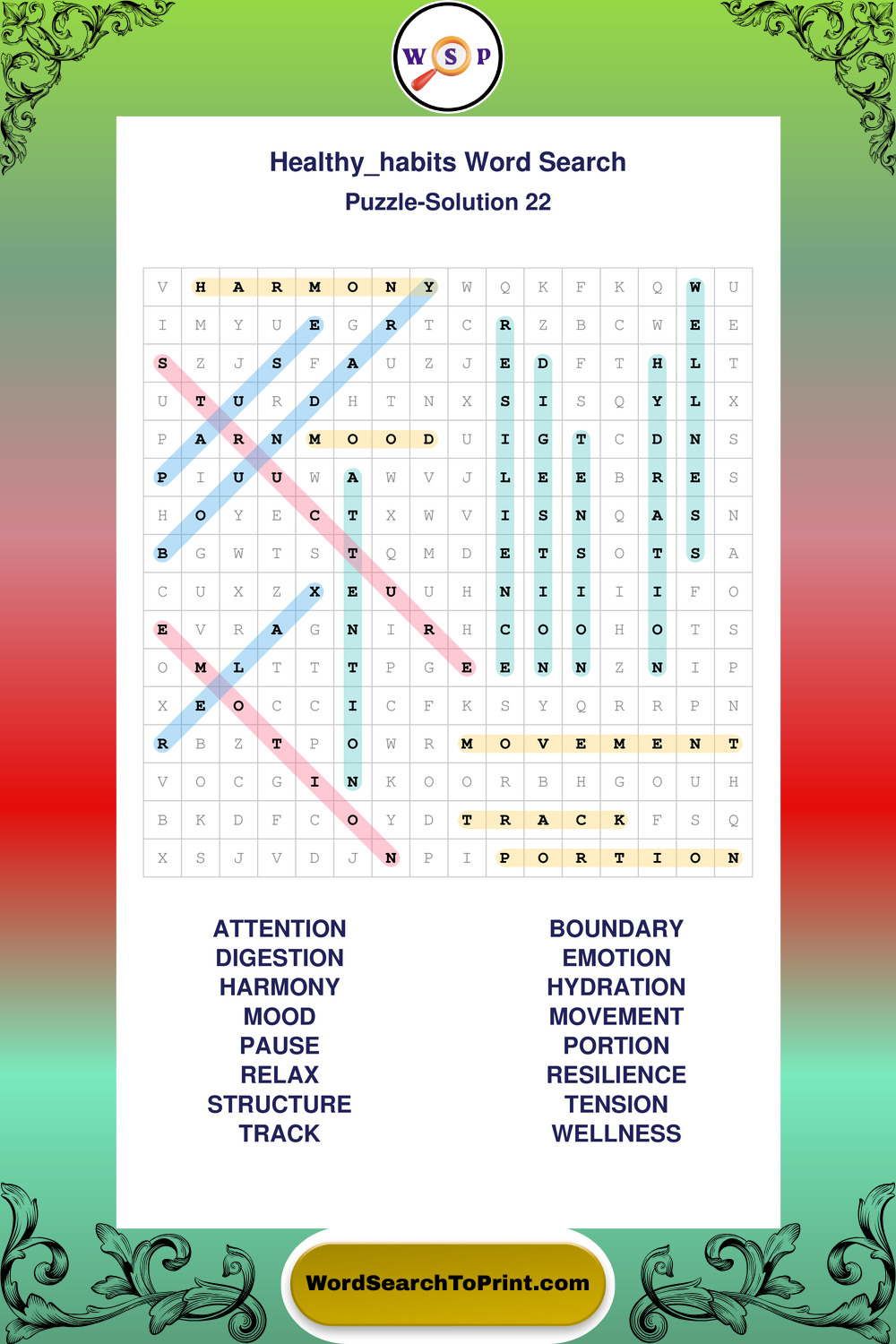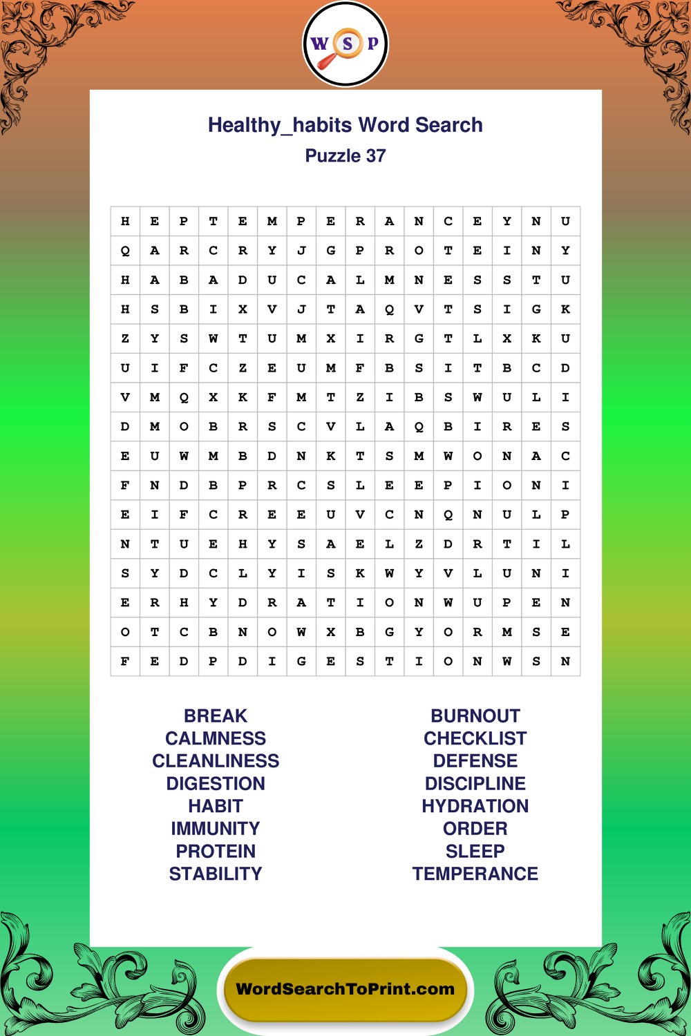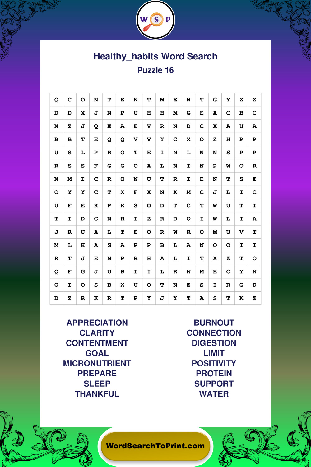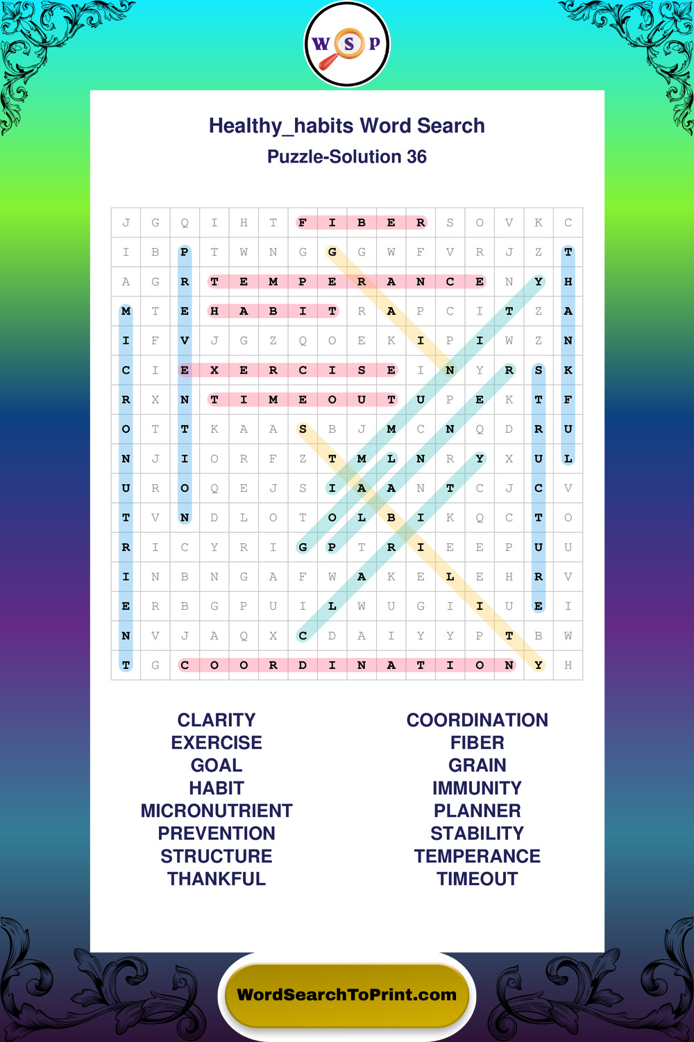 Printable Healthy Habits Wordsearch Puzzles