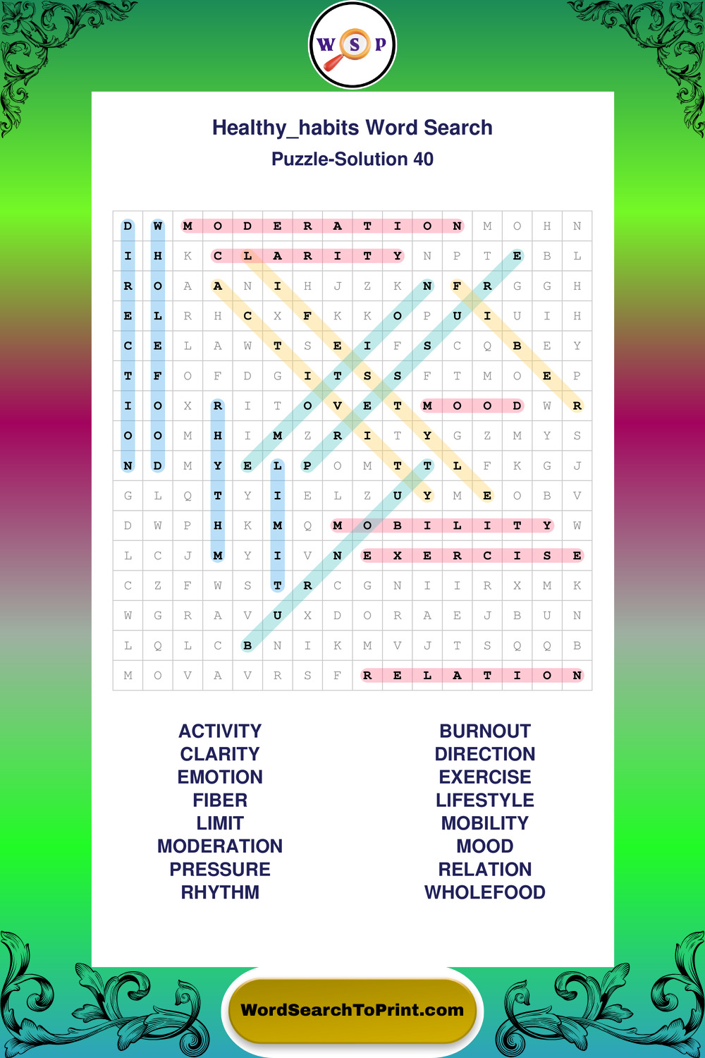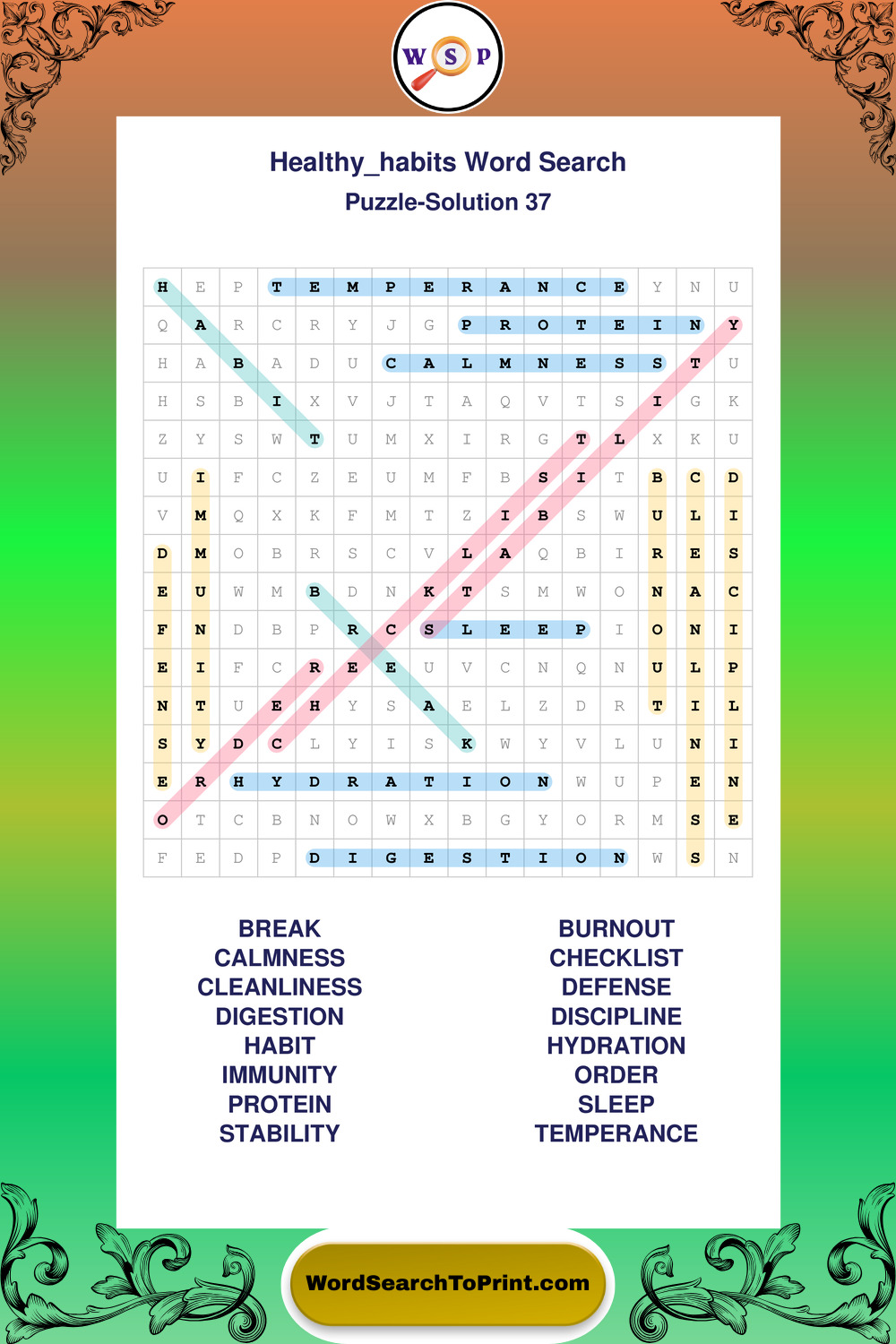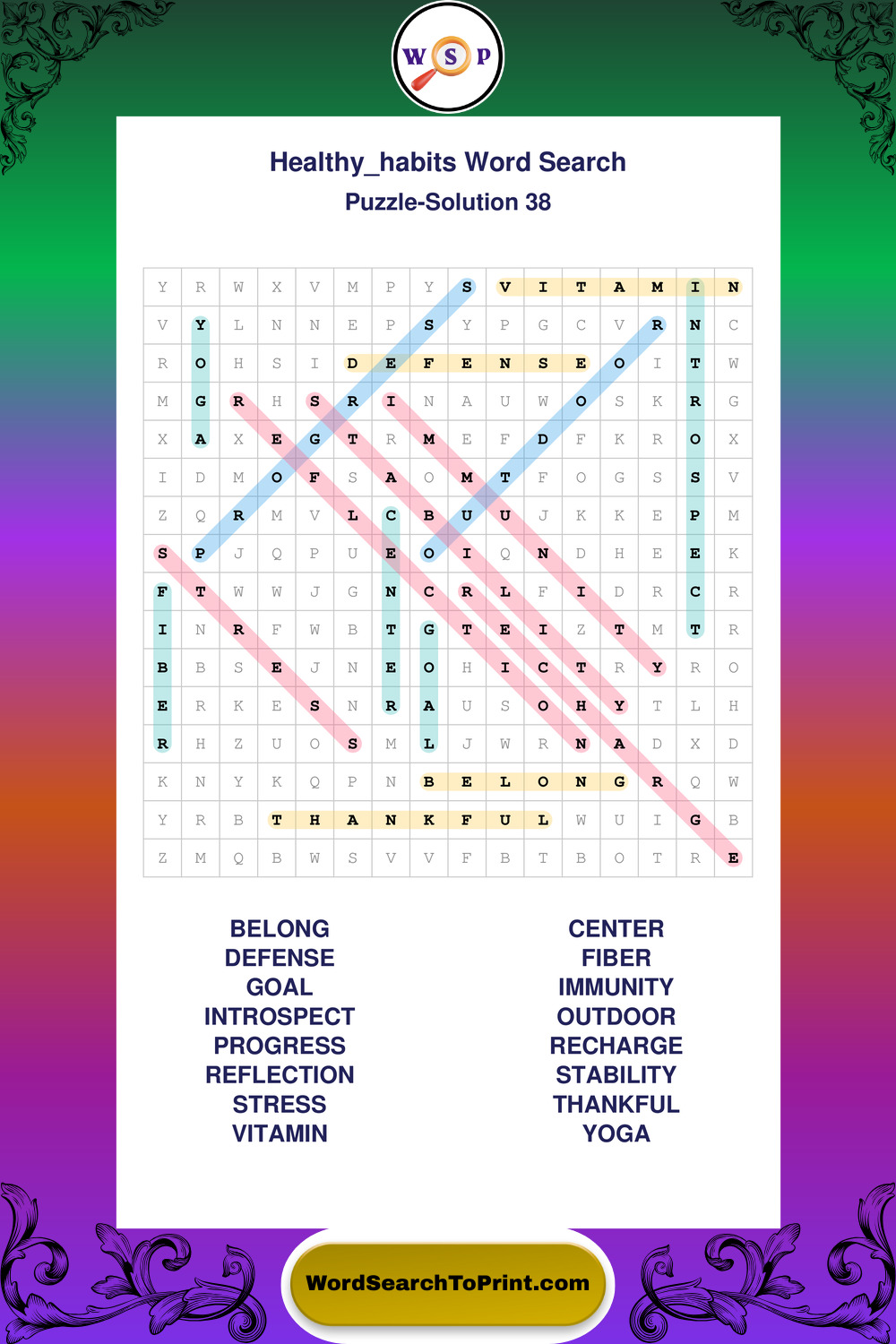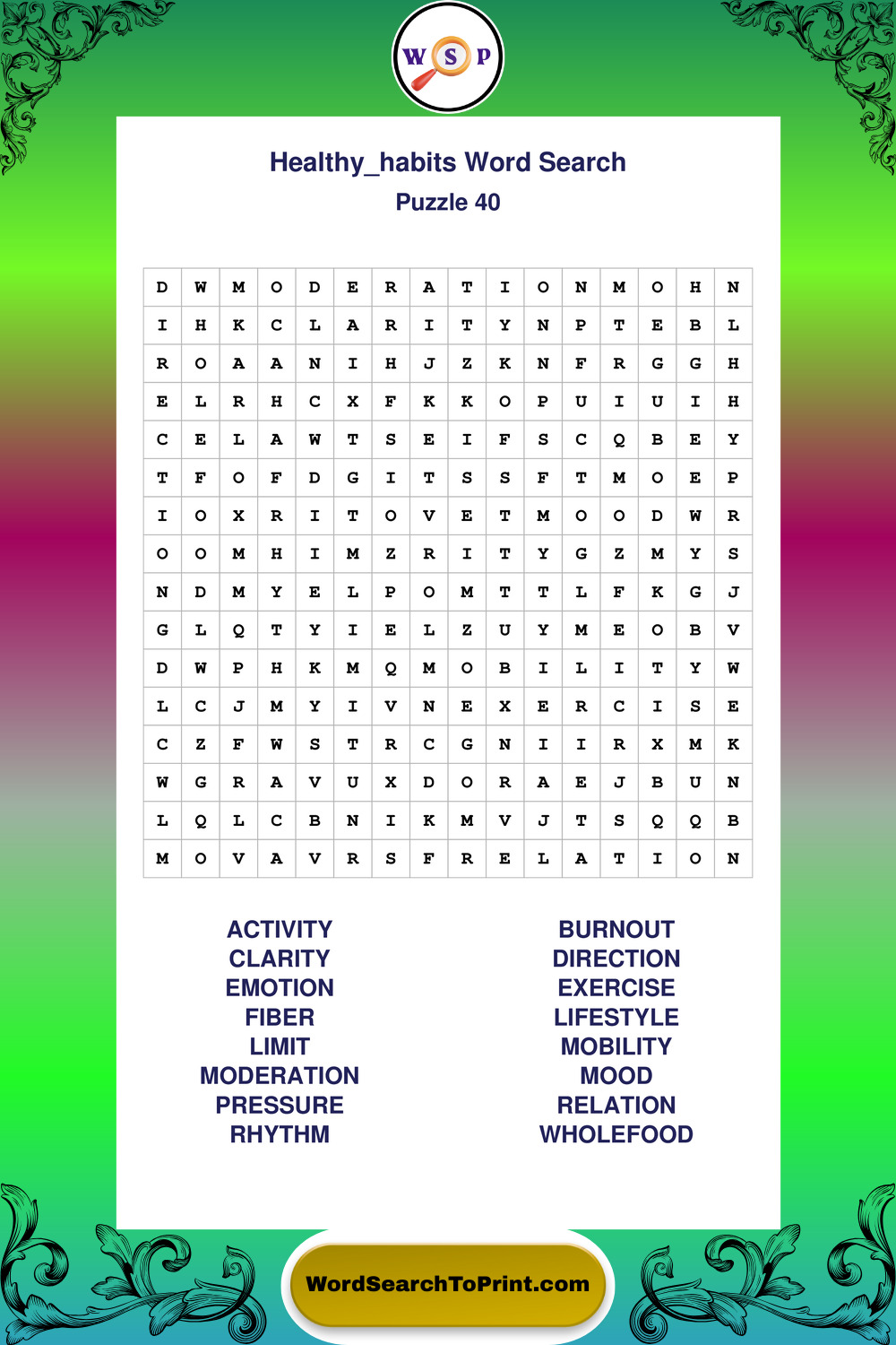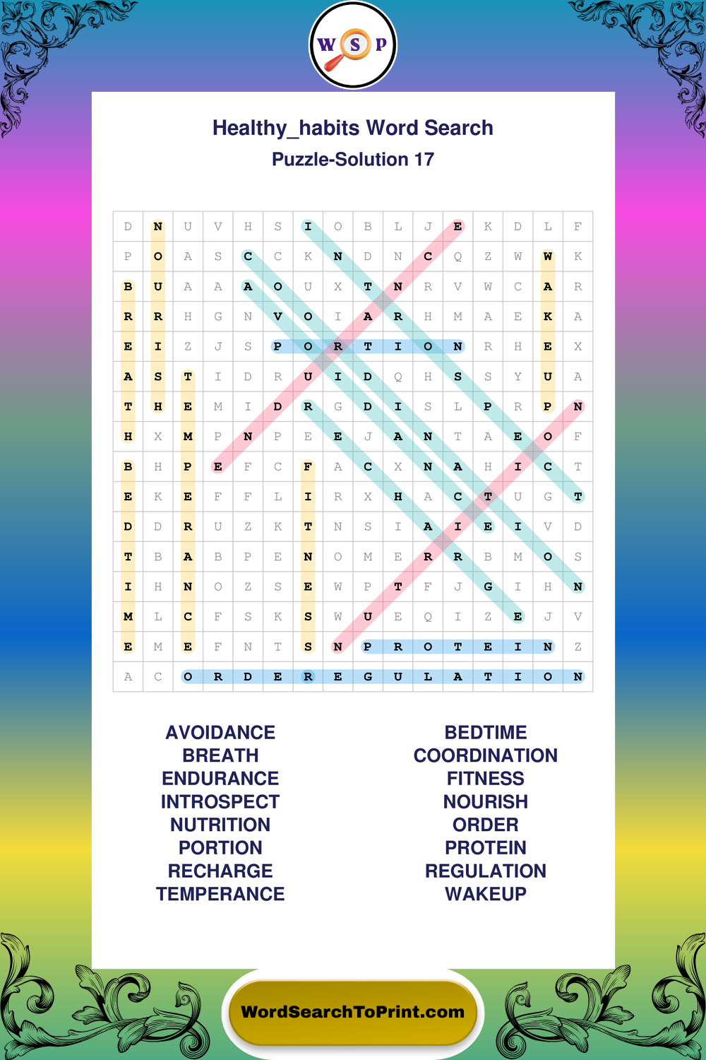 Printable Healthy Habits Wordsearch Puzzles