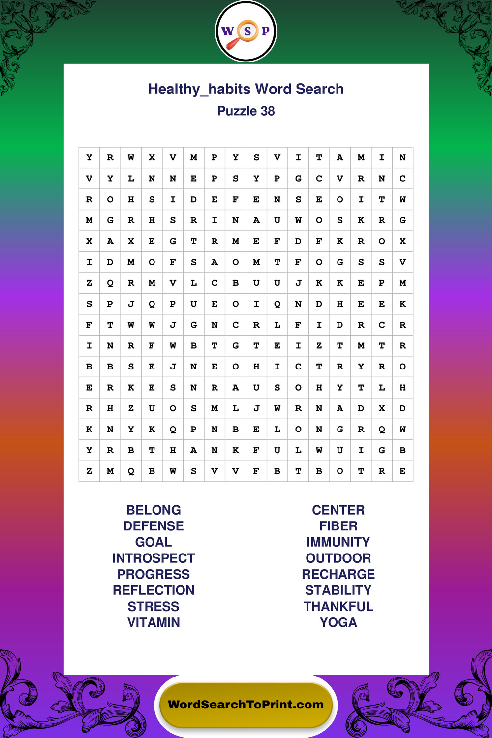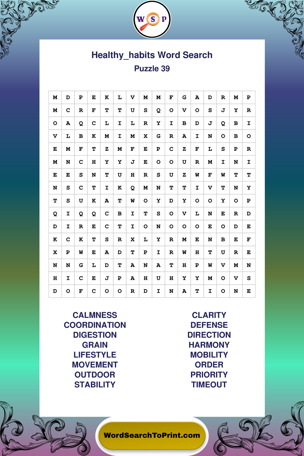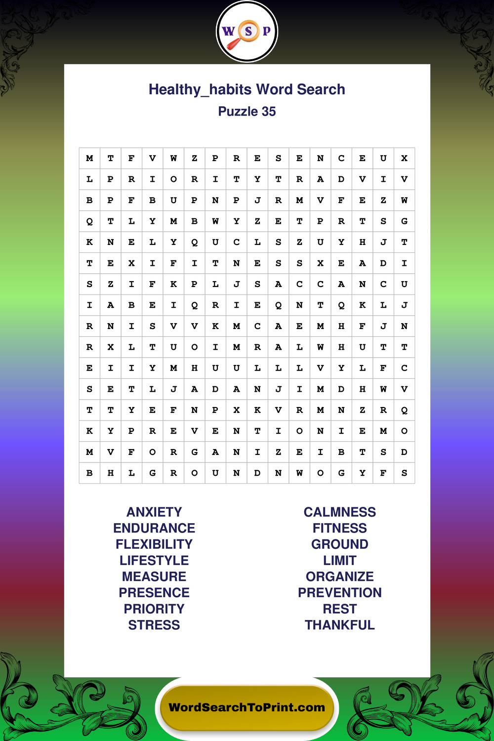 Explore a growing collection of large print Healthy Habits wordsearches created for comfortable, stress-free solving at your own pace.
