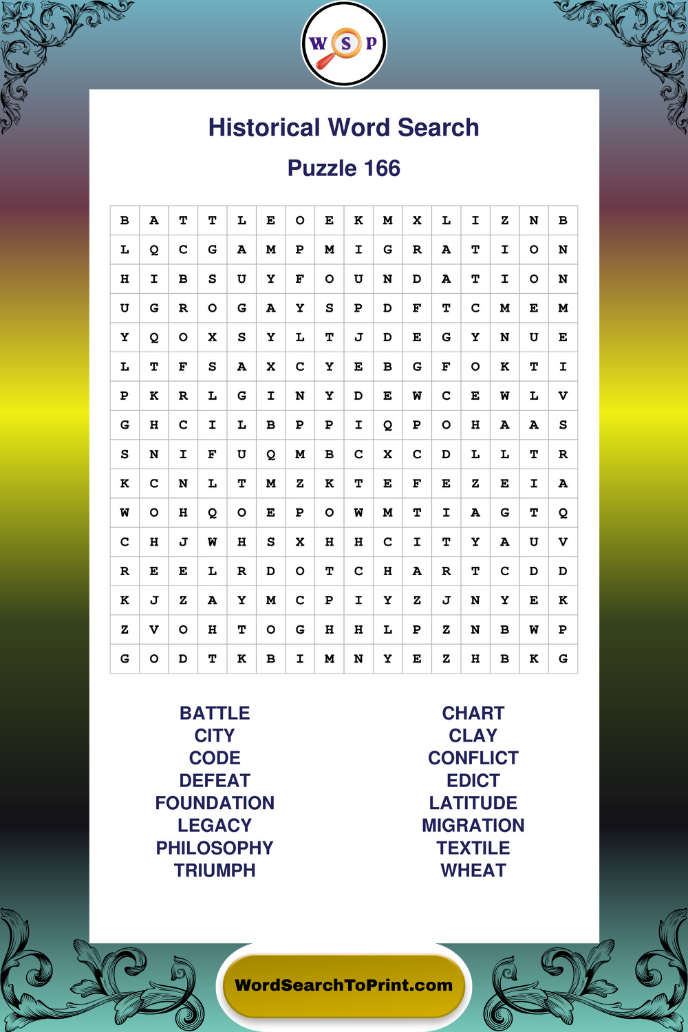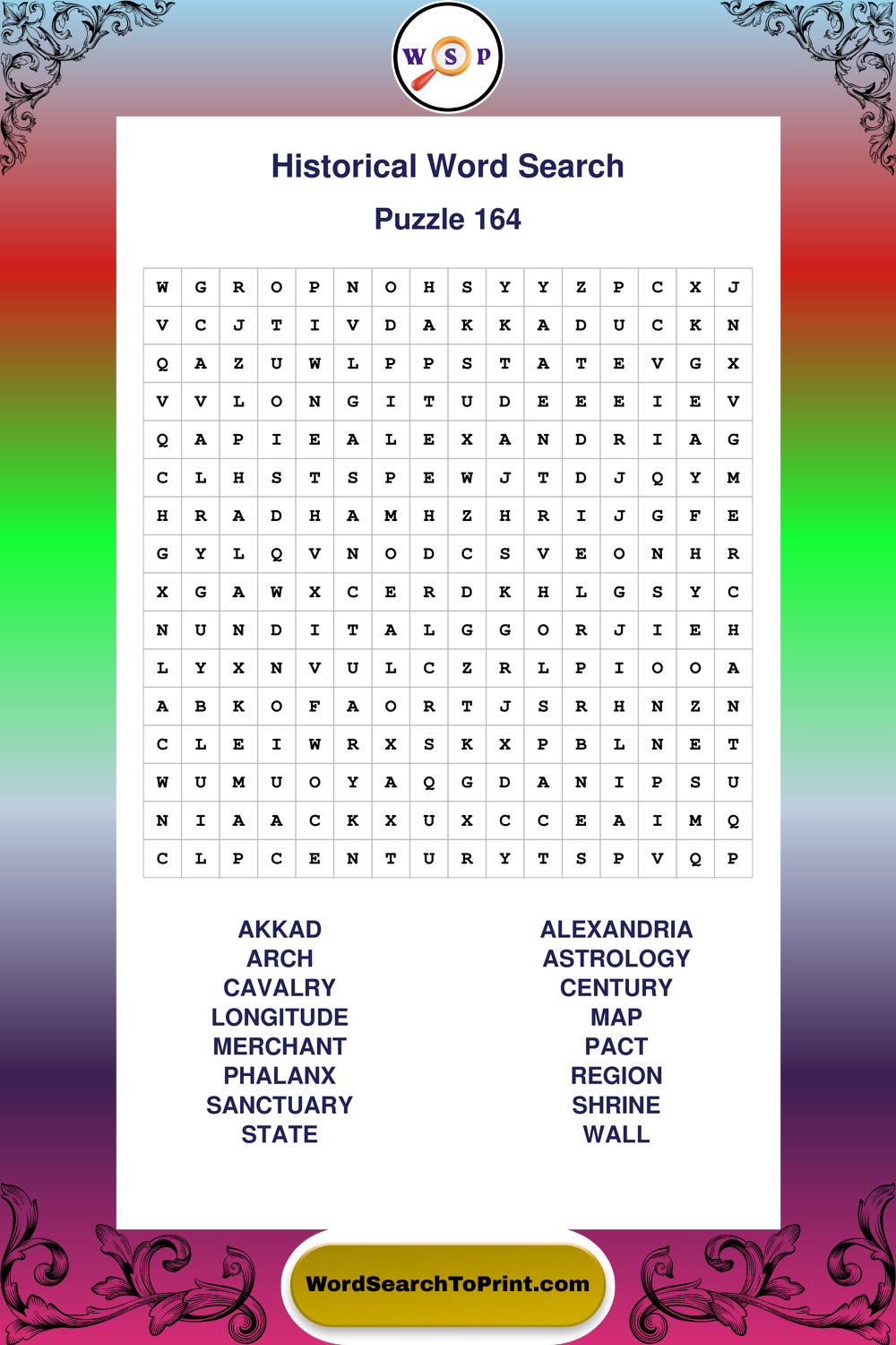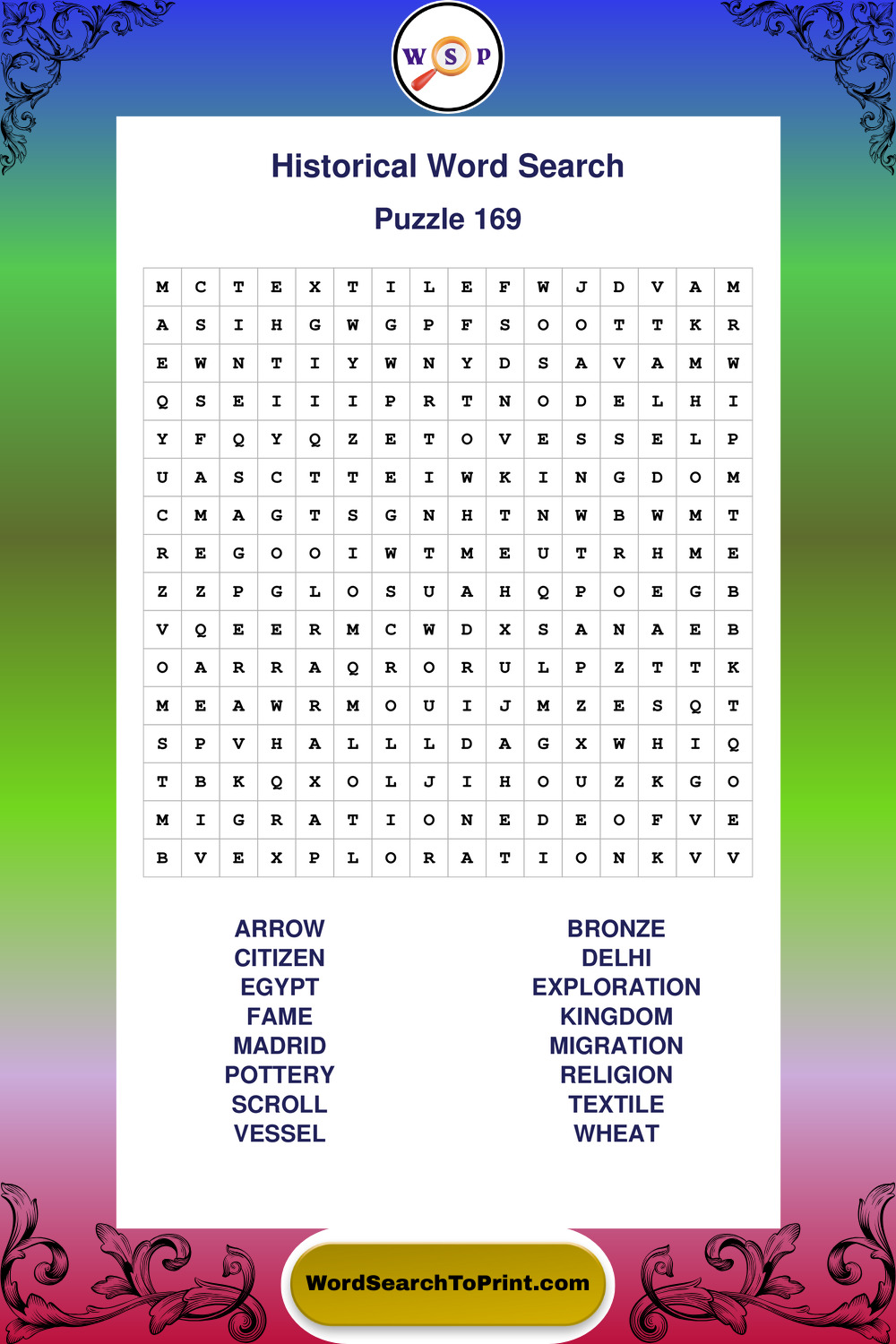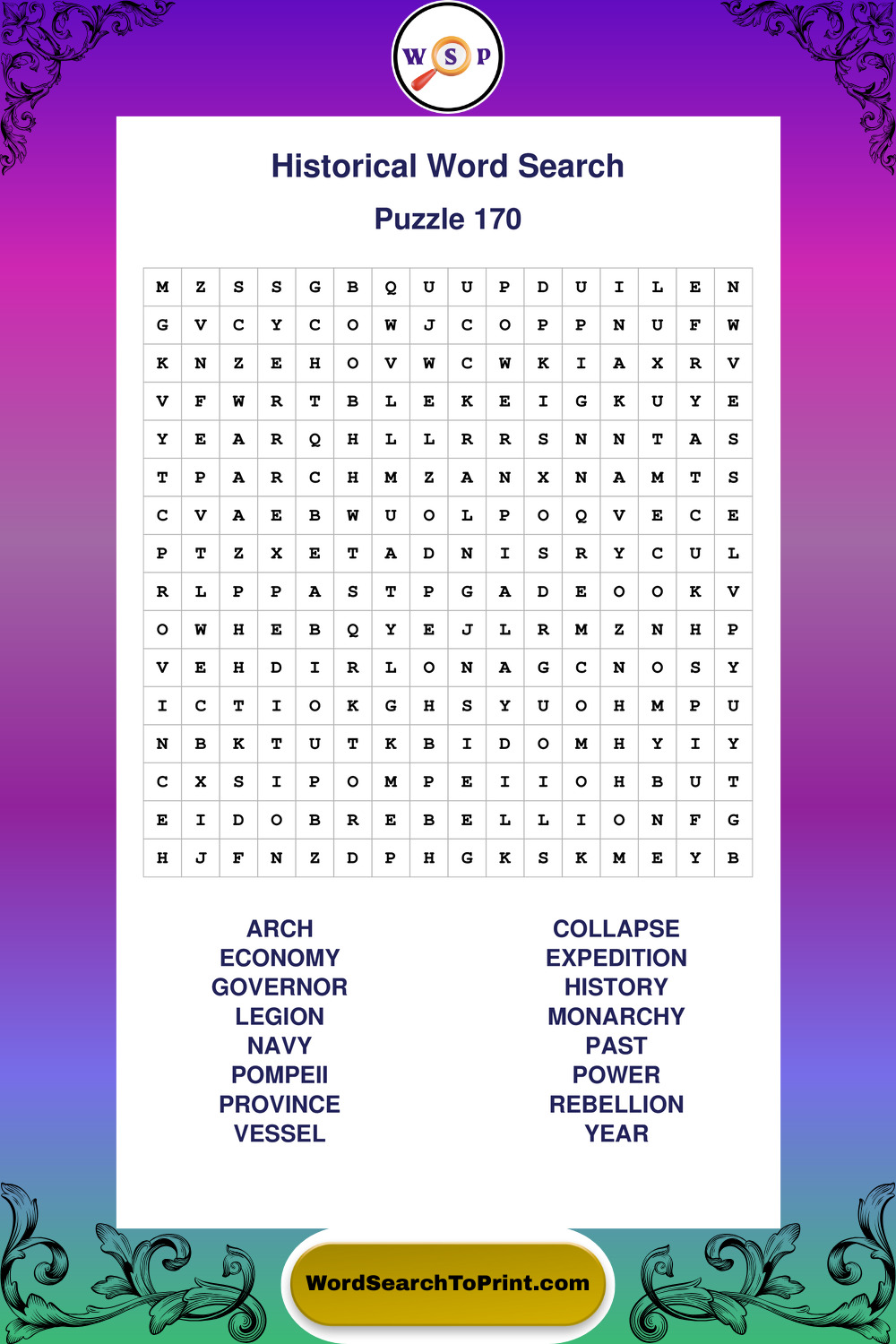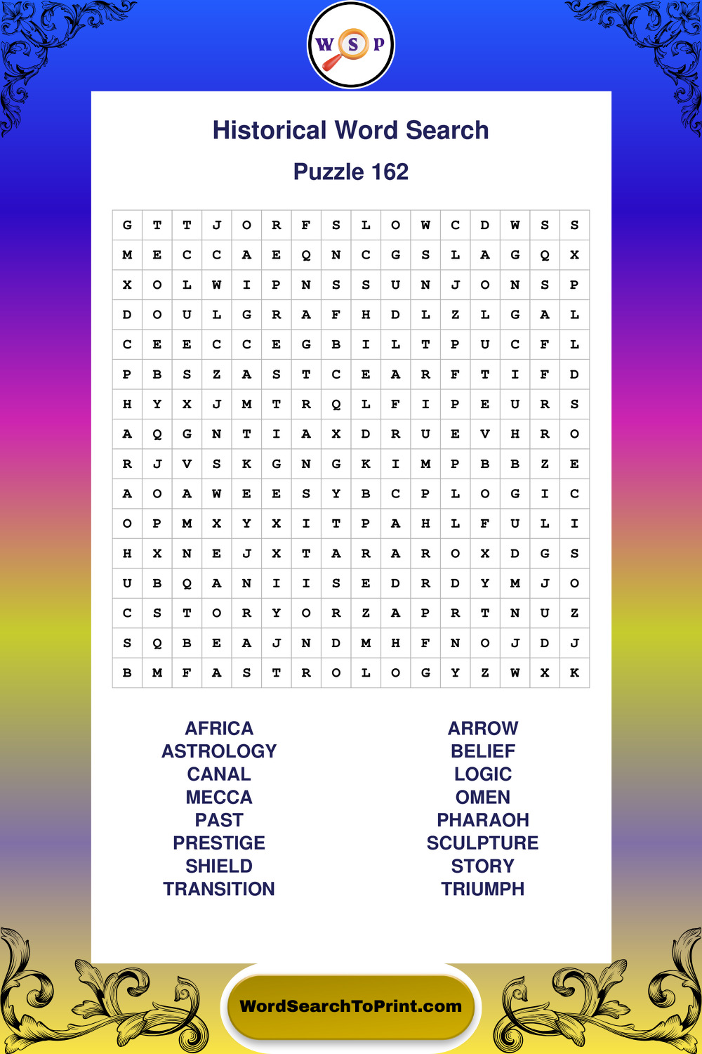 Browse our free large print Historical wordsearches below. All puzzles are printable and include solutions.